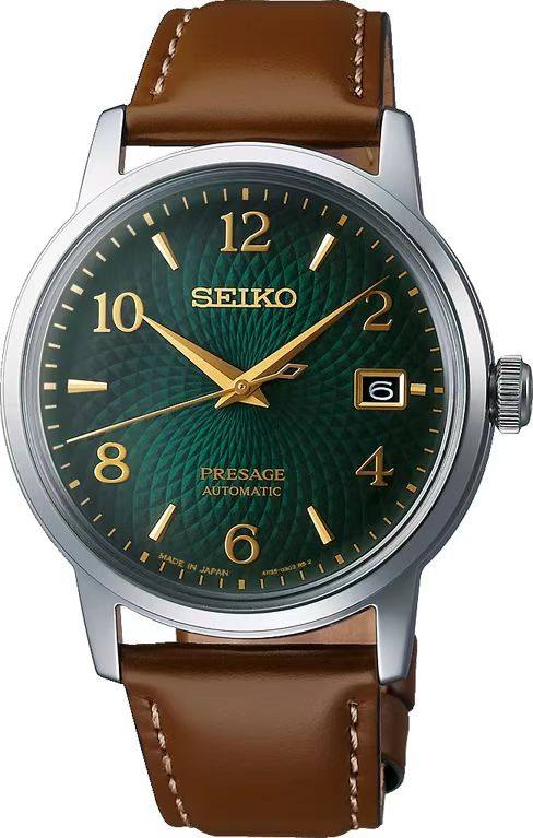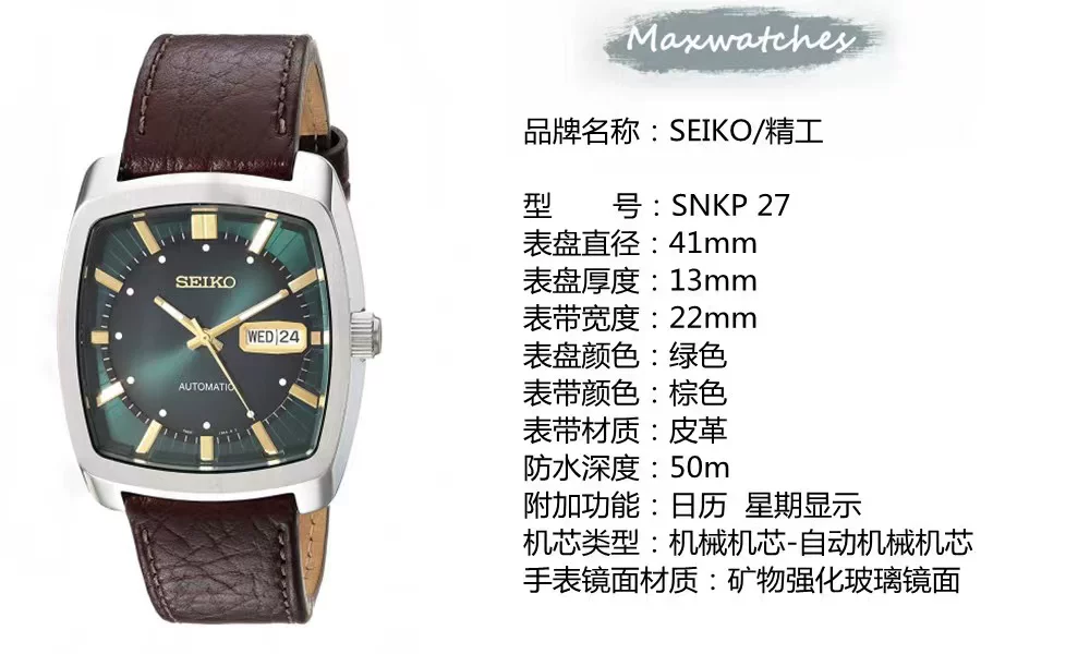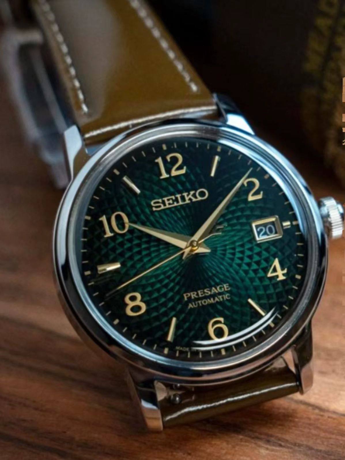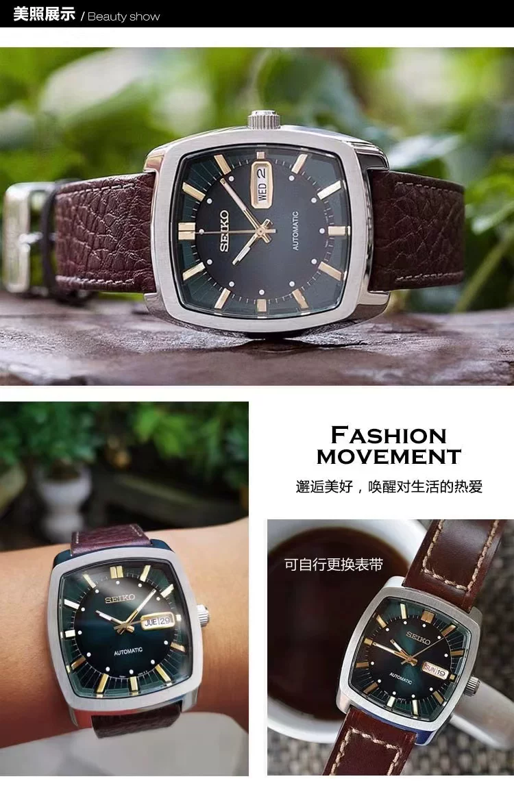 Seiko Barrel-Shaped Stainless Steel Strap Cocktail Series Vintage Green Dial Skeleton Automatic Mechanical Waterproof Men's Watch Snkp27