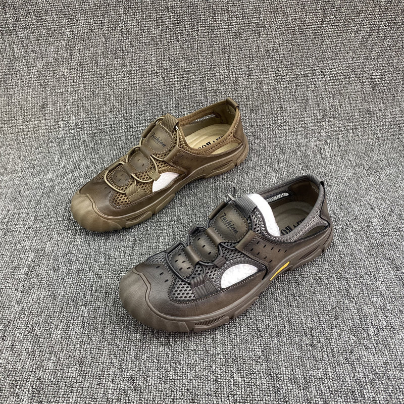 Factory Store Summer Brand New Genuine Leather Men's Shoes Flat Cowhide Hollow Comfortable and Trendy Men's Sandals