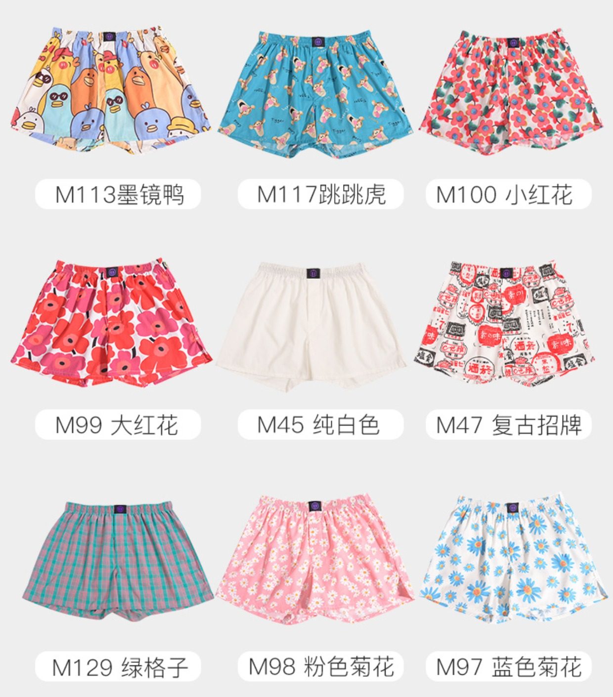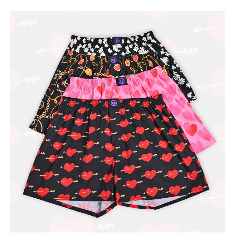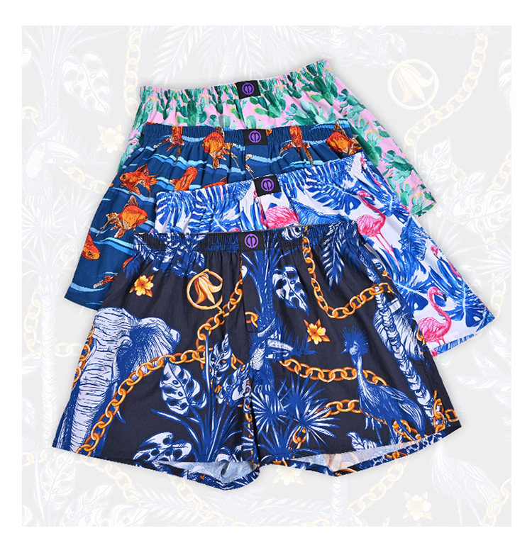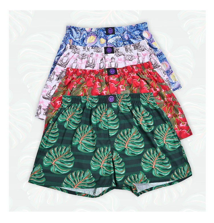 Multi-Color Optional Printed One-Piece Boxer Briefs Woven Non-Elastic Pure Cotton Boxer Shorts Men's Large Size Trendy