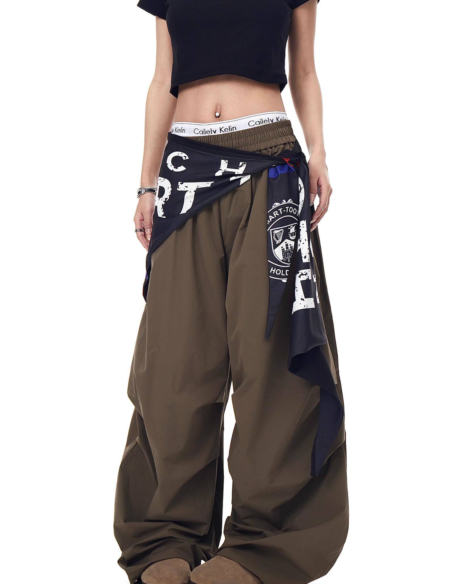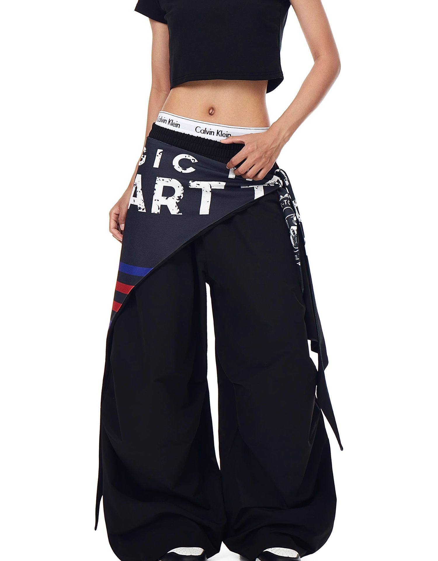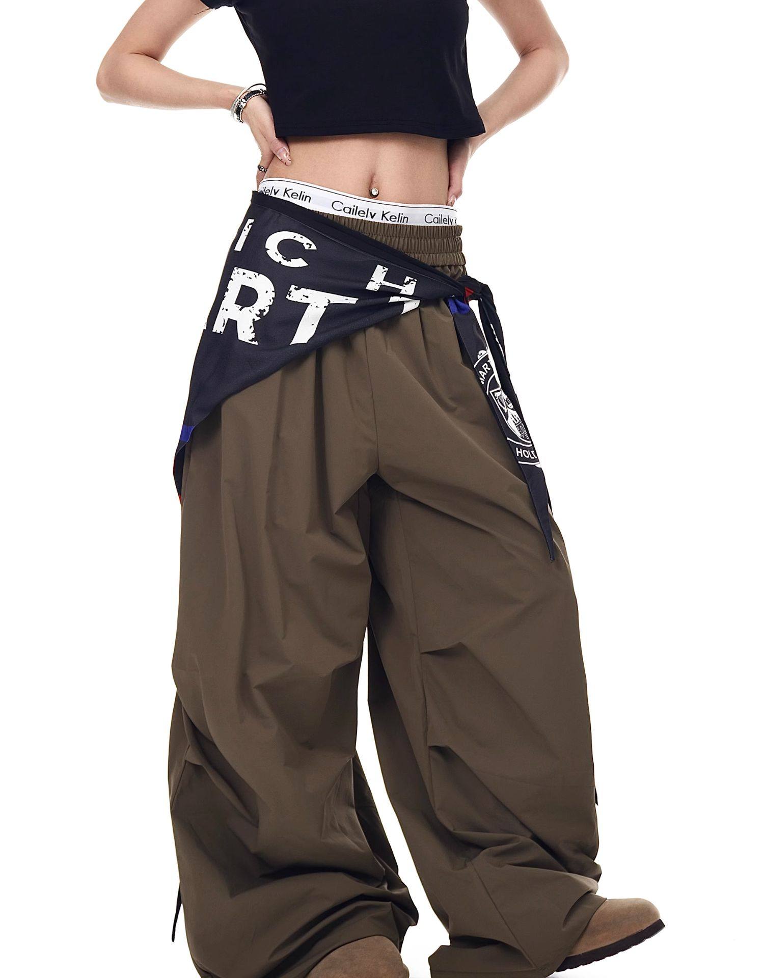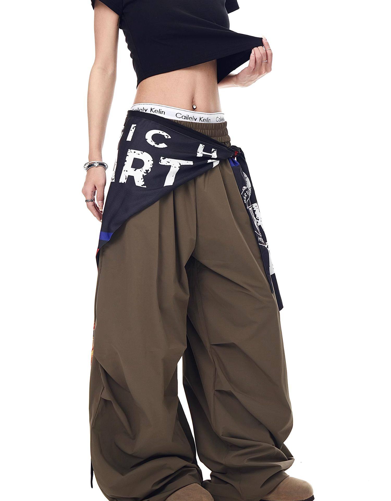 Blacklists American Retro Design Cargo Parachute Pants for Men and Women, Fleece-Lined, Pleated, Scimitar Wide-Leg Pants