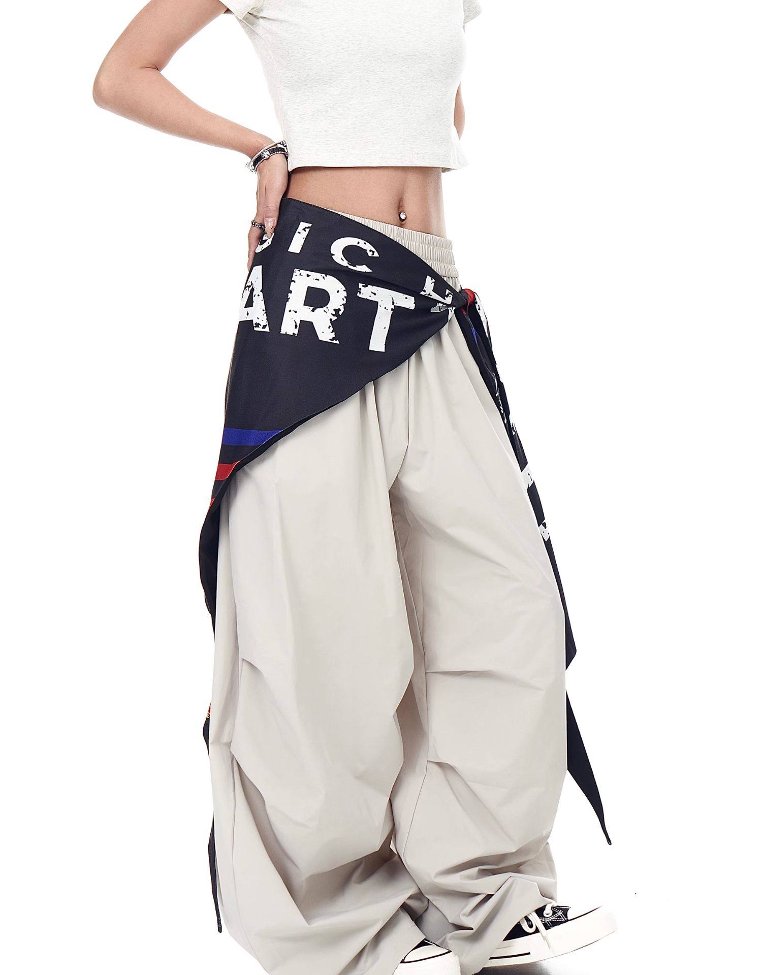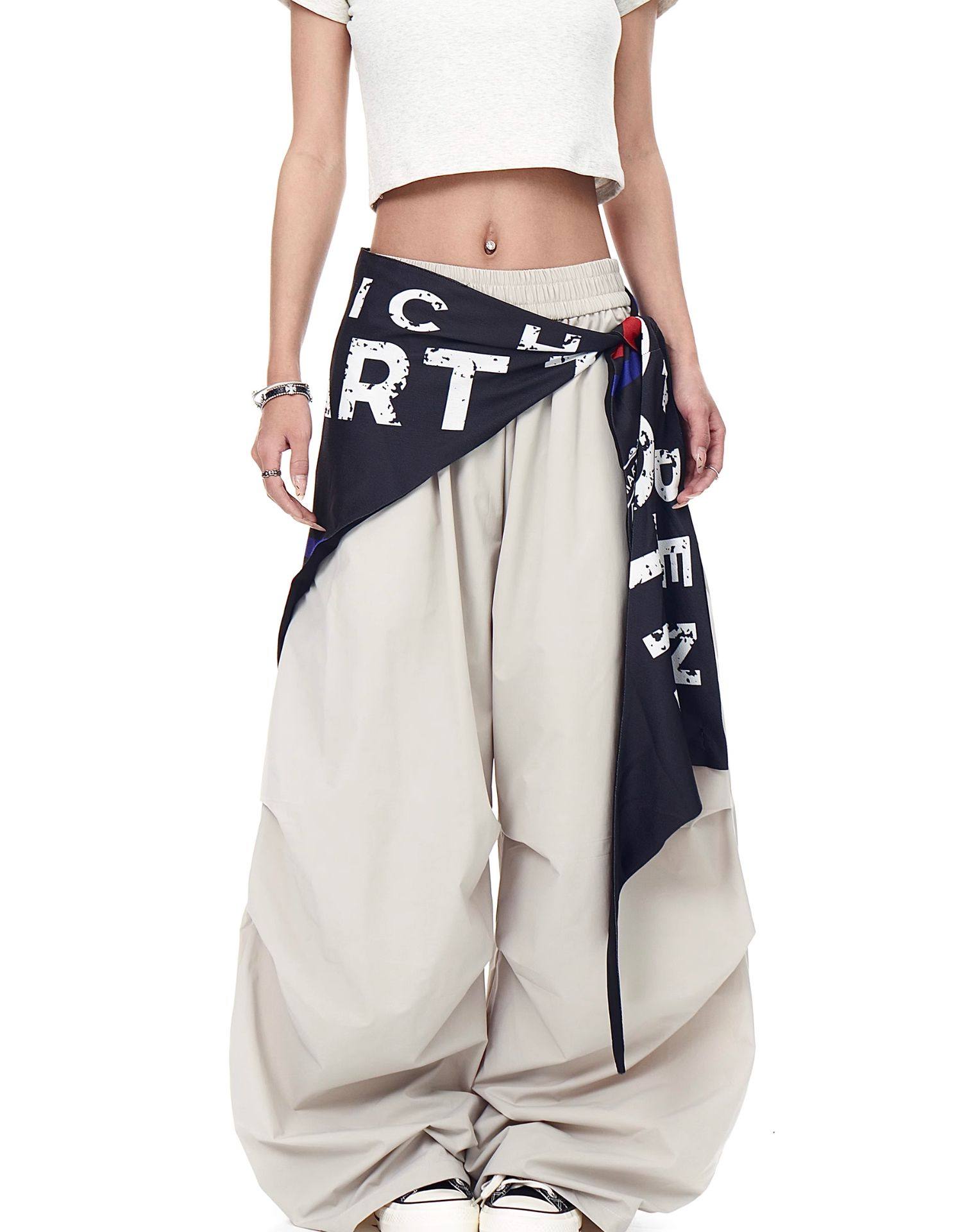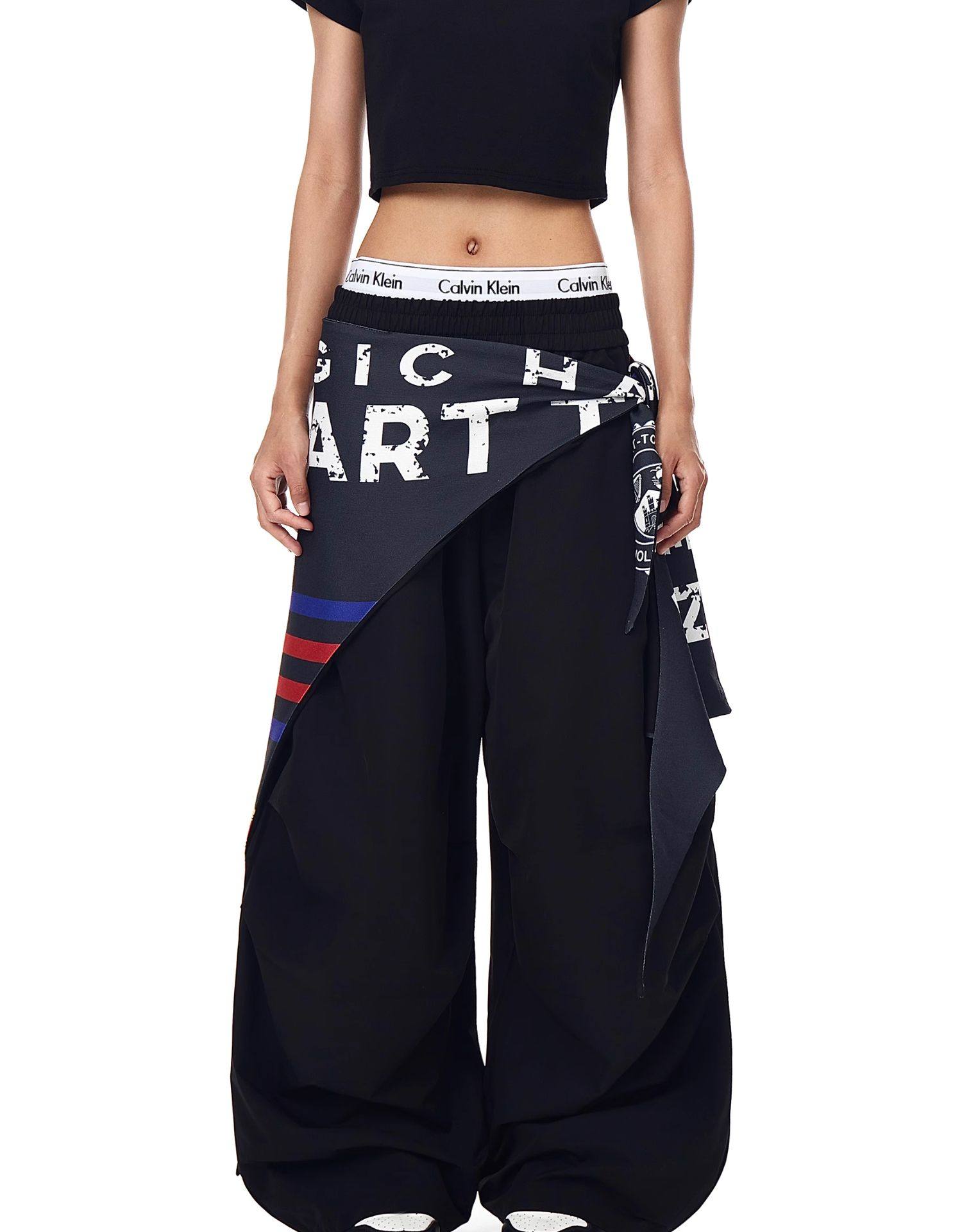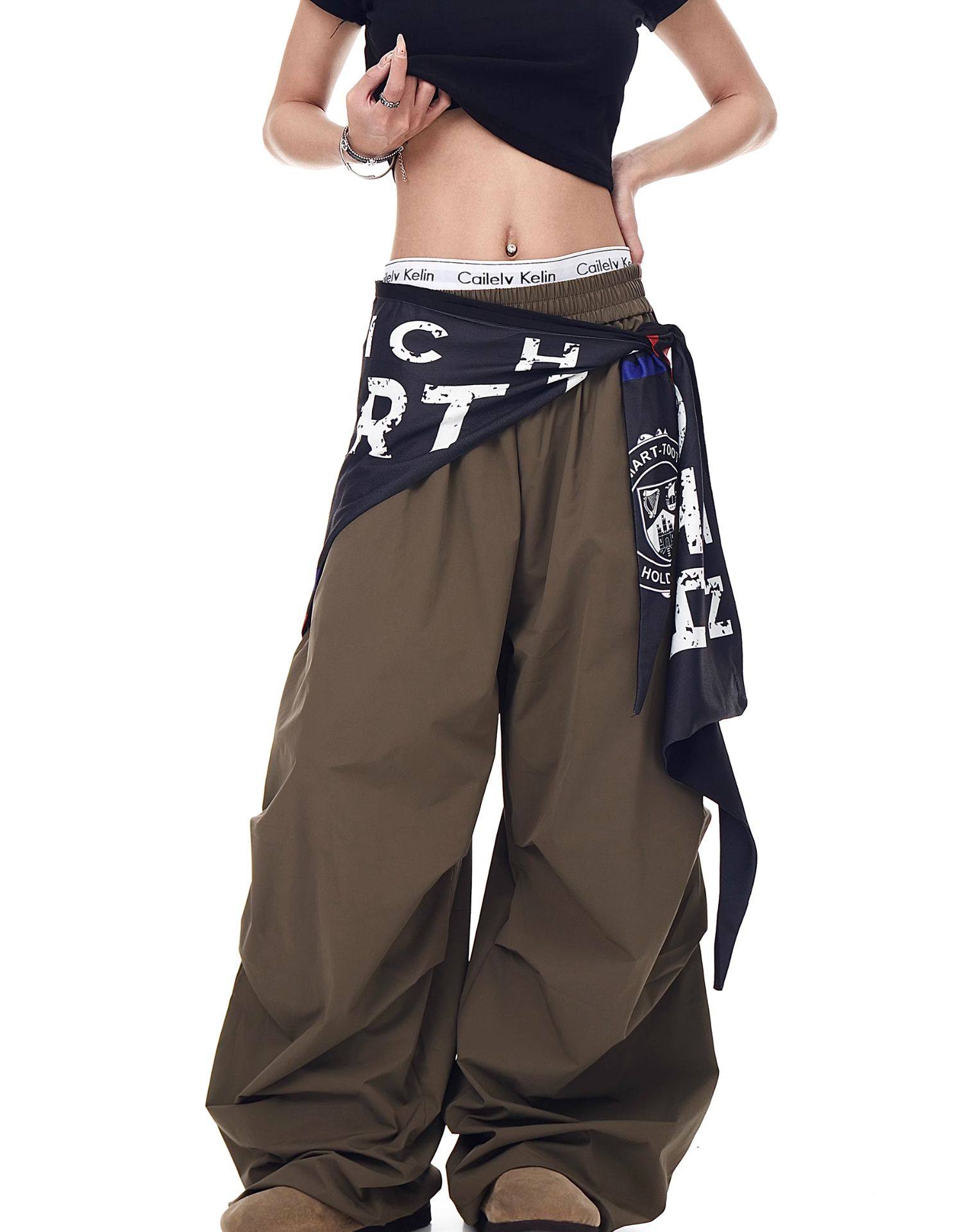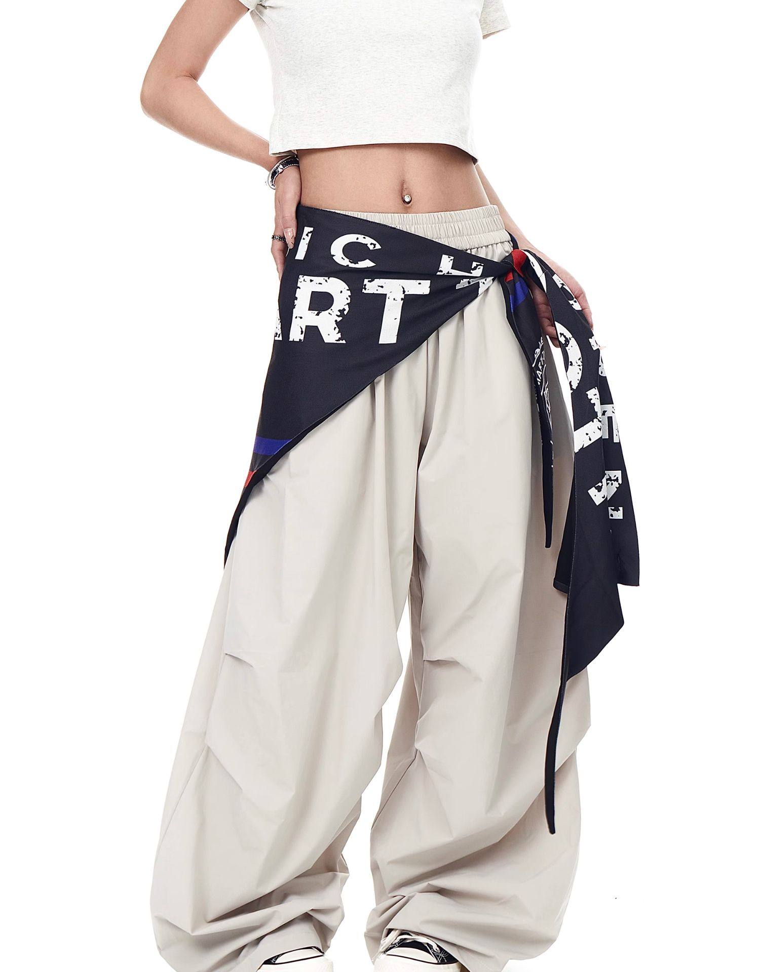 Blacklists American Retro Design Cargo Parachute Pants for Men and Women, Fleece-Lined, Pleated, Scimitar Wide-Leg Pants