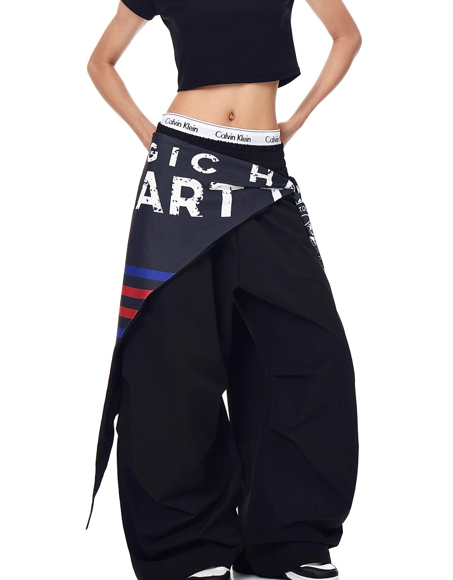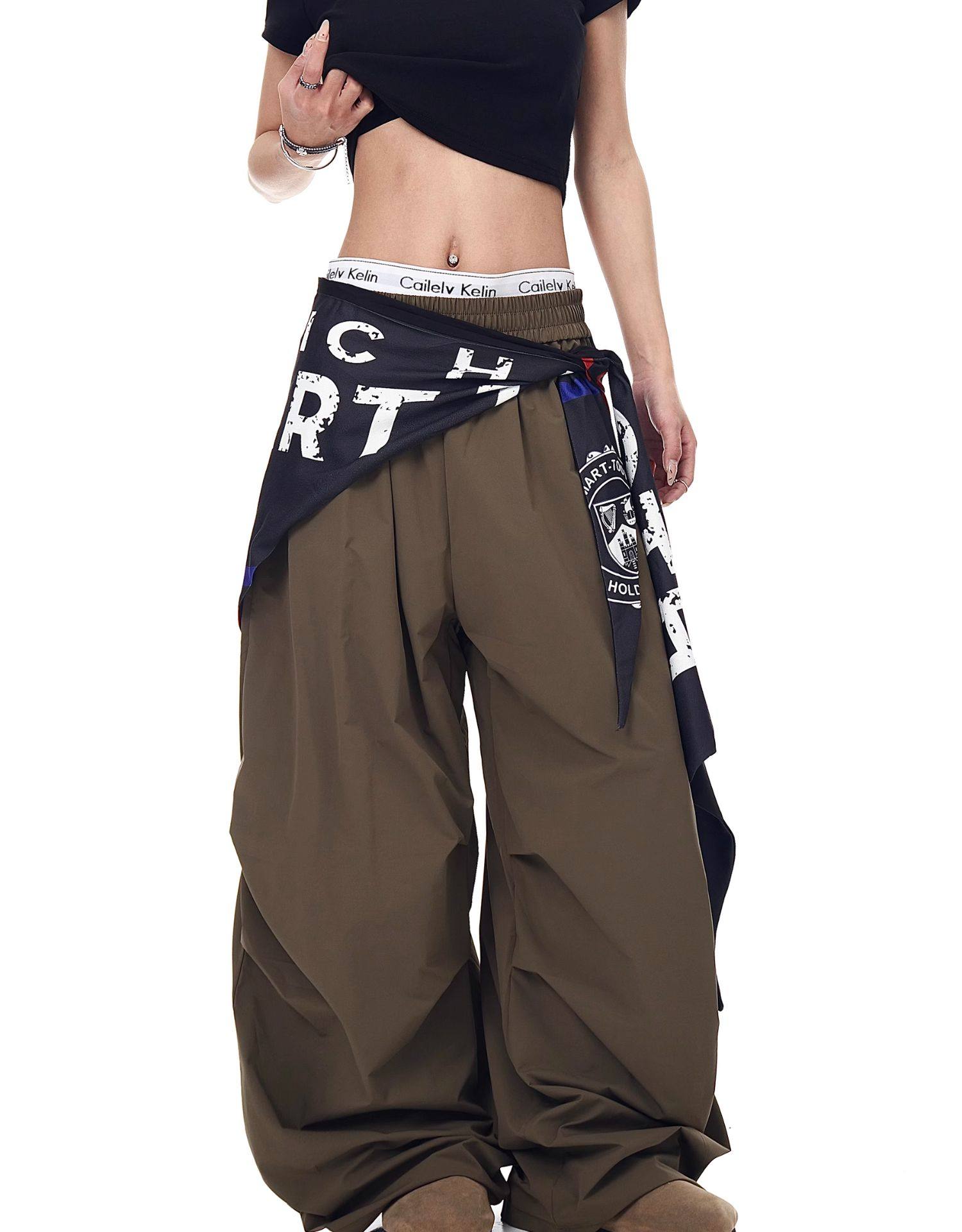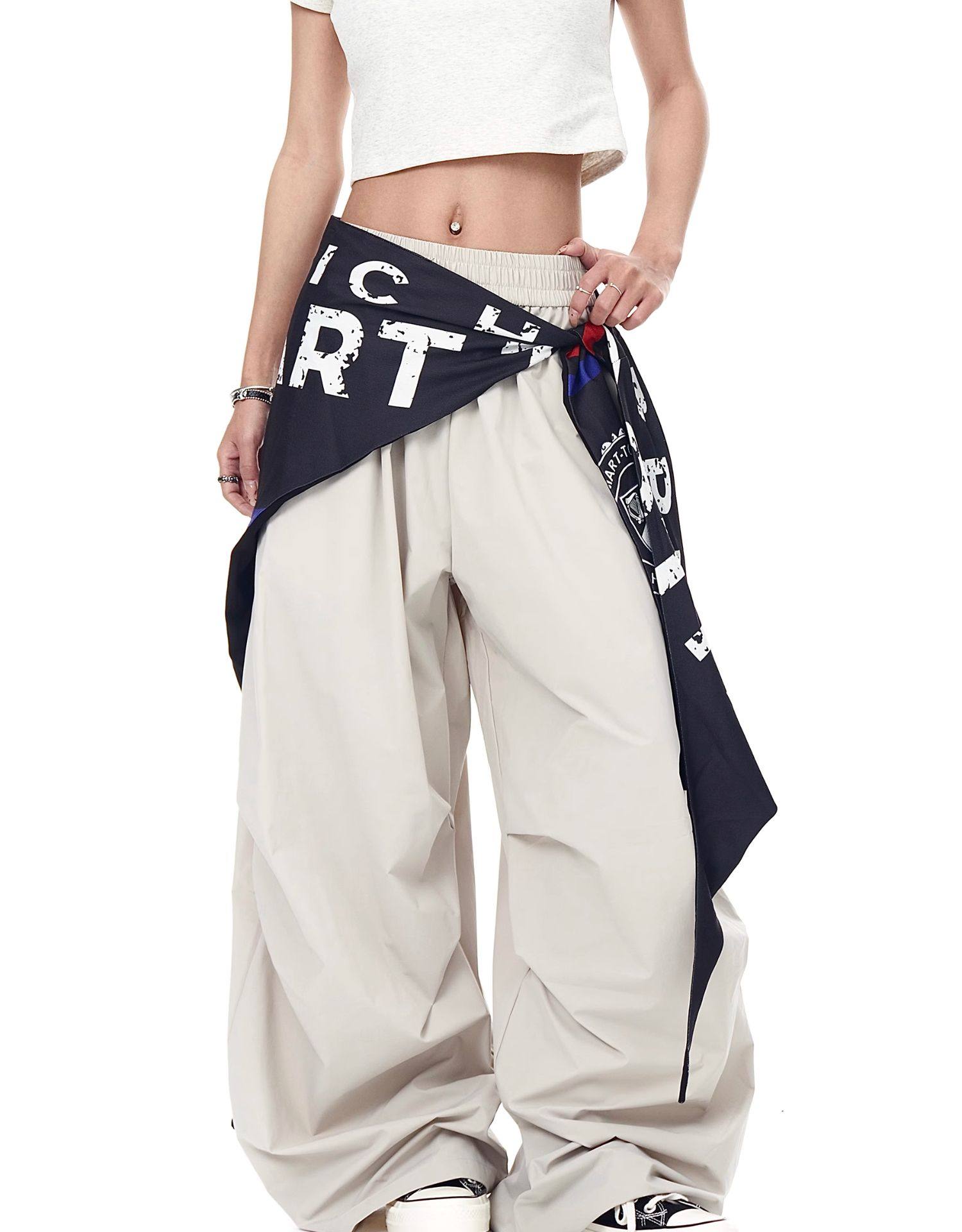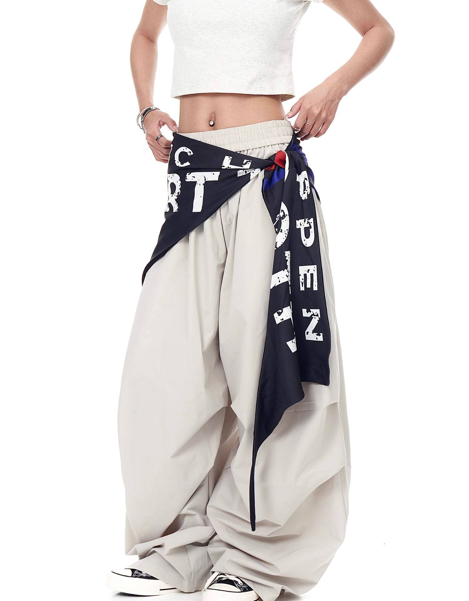Blacklists American Retro Design Cargo Parachute Pants for Men and Women, Fleece-Lined, Pleated, Scimitar Wide-Leg Pants