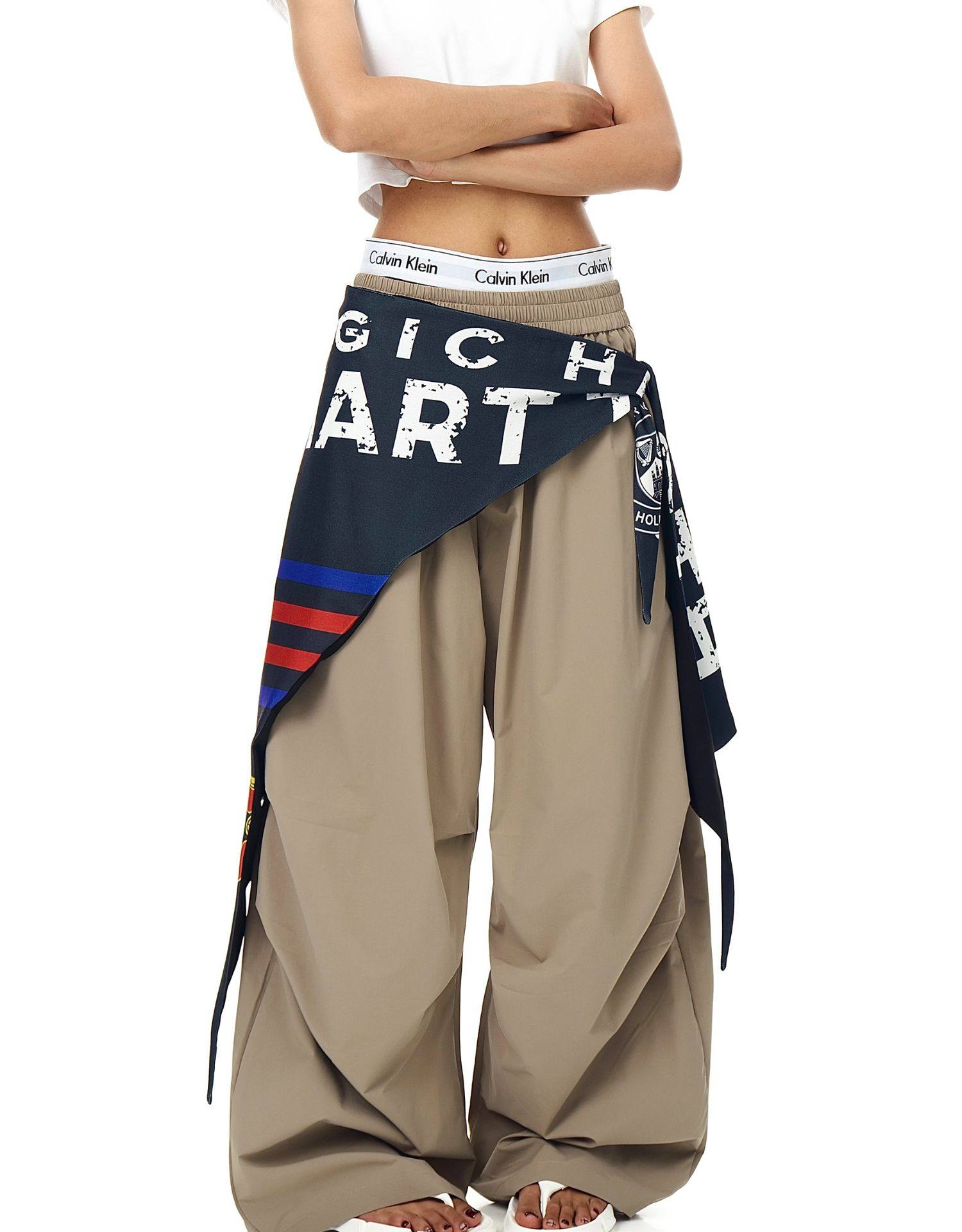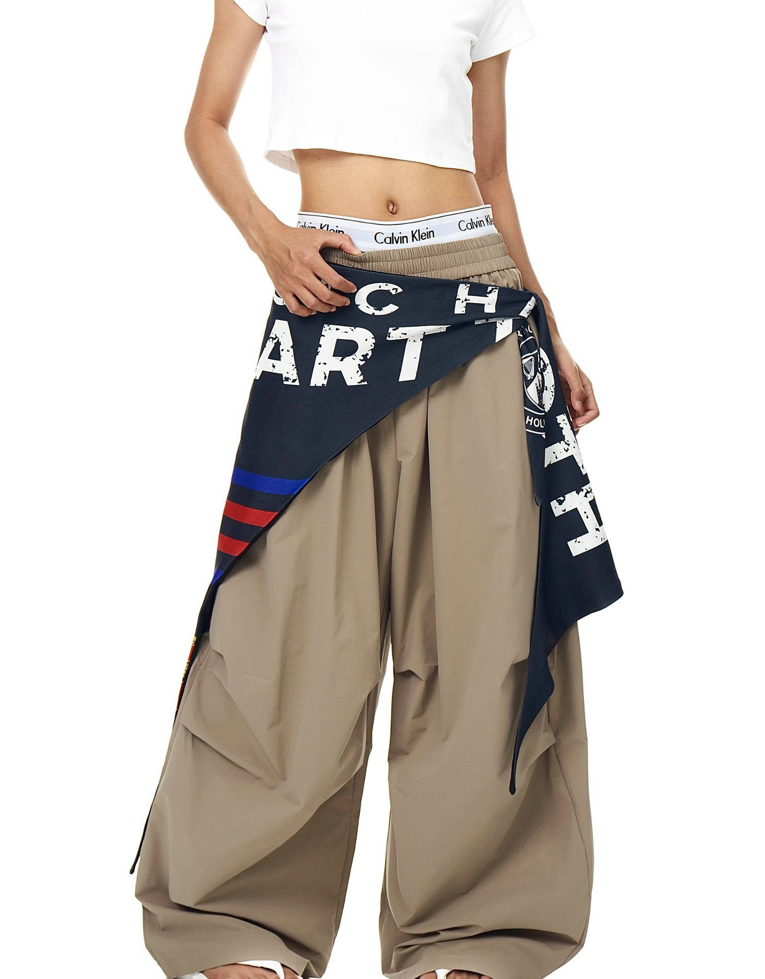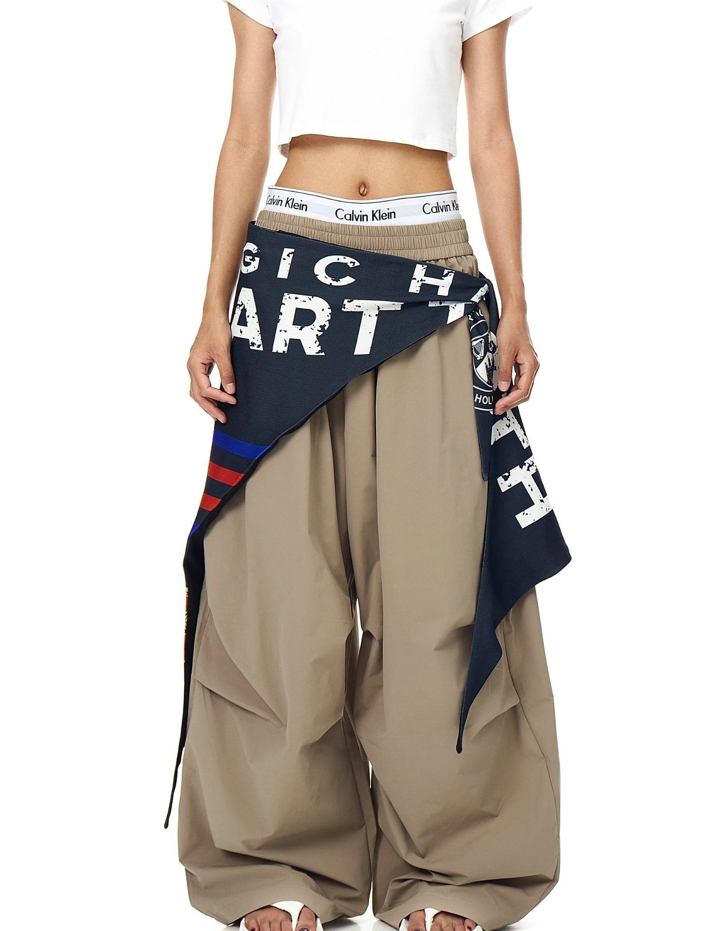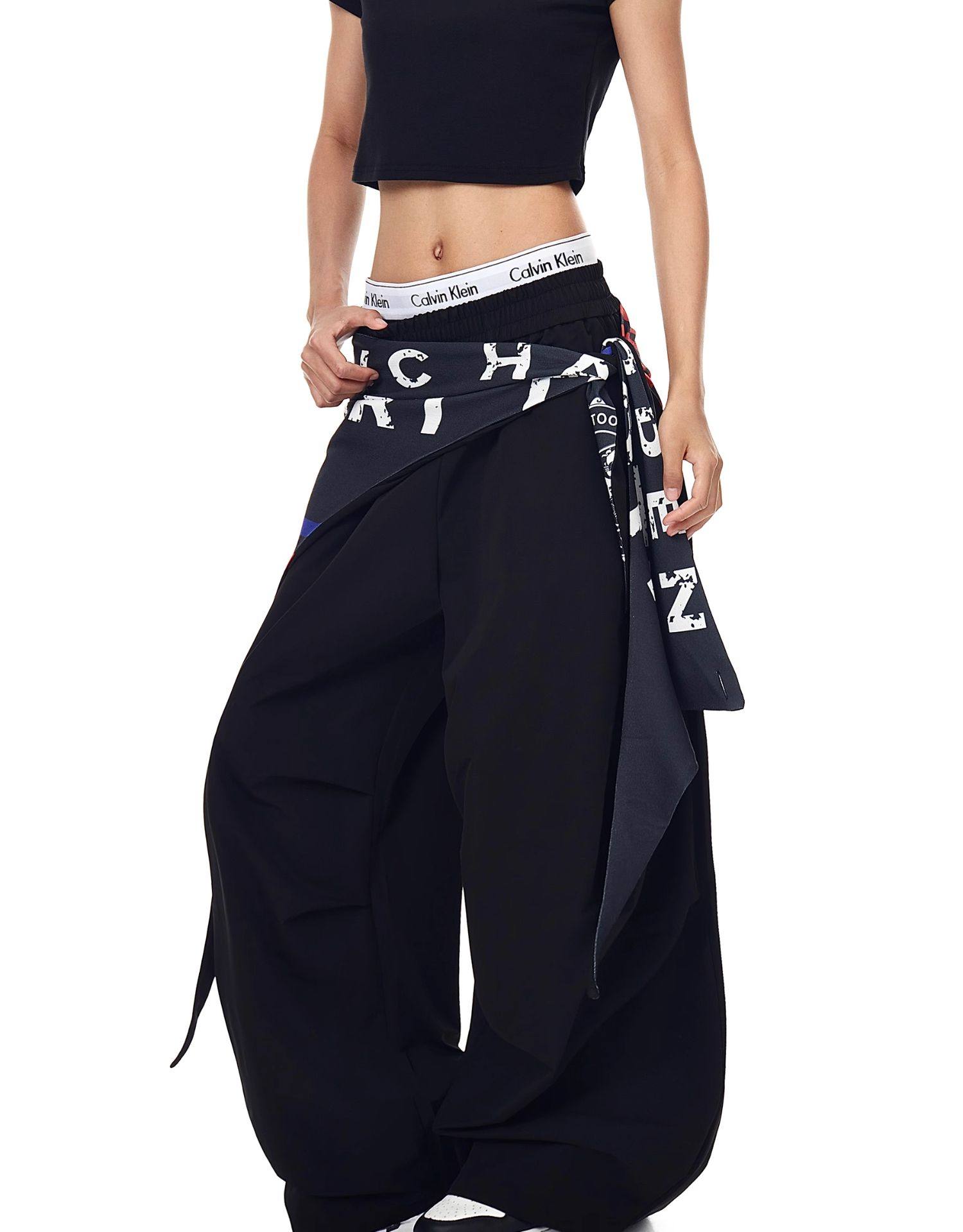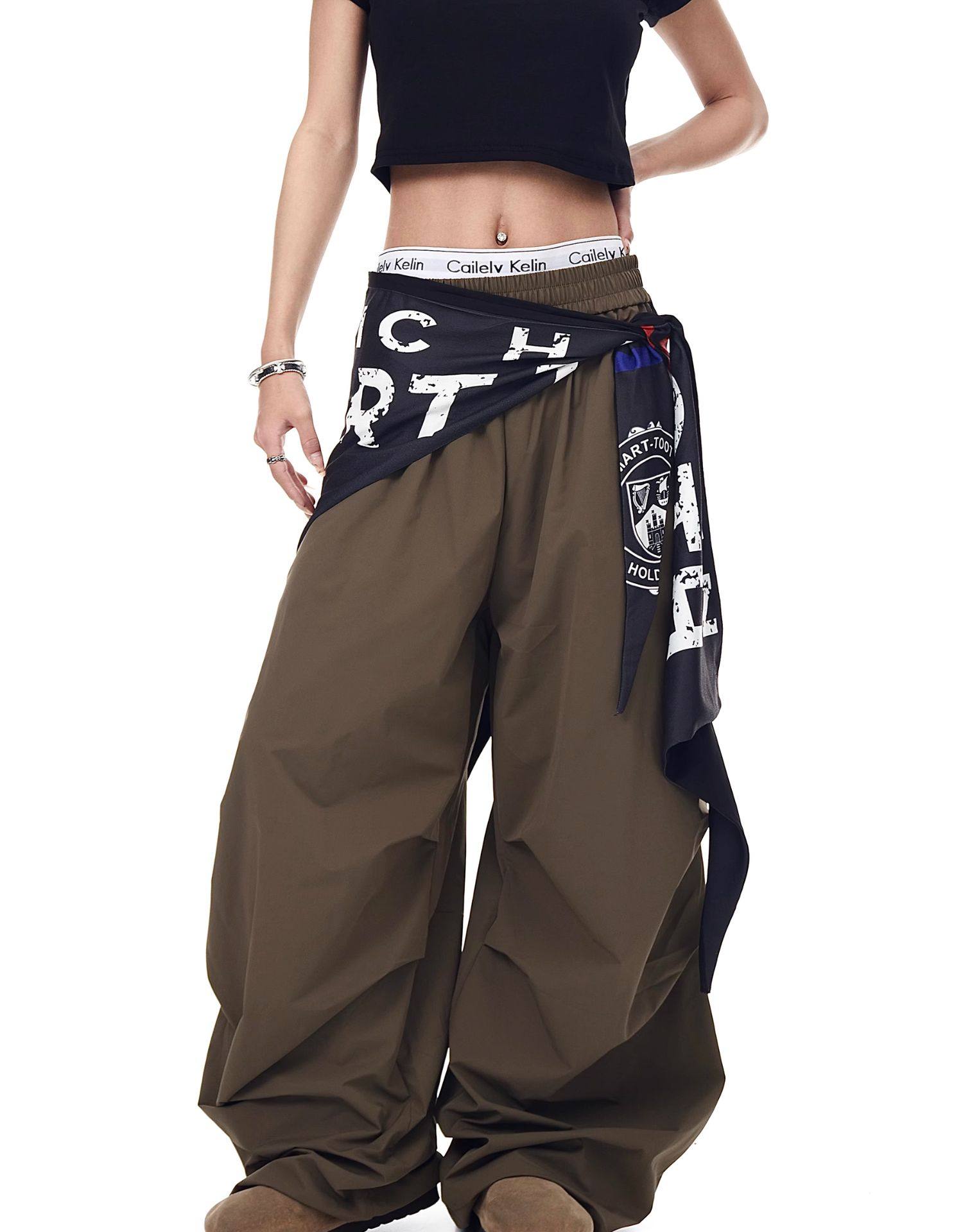 Blacklists American Retro Design Cargo Parachute Pants for Men and Women, Fleece-Lined, Pleated, Scimitar Wide-Leg Pants
