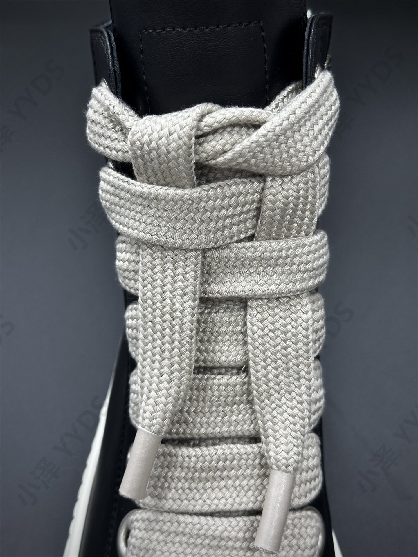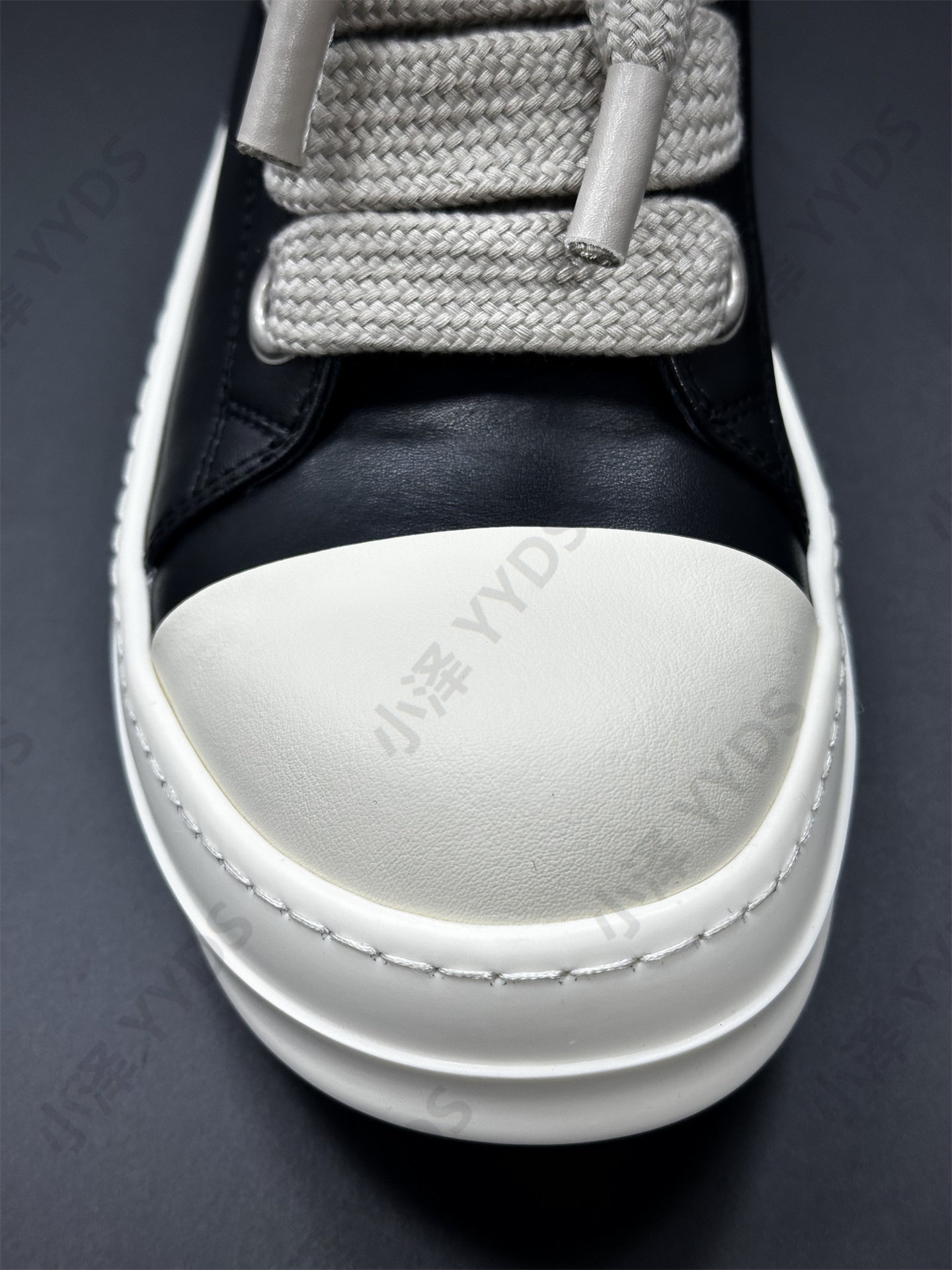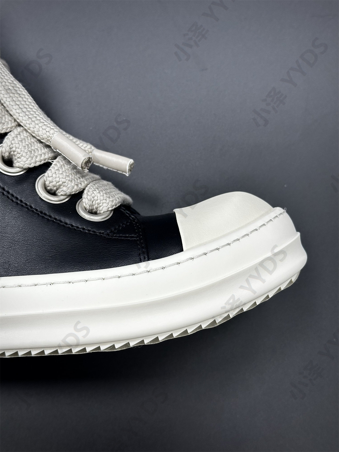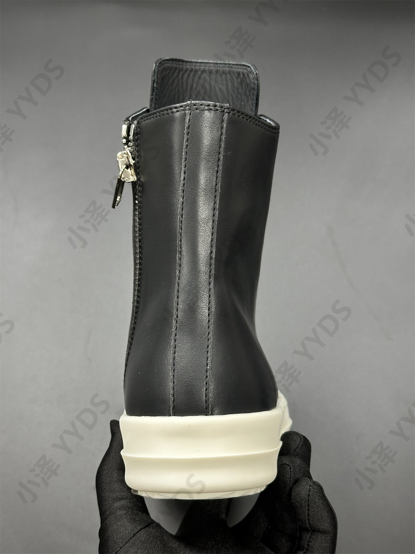 Rick Ocean Ro Independent Main Line Leather Upper, Secondary Line Canvas, Milky White Sole, Thick Shoelaces, Black and White High Street High-Top Shoes