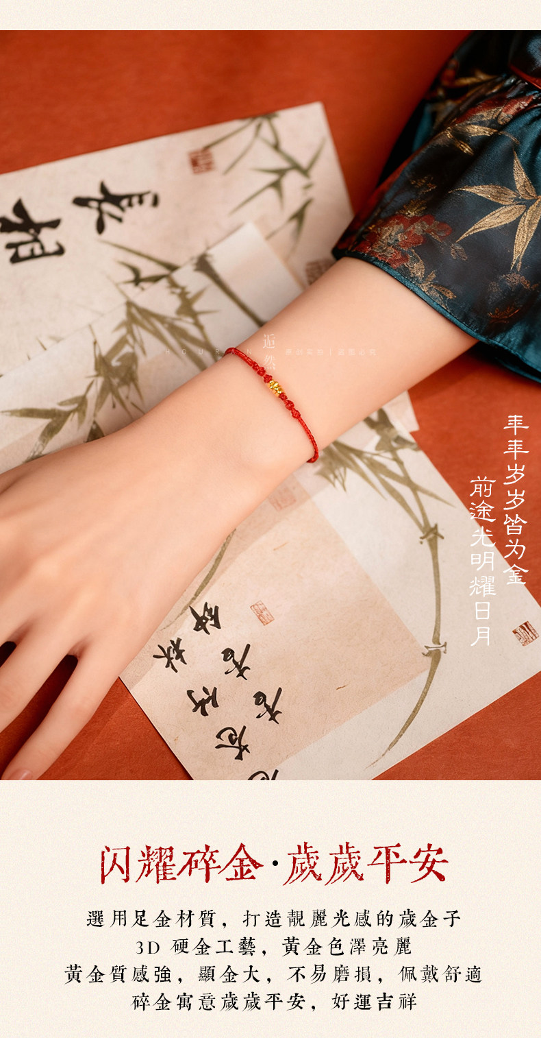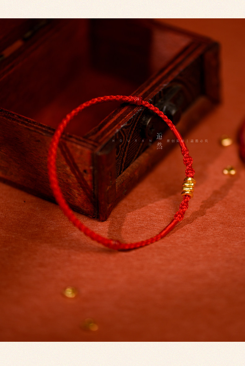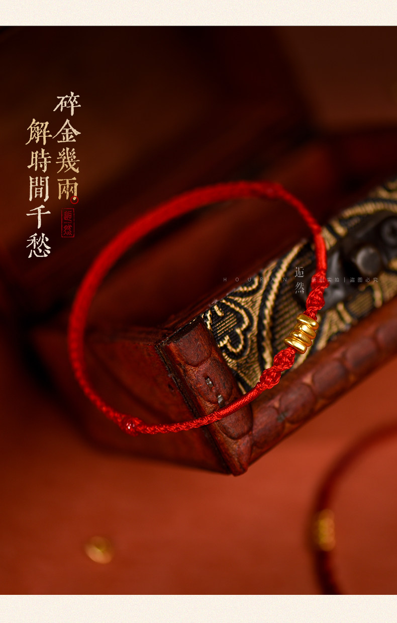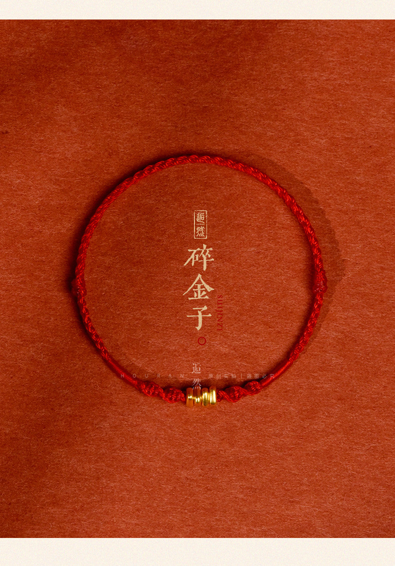 999 Pure Gold Broken Gold Pieces Red String Bracelet for Women and Men, Braided Rope for the Year of the Horse, Wealth and Luck, Red Safety Bracelet