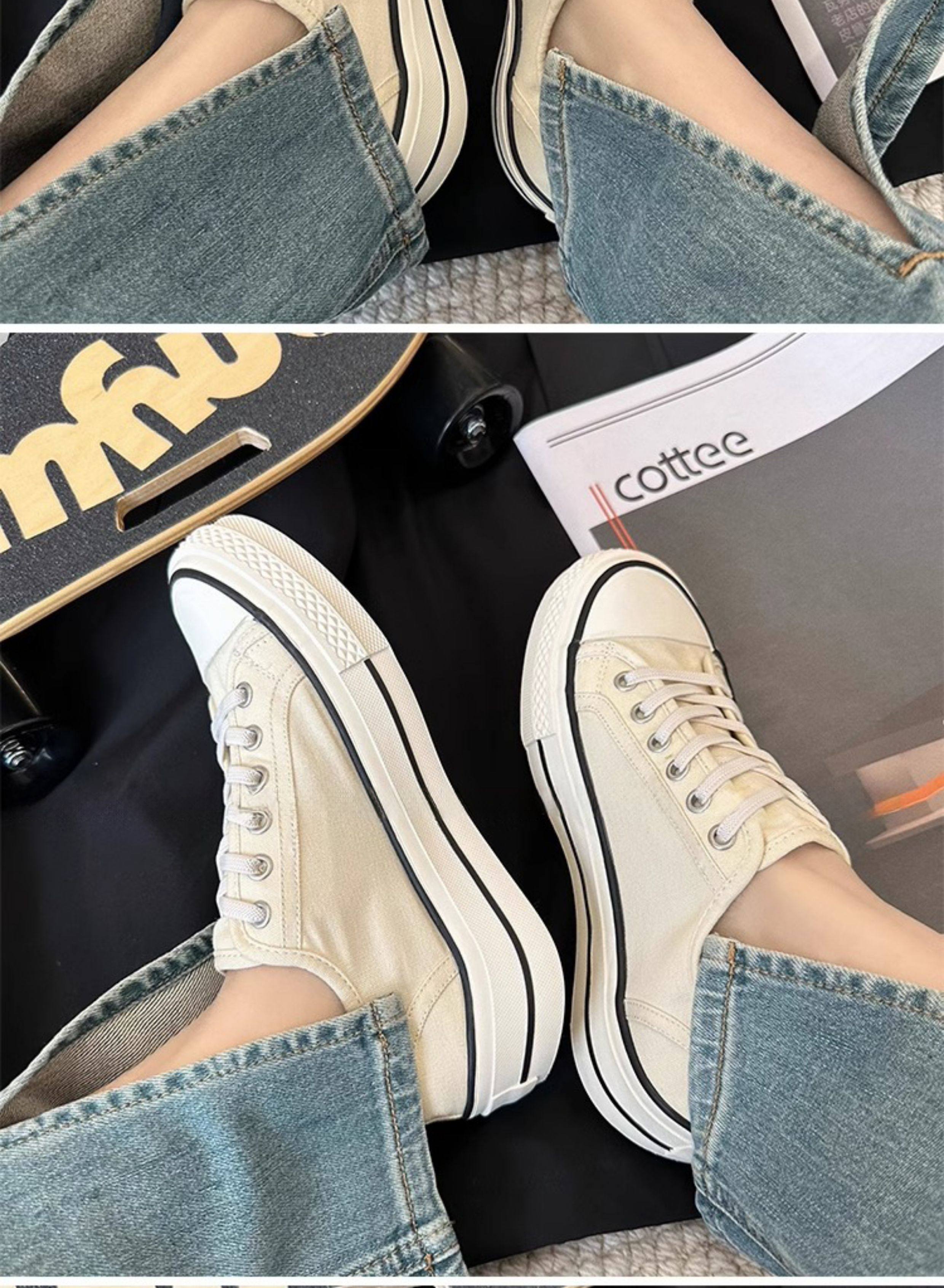 Hong Kong Thick-Soled Height-Increasing Canvas White Shoes for Women 2025 Autumn New Genuine Leather Casual Sneakers Korean Style Breathable Versatile