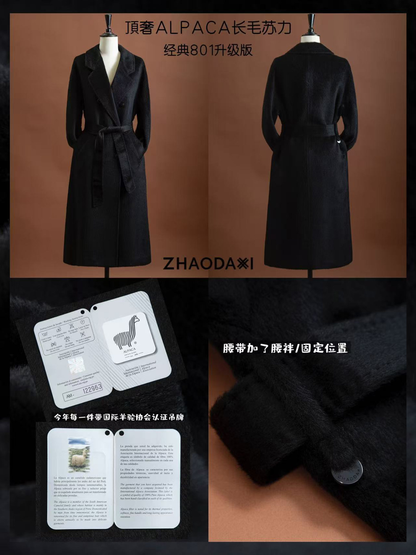 这款大衣采用100纯羊驼毛苏力