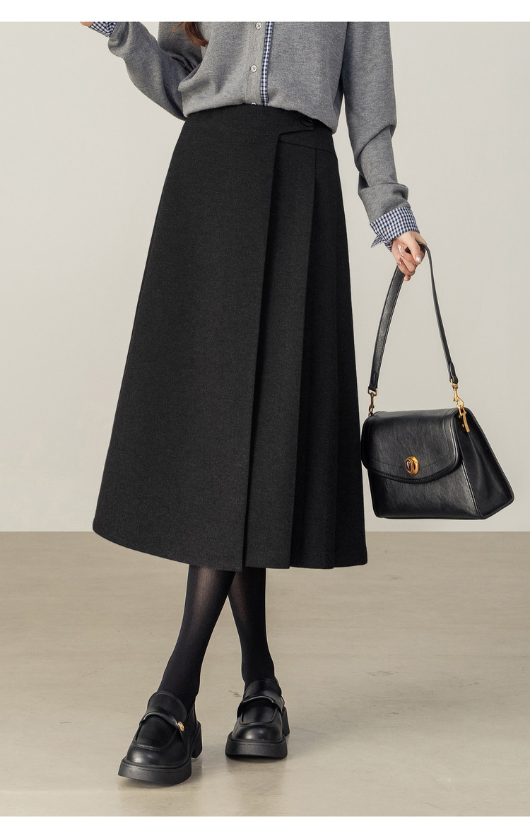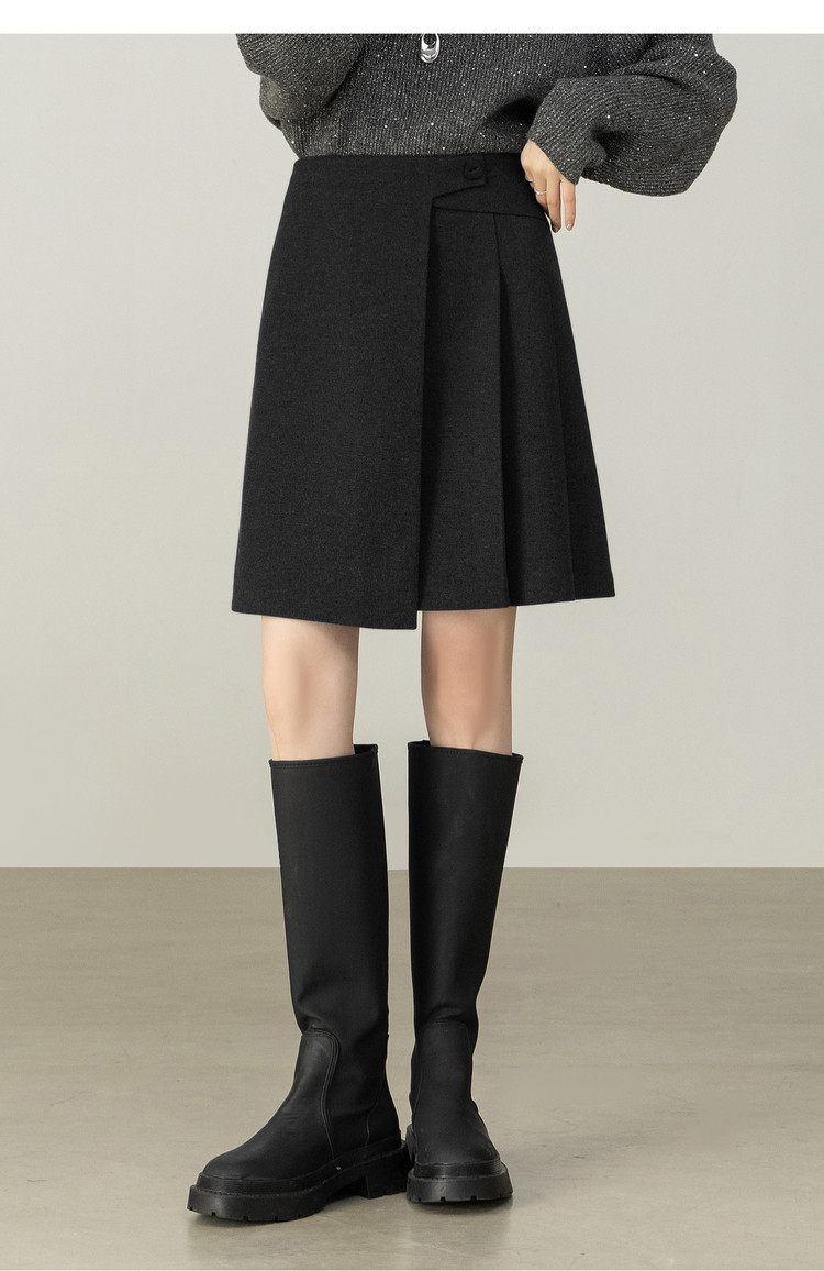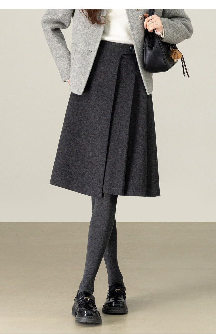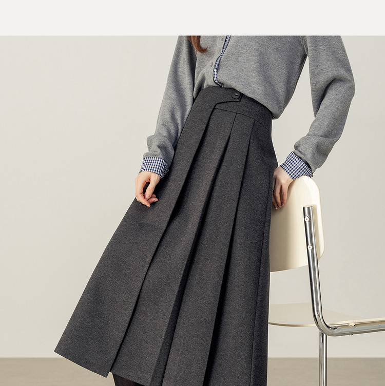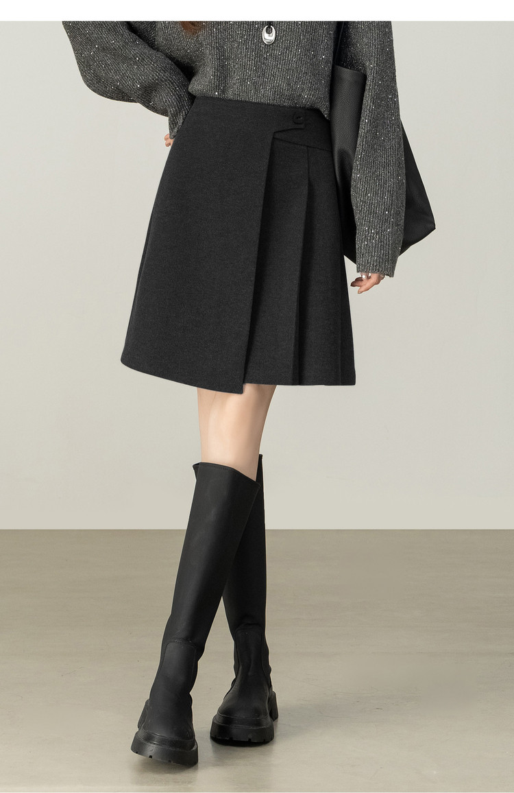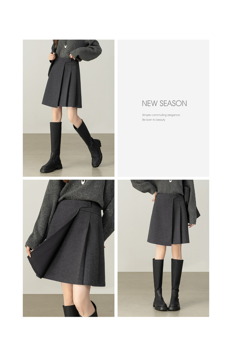 【Sanhao Magic Skirt】Women's Winter 2025 New Gray A-Line Short Skirt Thick Woolen Pleated Long Skirt