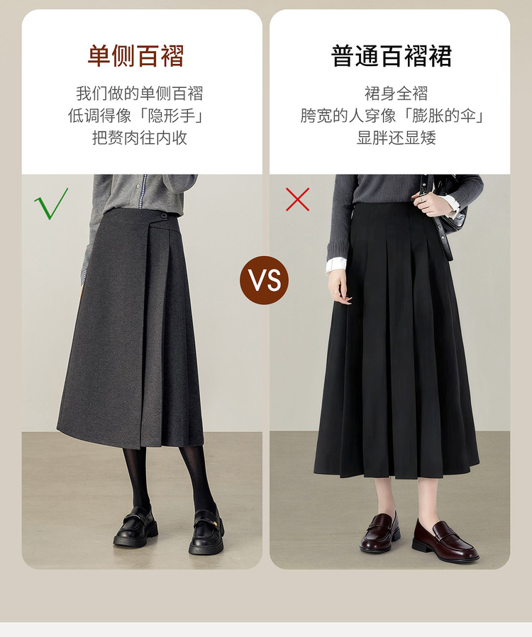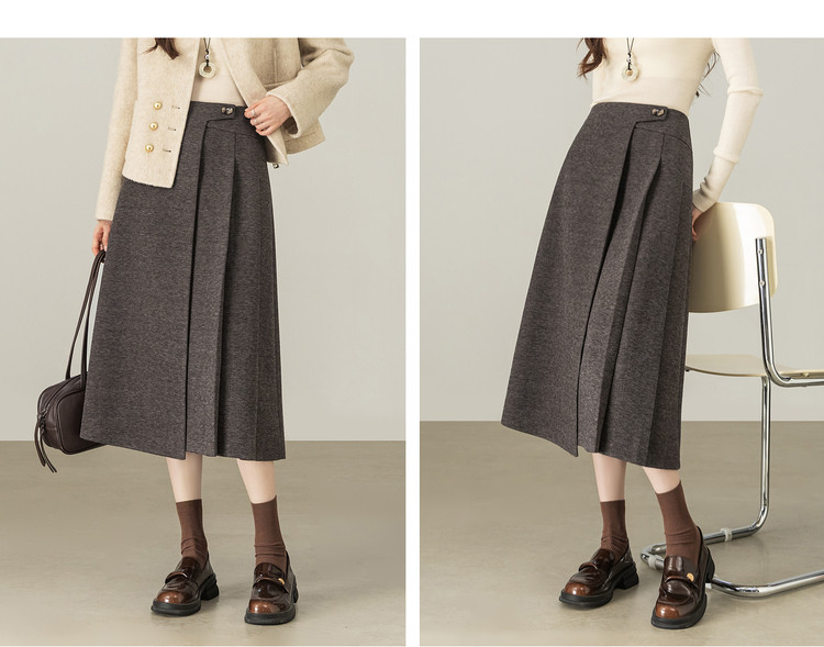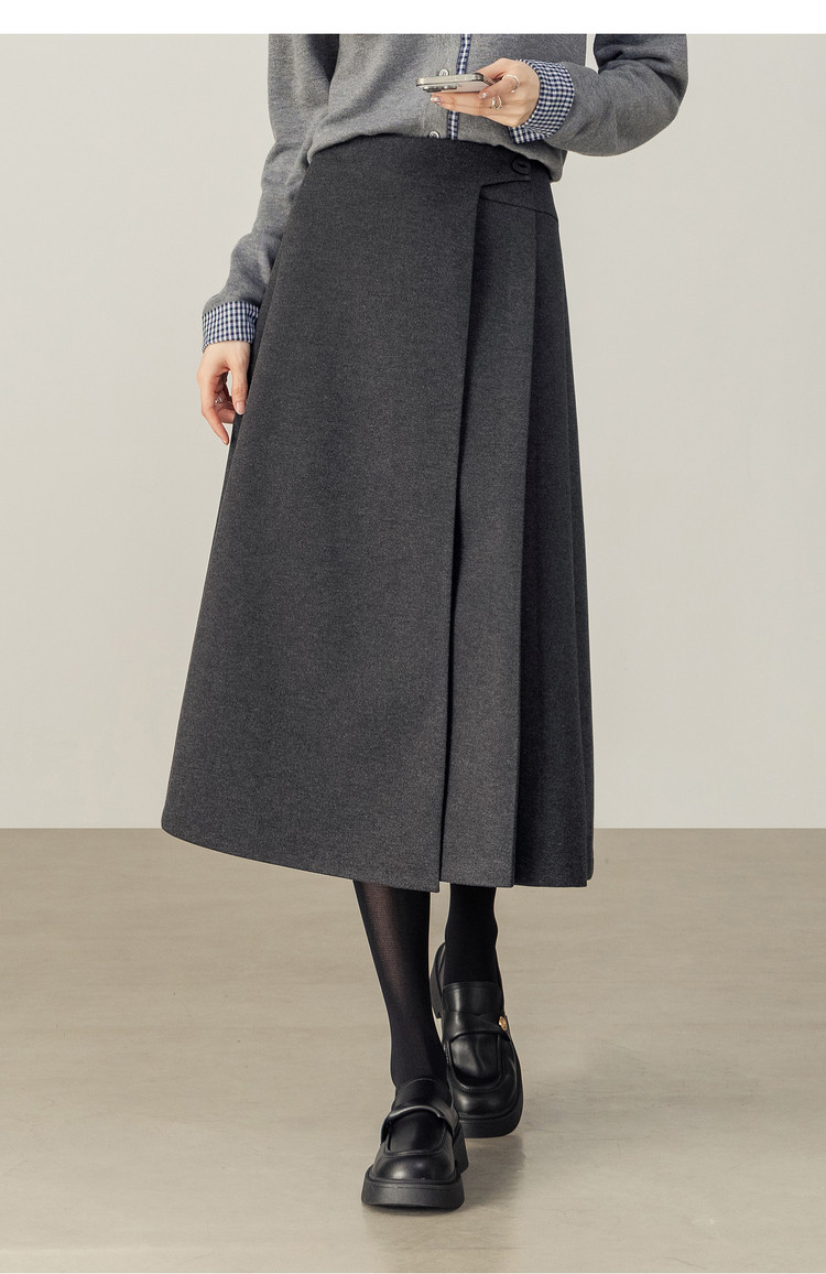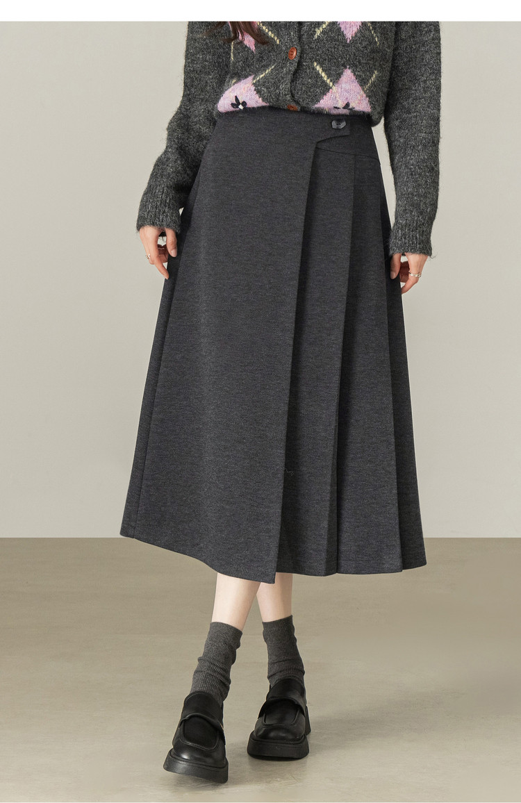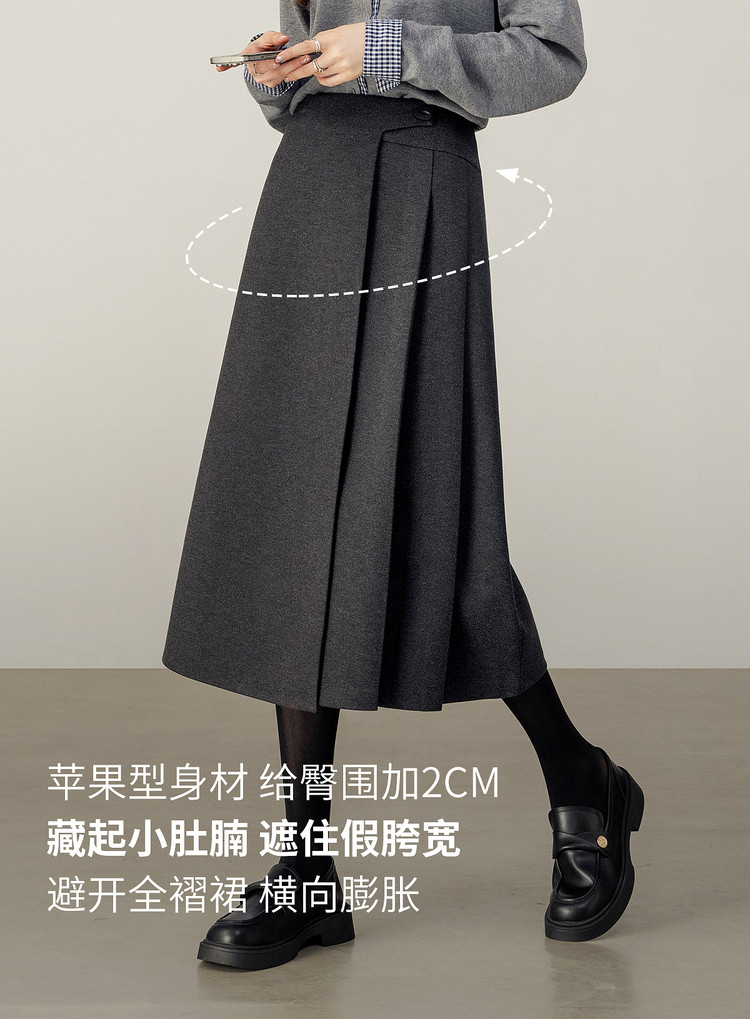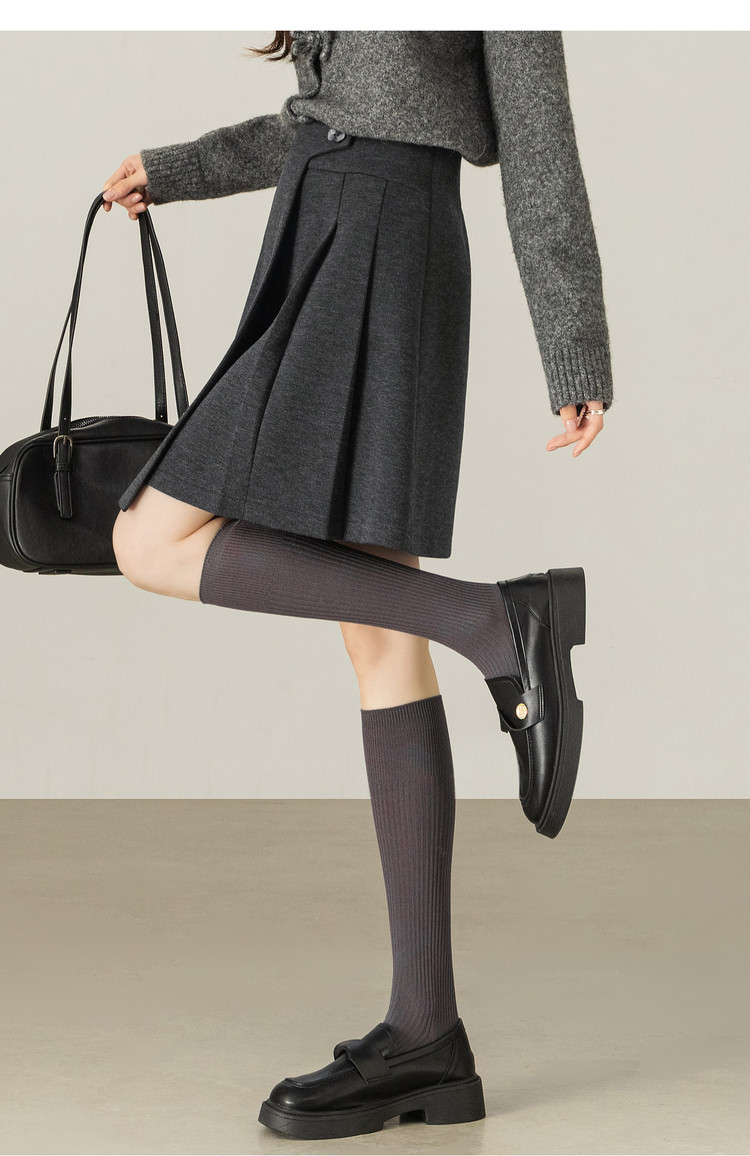 【Sanhao Magic Skirt】Women's Winter 2025 New Gray A-Line Short Skirt Thick Woolen Pleated Long Skirt