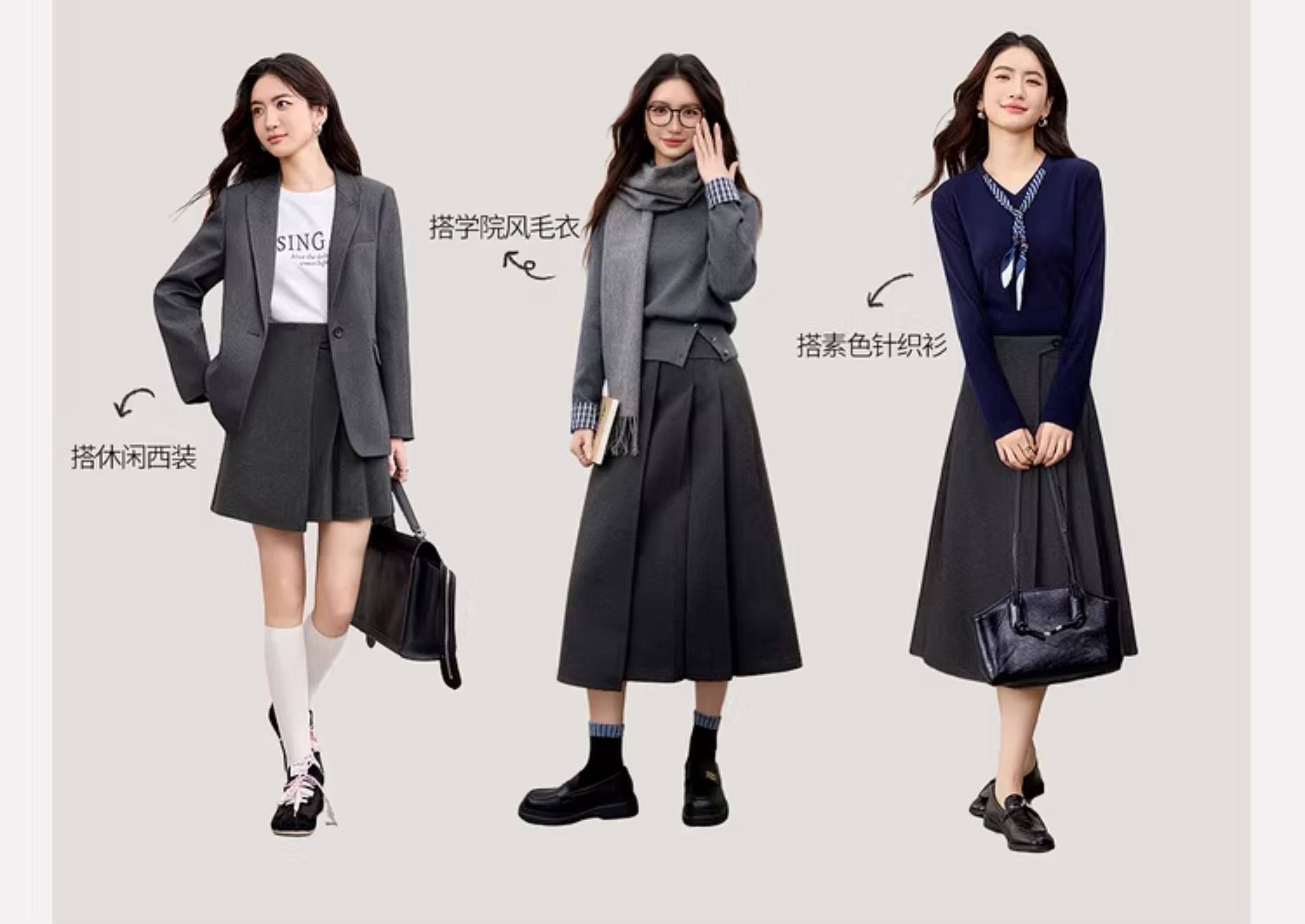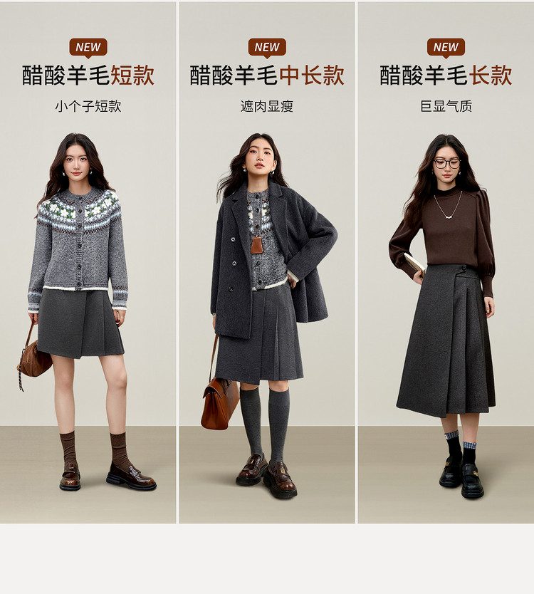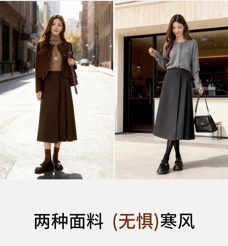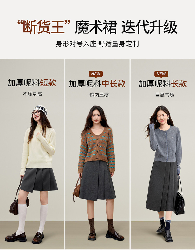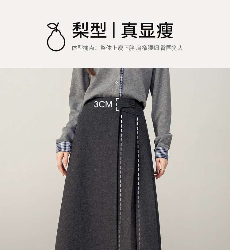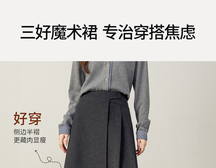 【Sanhao Magic Skirt】Women's Winter 2025 New Gray A-Line Short Skirt Thick Woolen Pleated Long Skirt