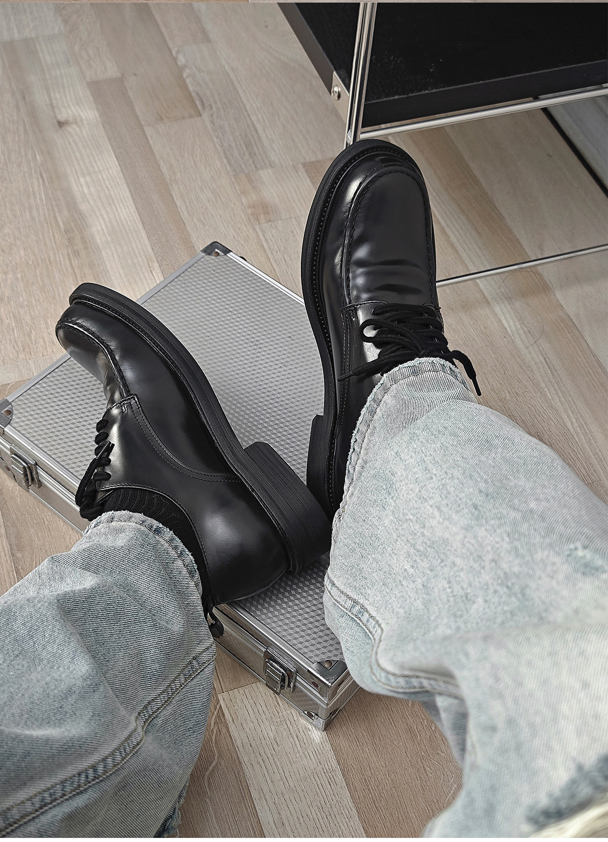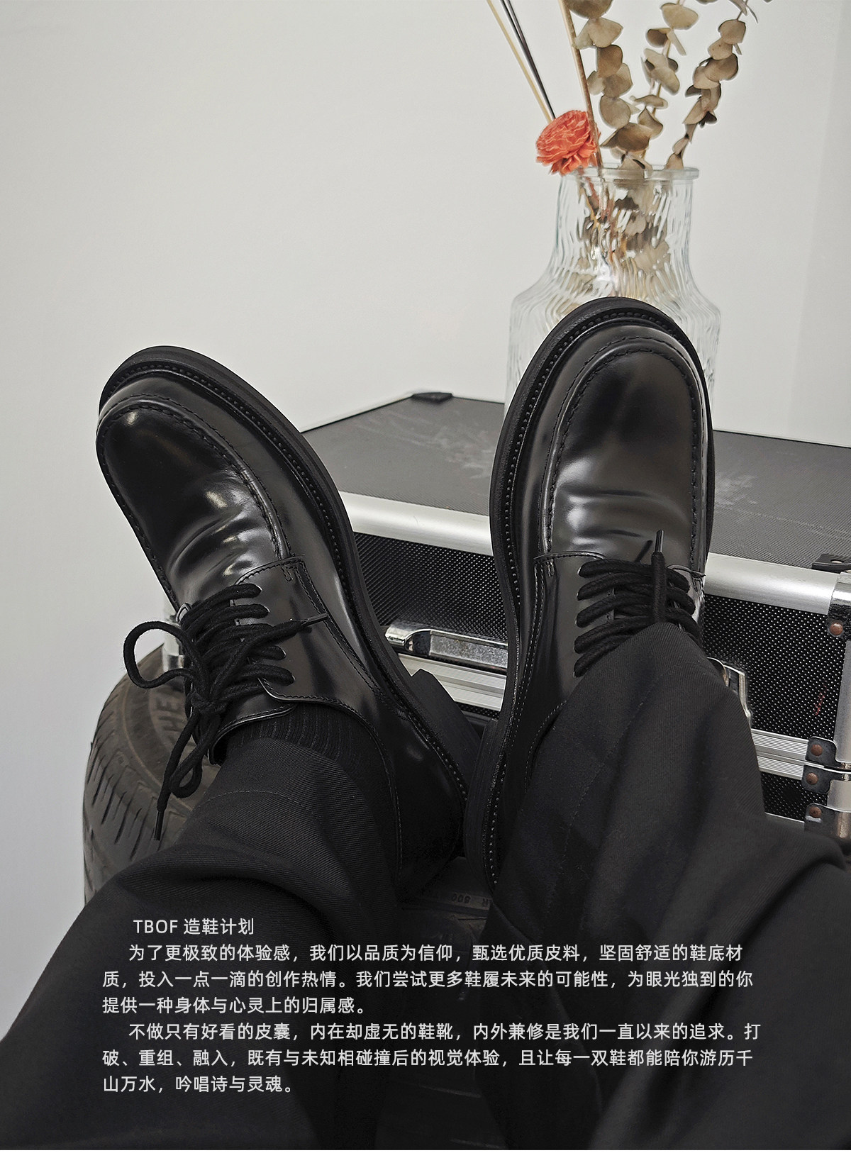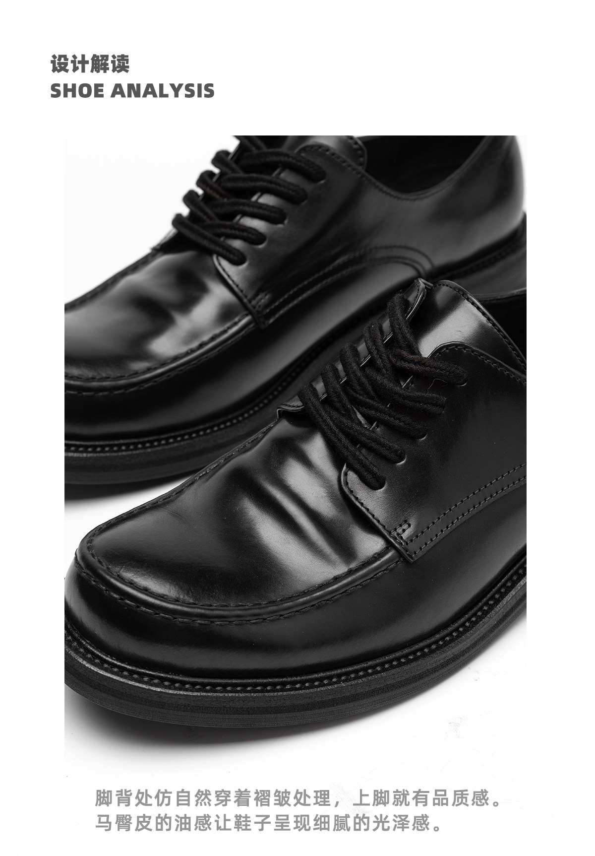 Tbof【Simple Old Money Style】First Layer Cowhide Leather Wrinkled High-End Derby Shoes Business Casual Leather Shoes for Men with Height Increase