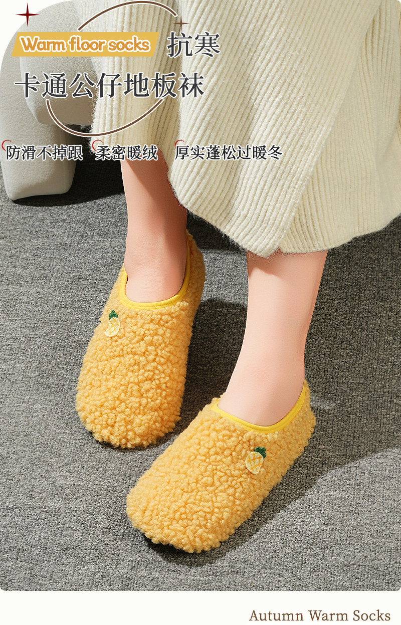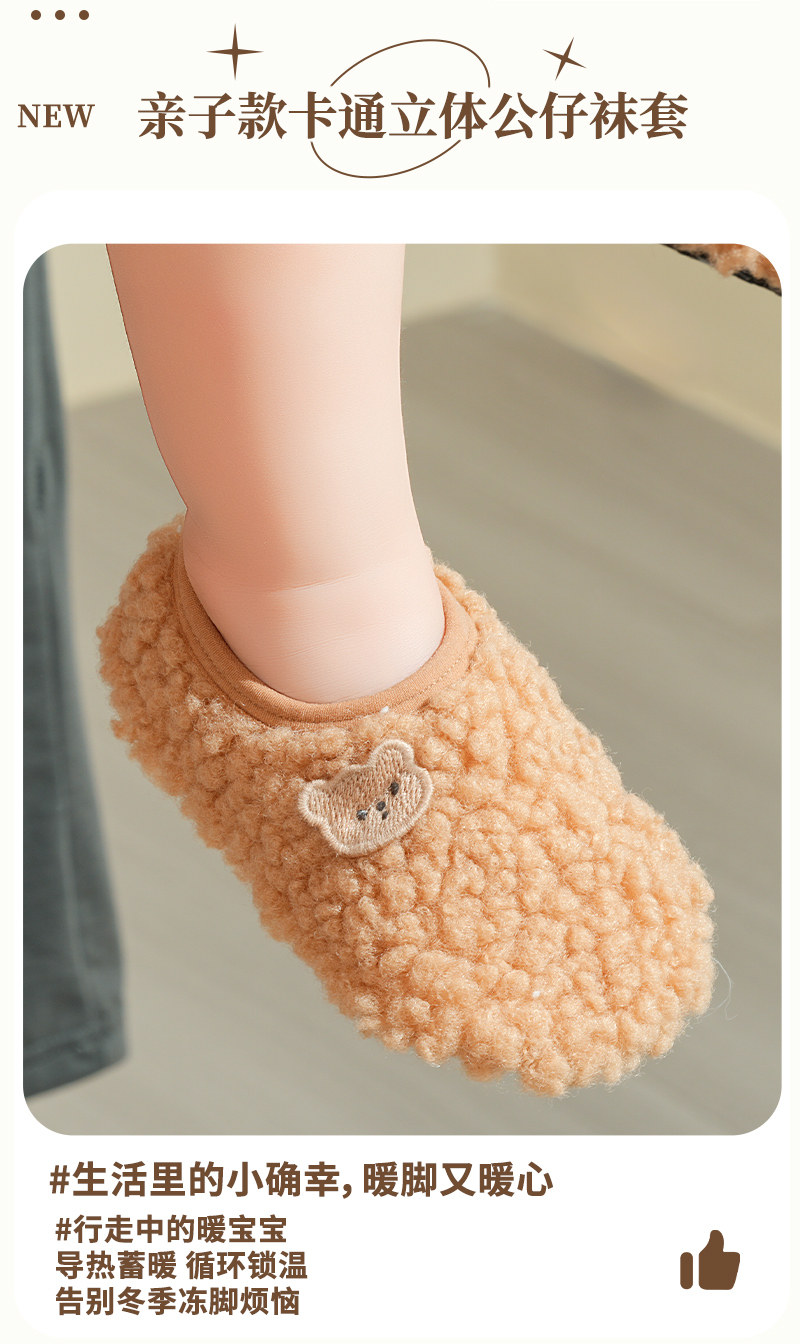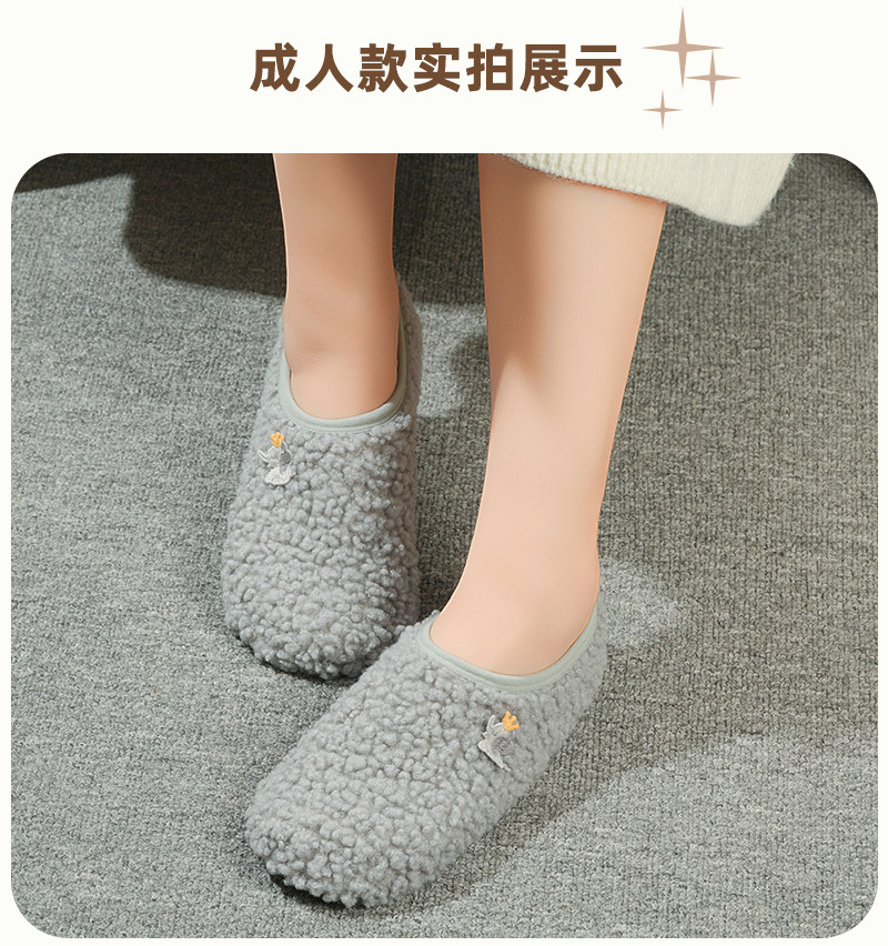 Floor Socks for Adults and Children, Autumn and Winter Fleece-Lined Home Warm Socks, Thickened Anti-Cold Floor Shoes for Early Education
