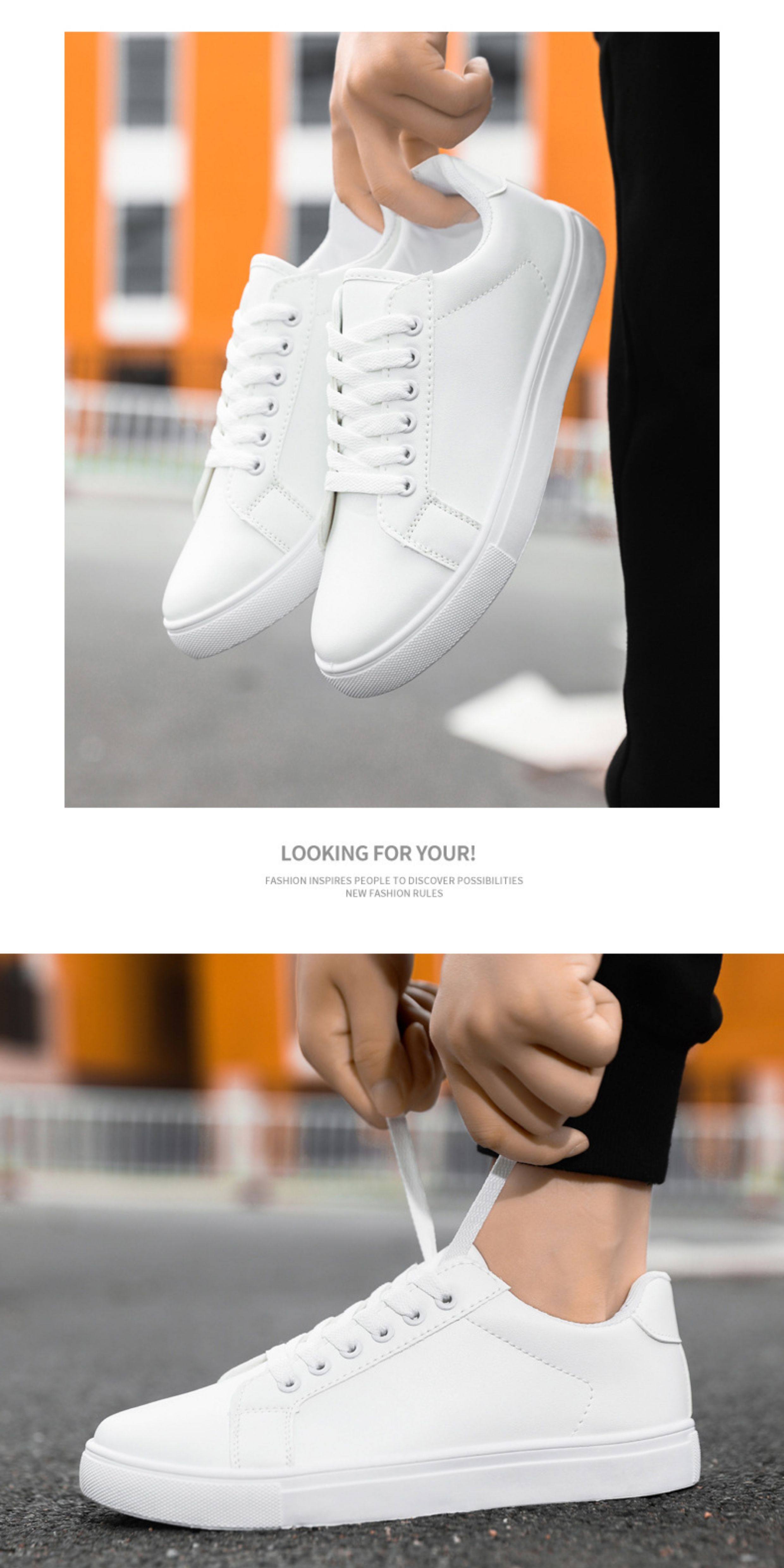 Foreign Trade Large Size Men's Shoes 46 47 48 White Sneakers Men's Pure White Casual Sports Shoes 2025 New Style Sneakers Leather Surface