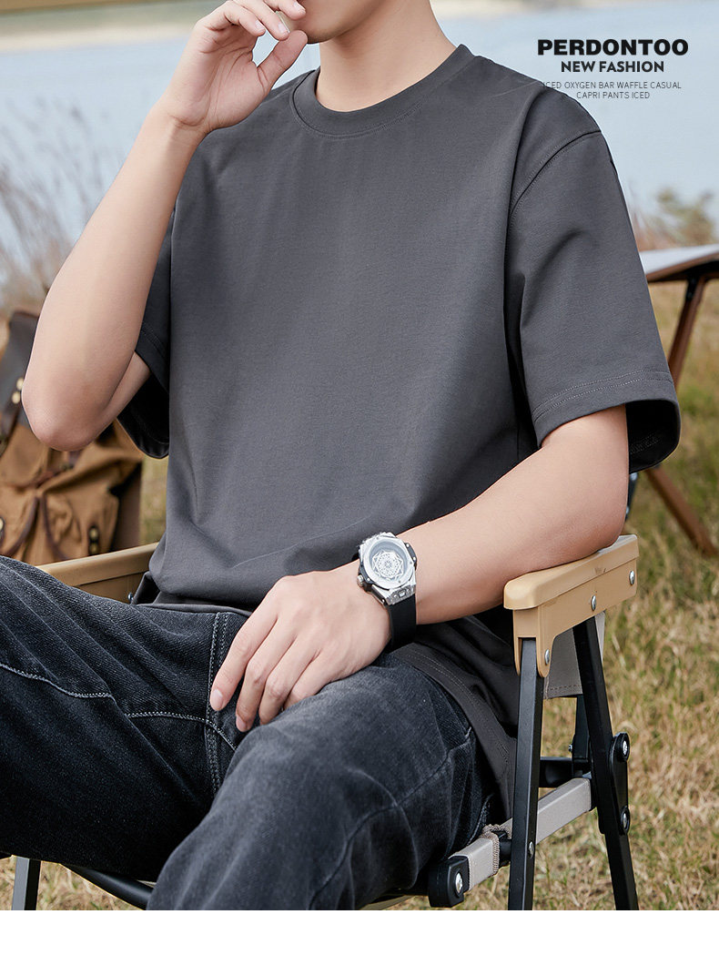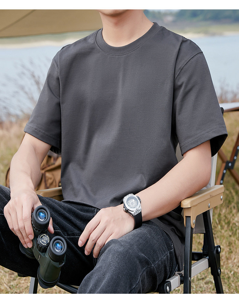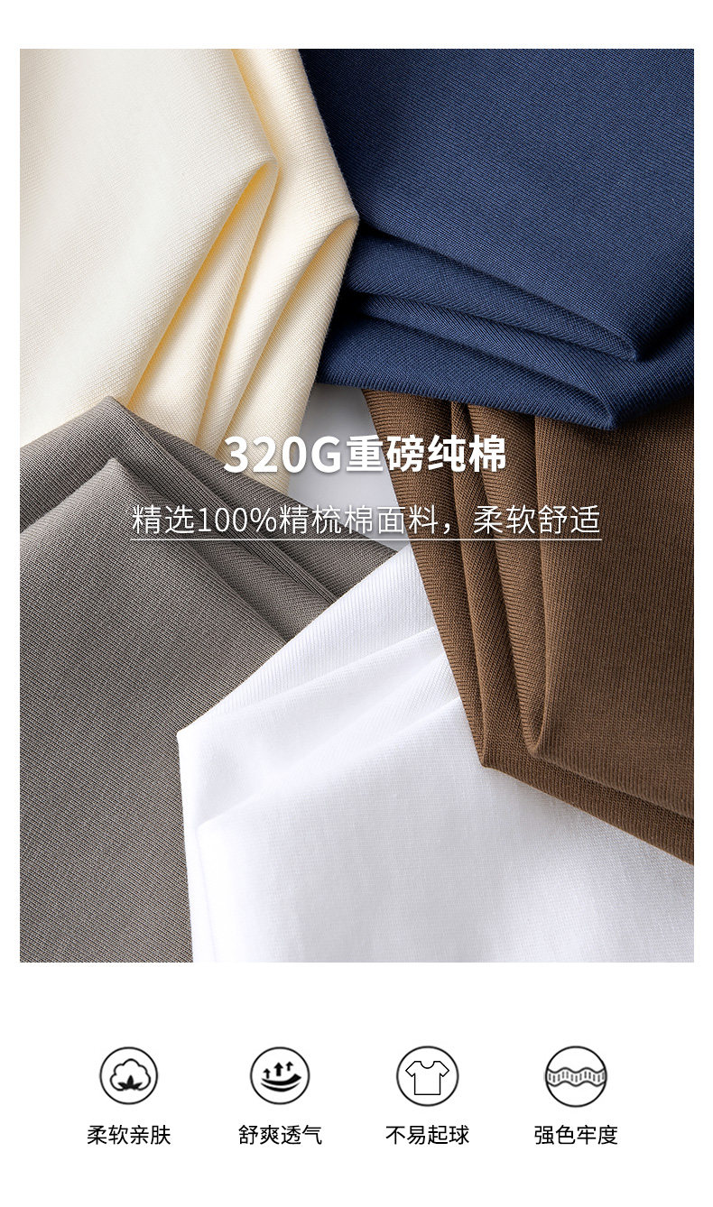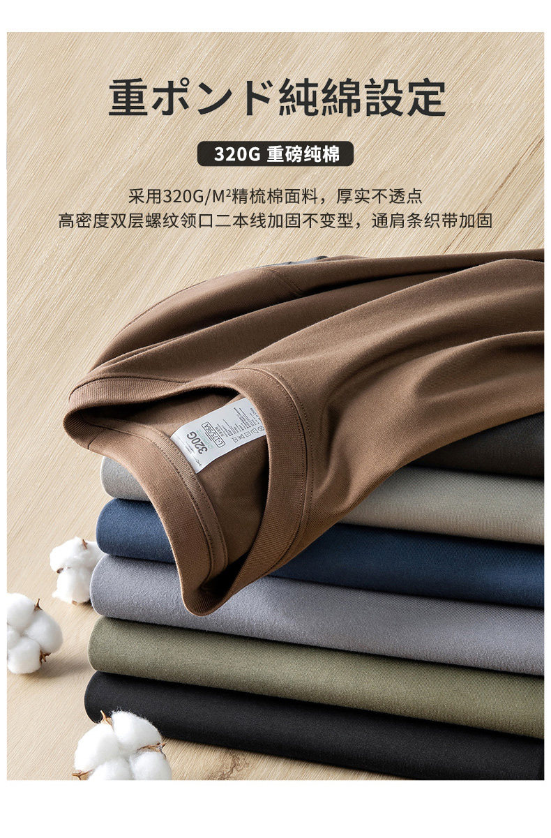 320g Heavyweight High-End Pure Cotton Short-Sleeve T-Shirt for Men, 2025 Summer, Loose Fit, Thick, High Weight, Pure White, Non-See-Through