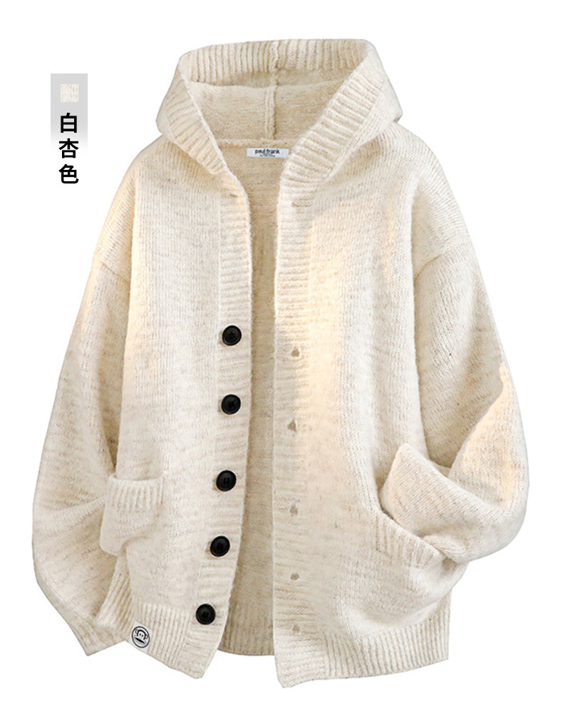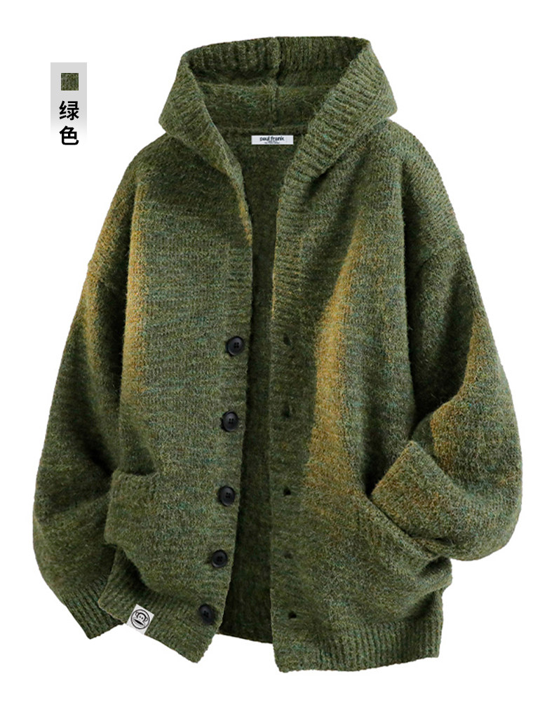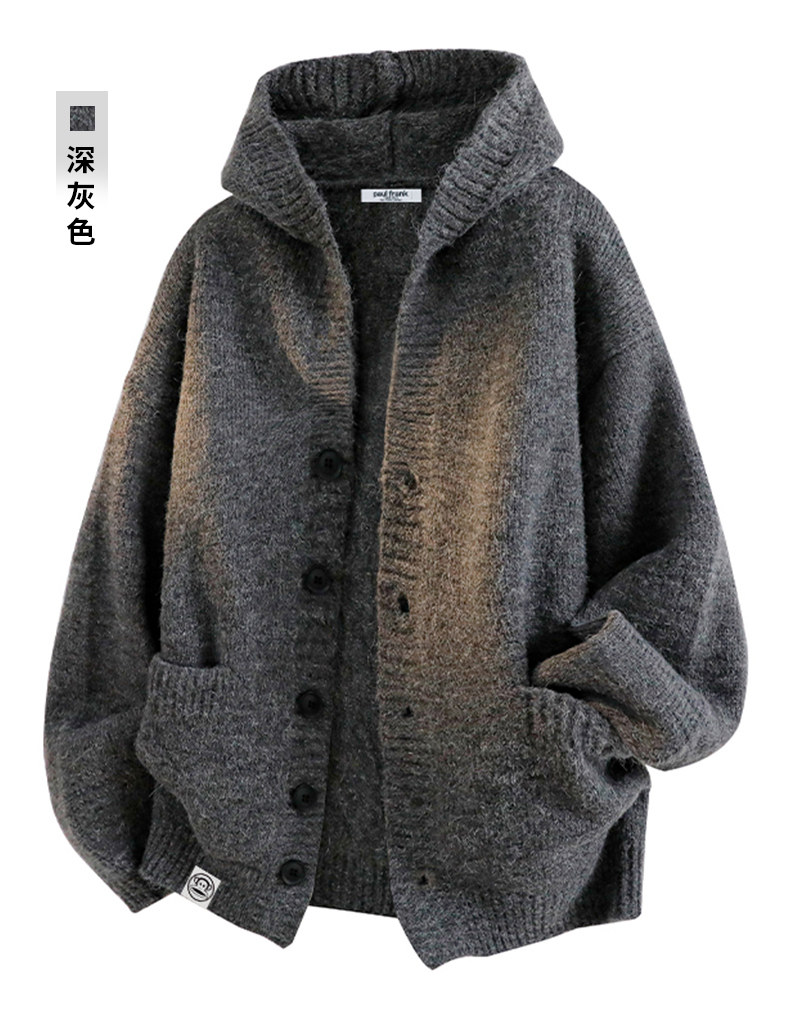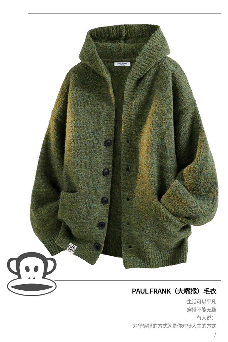 Paulfrank/Big Mouth Monkey Hooded Knitted Cardigan for Men, Autum Loose and Lazy Style Couple Retro Warm Sweater
