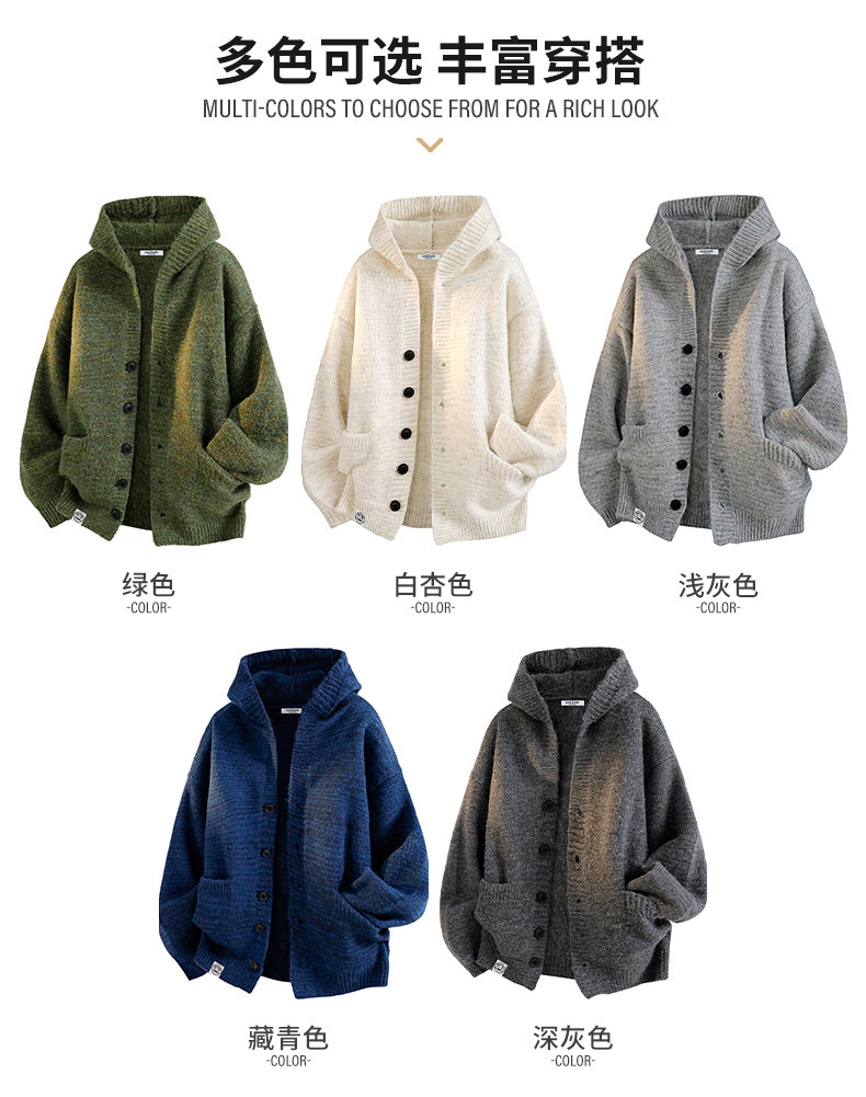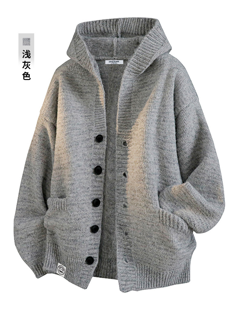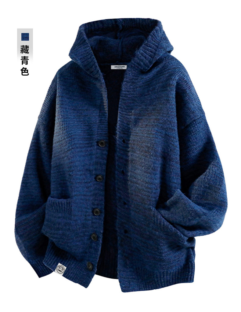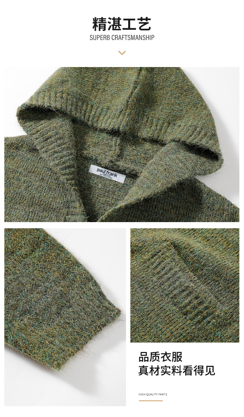 Paulfrank/Big Mouth Monkey Hooded Knitted Cardigan for Men, Autum Loose and Lazy Style Couple Retro Warm Sweater