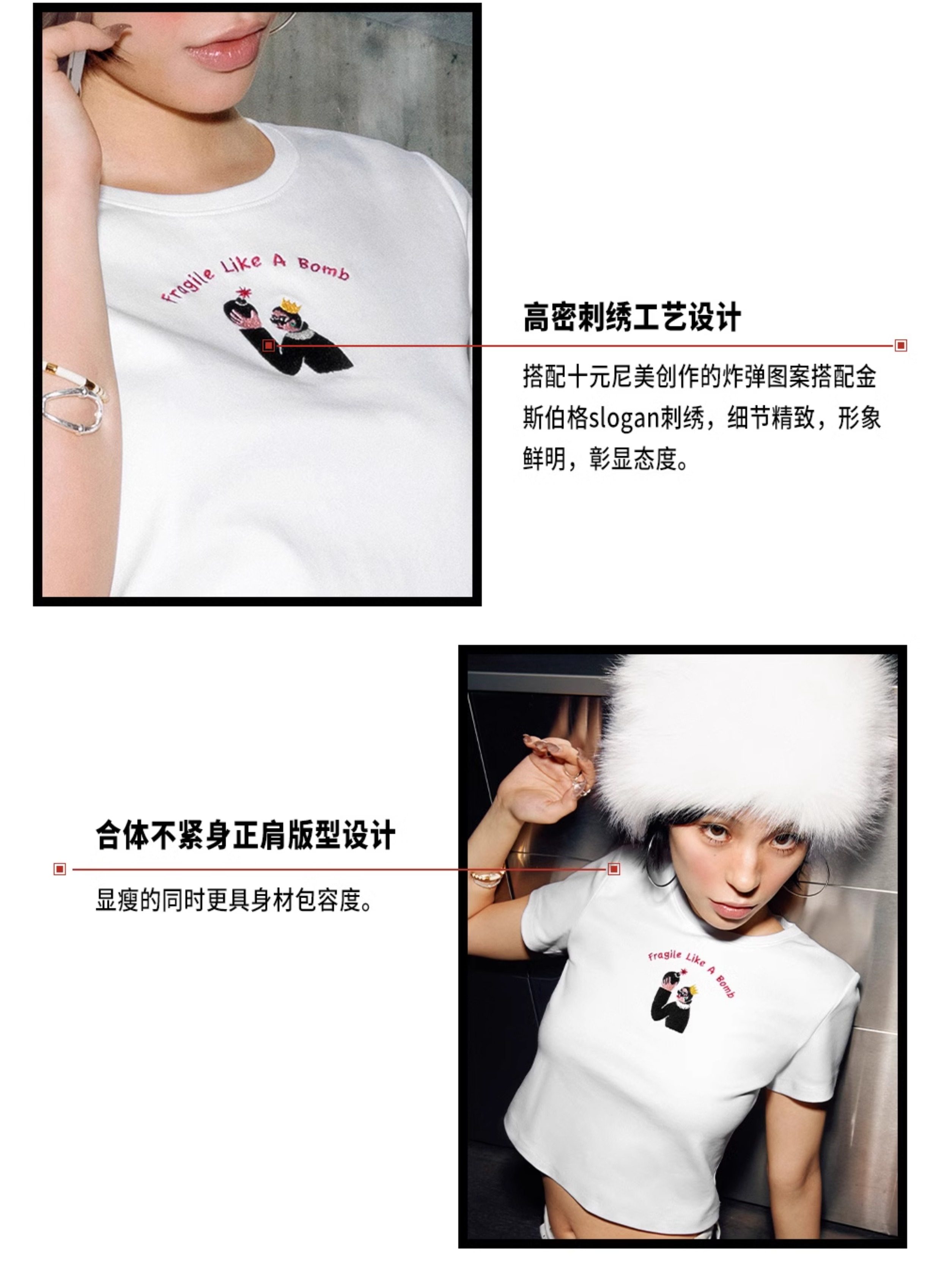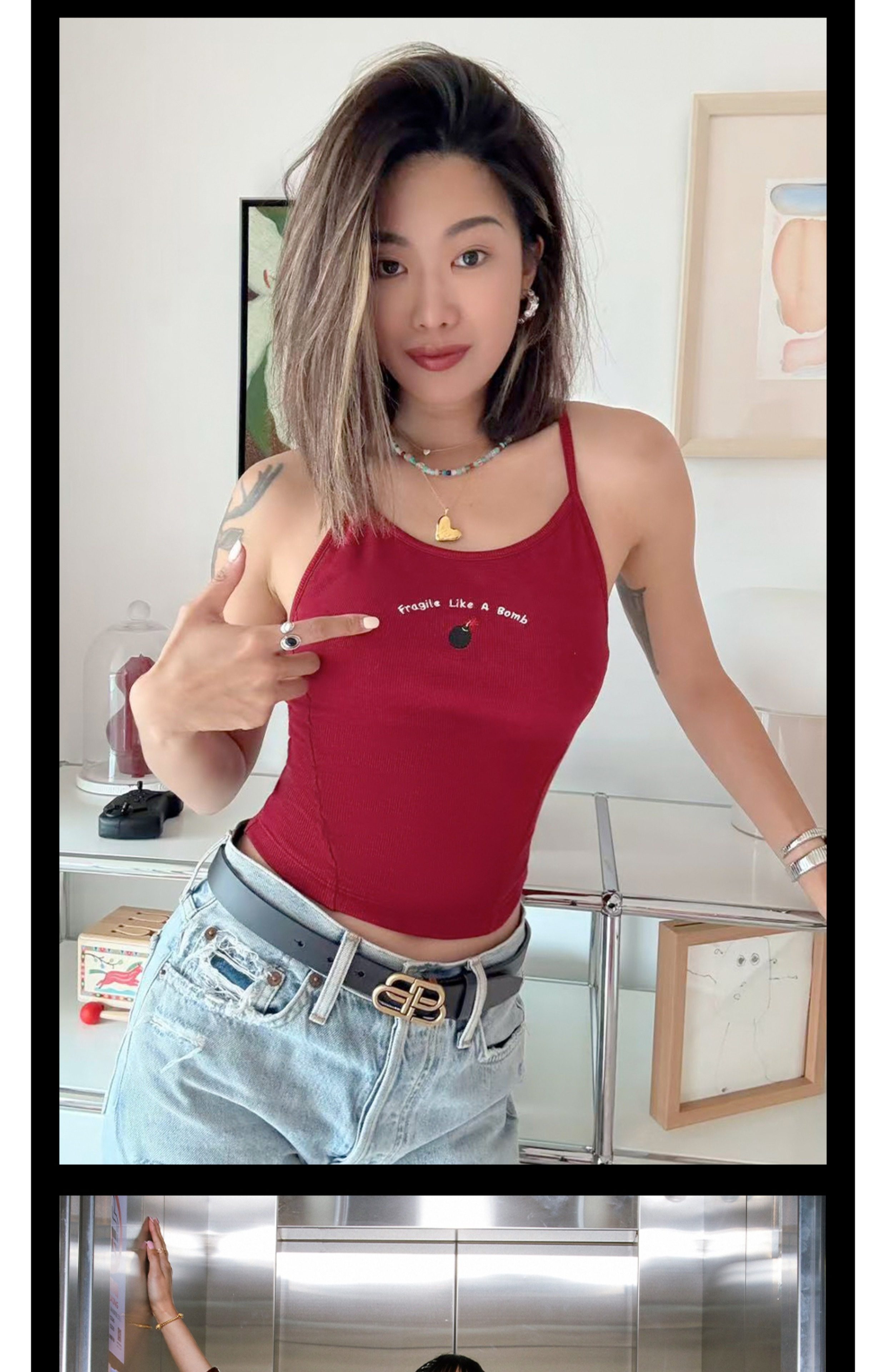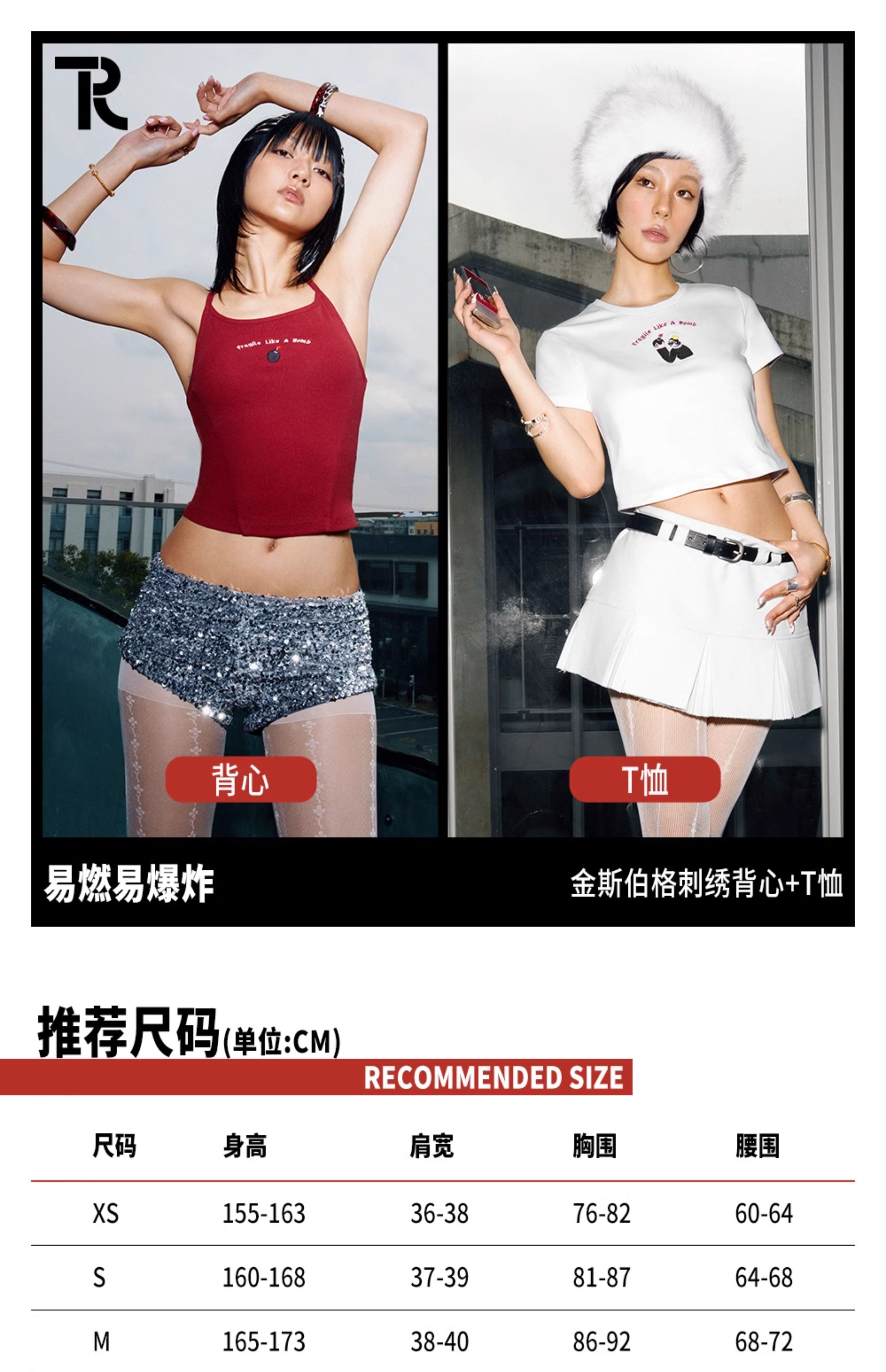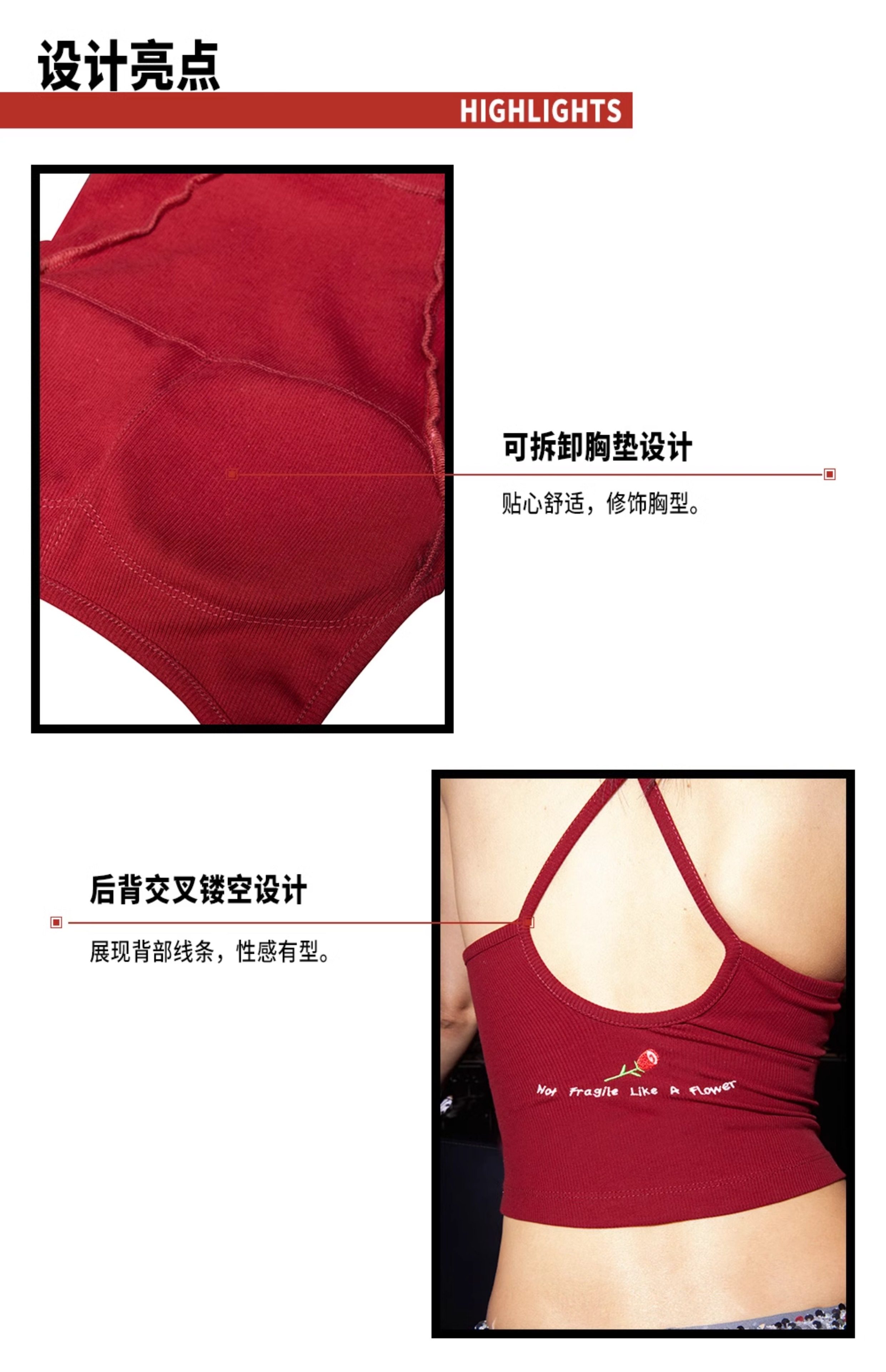 Tr She Hot Flammable and Explosive Ten Yuan Nimei White and Red Embroidered Slim Fit Backless T-Shirt with Chest Pads