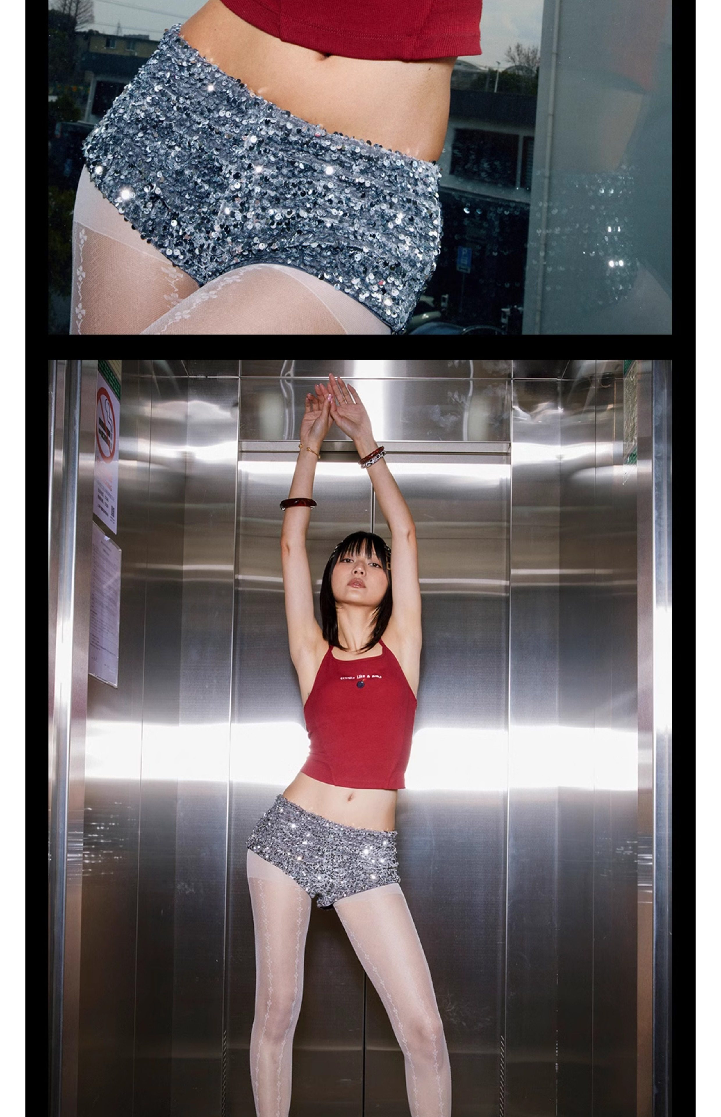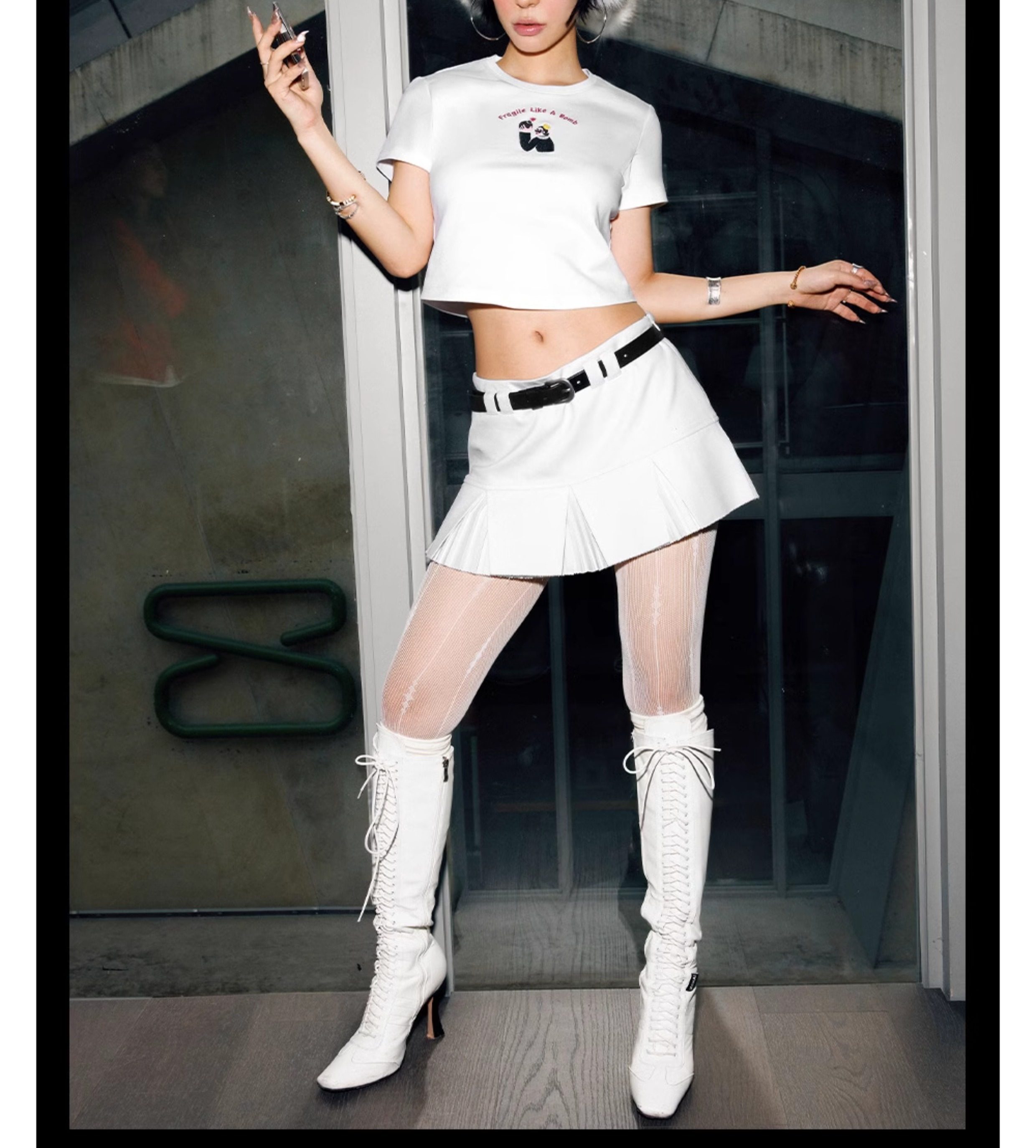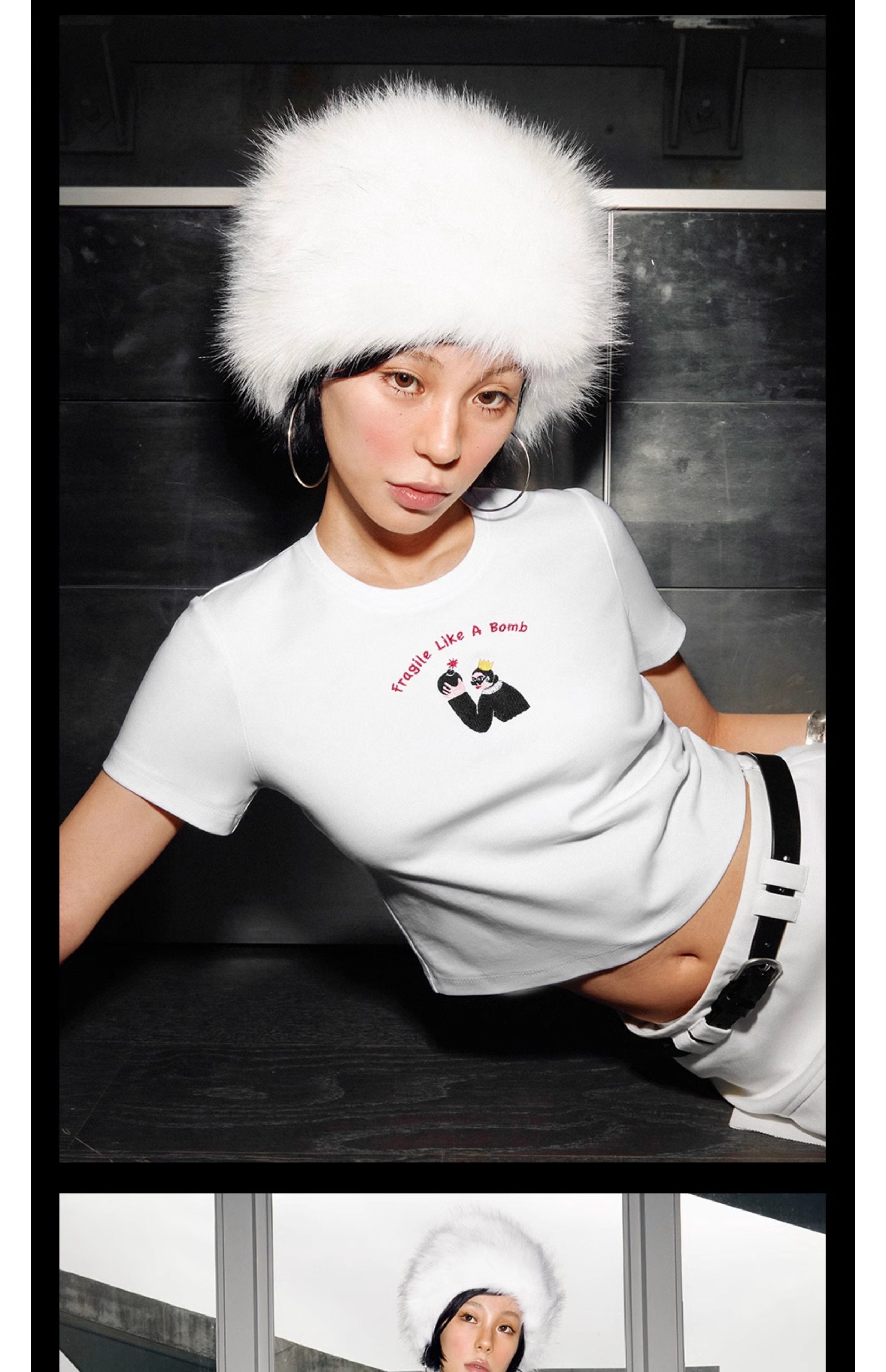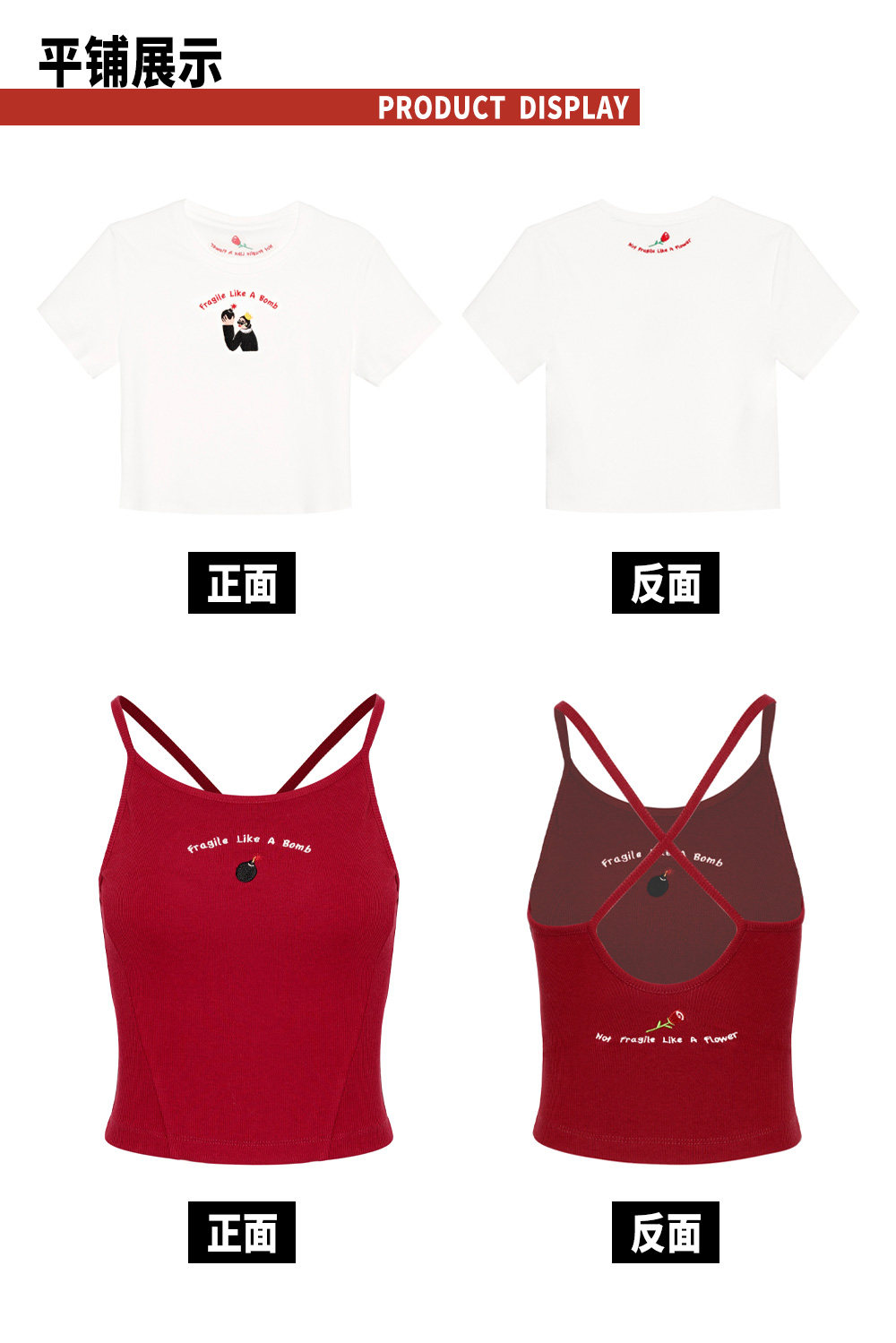 Tr She Hot Flammable and Explosive Ten Yuan Nimei White and Red Embroidered Slim Fit Backless T-Shirt with Chest Pads