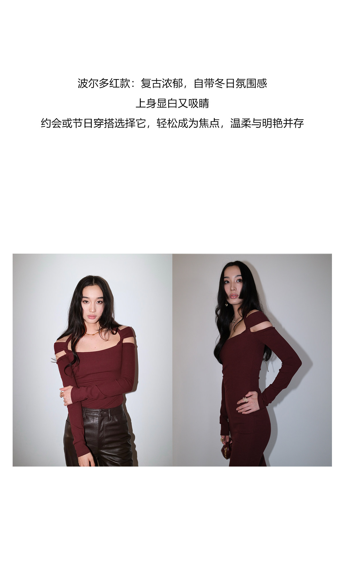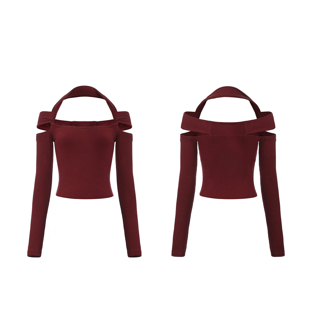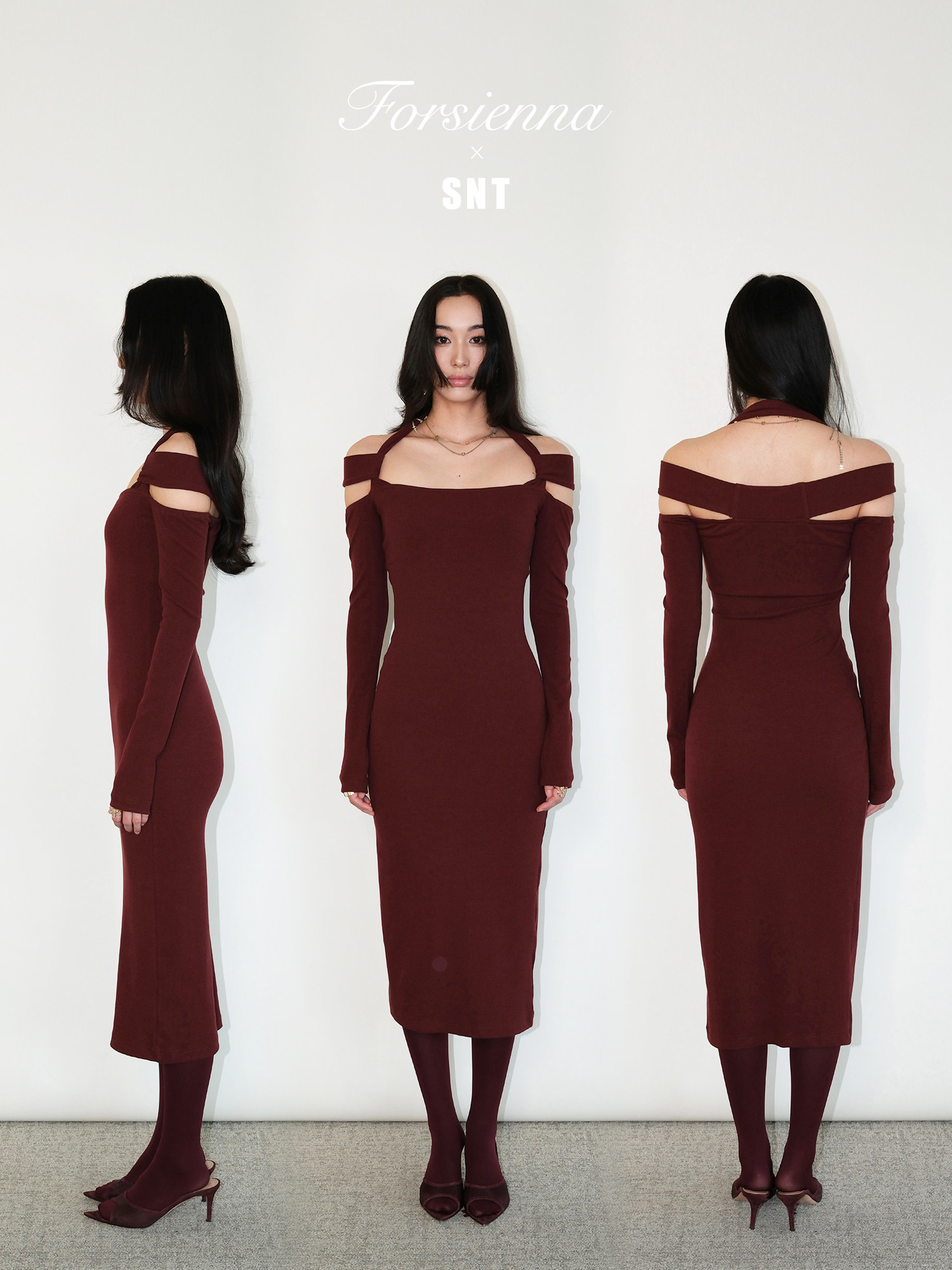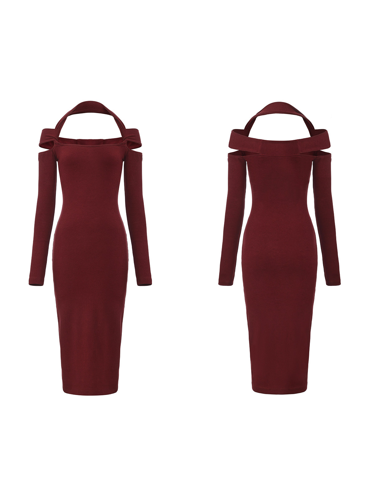 Snt【Elegant Definition】Bordeaux Red/Black Design-Inspired Halter Knit Dress