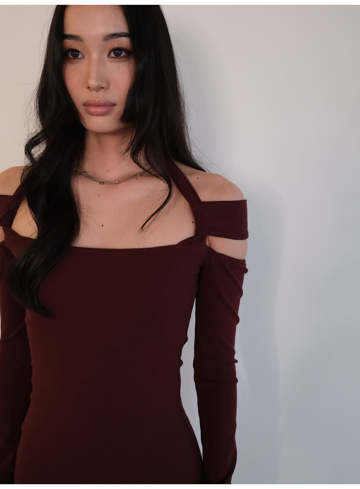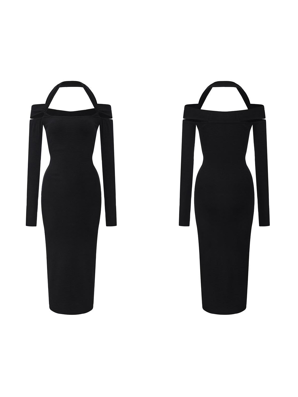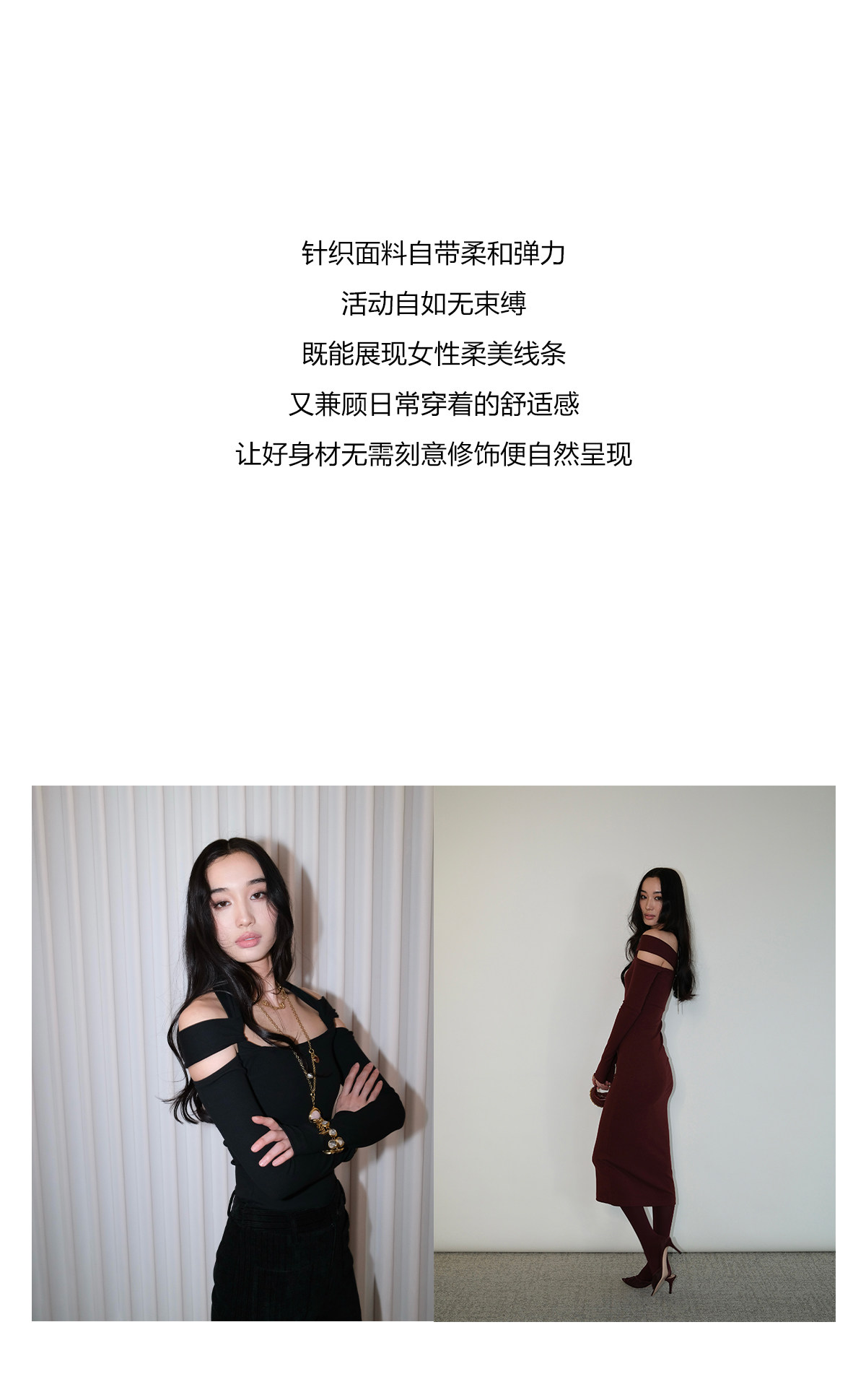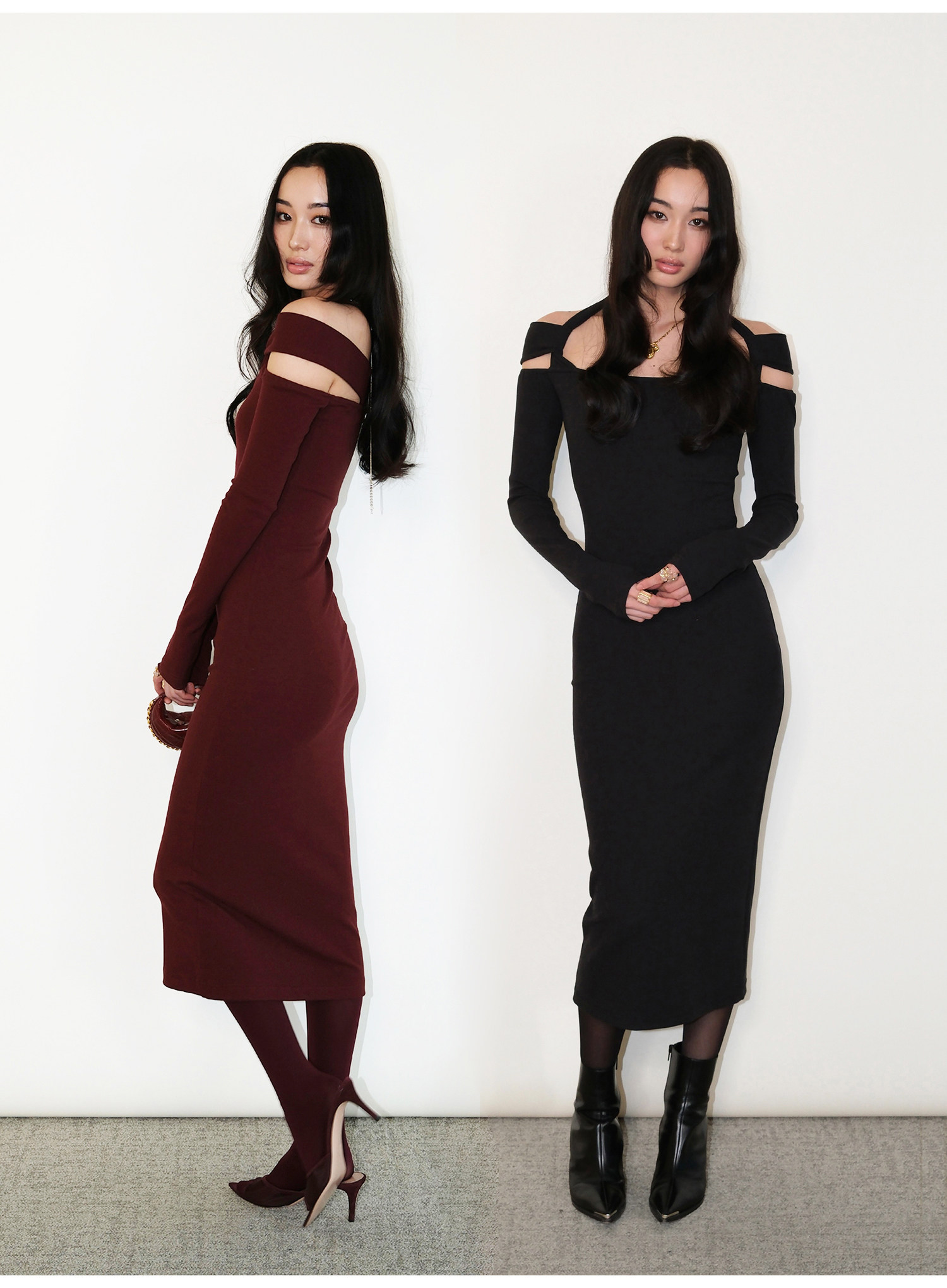 Snt【Elegant Definition】Bordeaux Red/Black Design-Inspired Halter Knit Dress