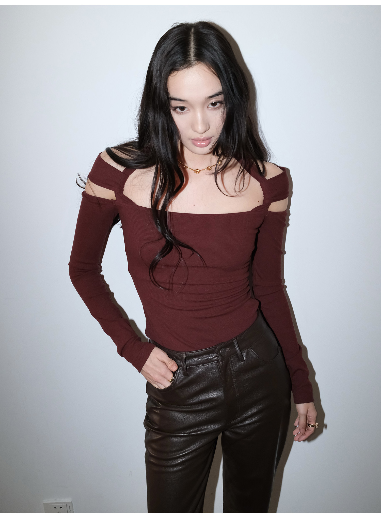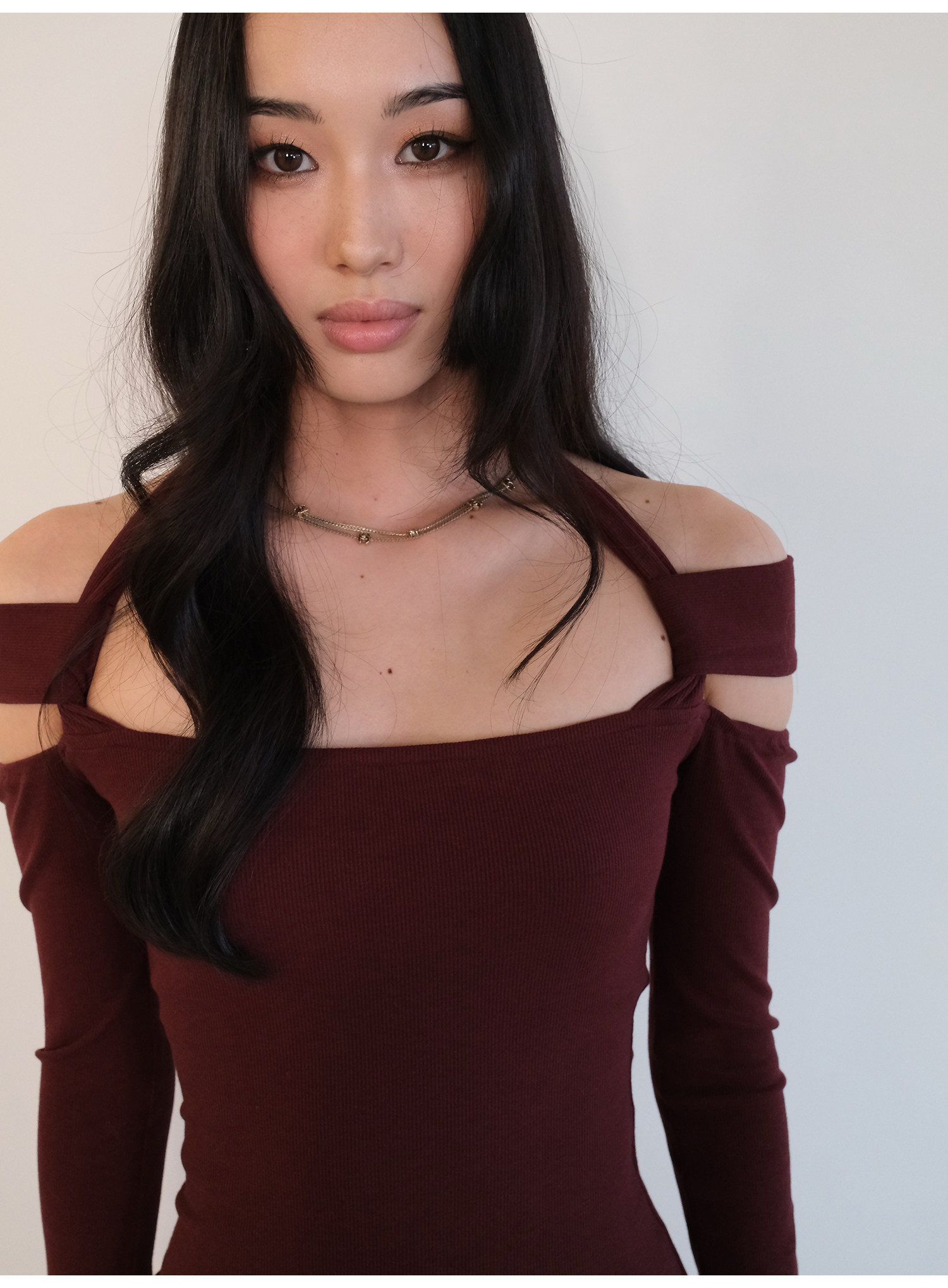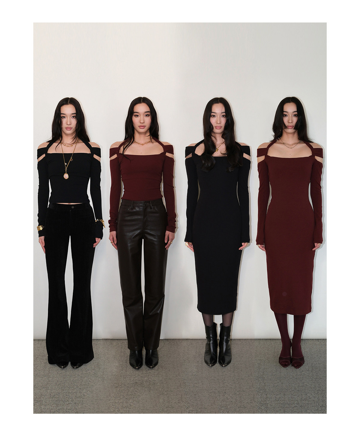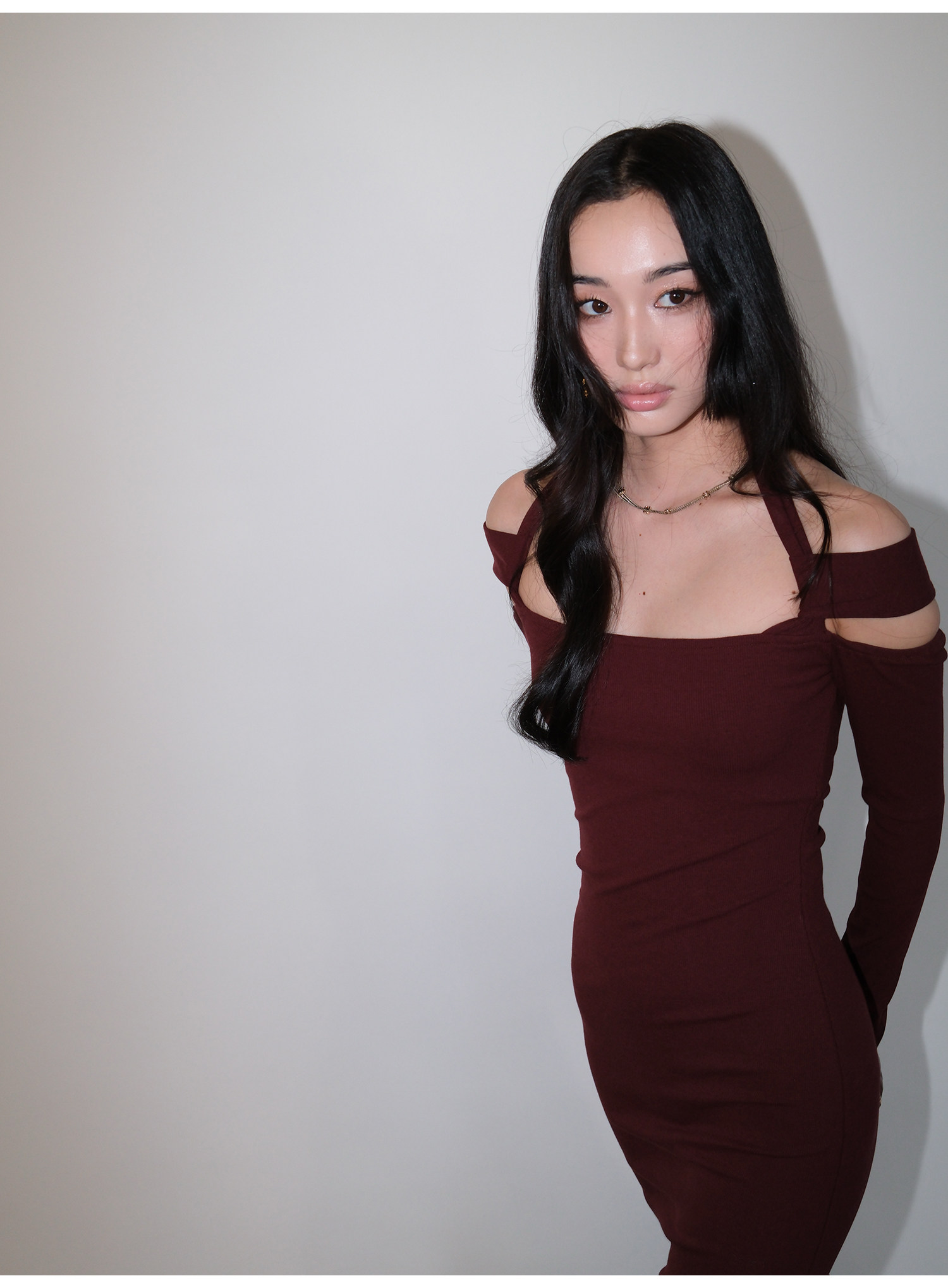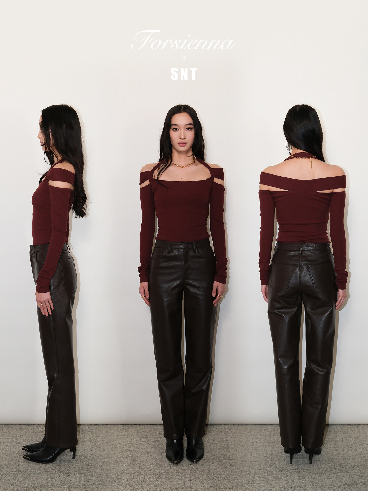 Snt【Elegant Definition】Bordeaux Red/Black Design-Inspired Halter Knit Dress