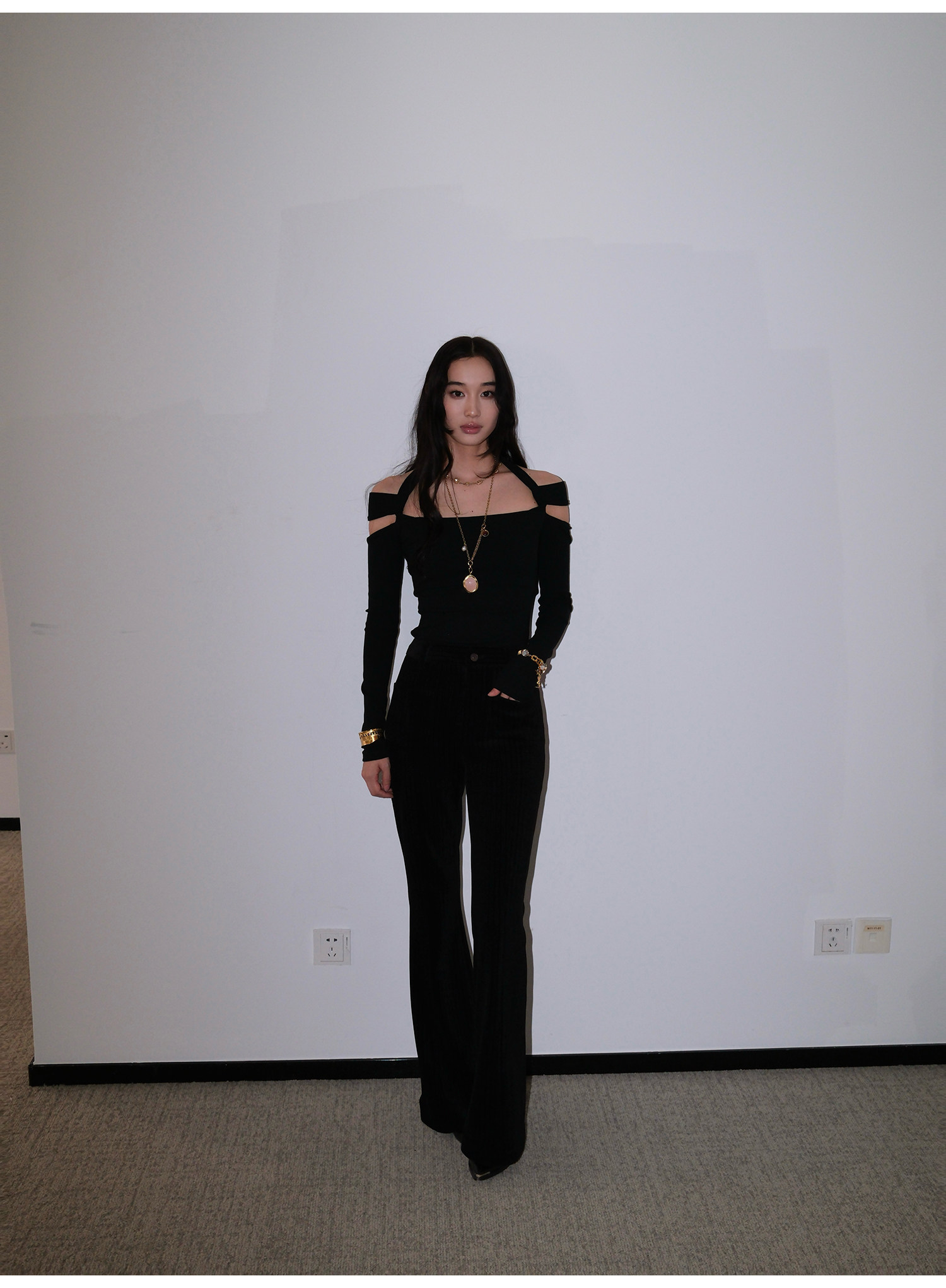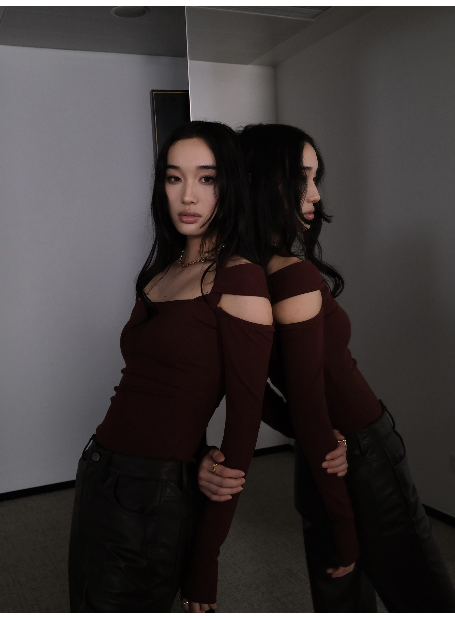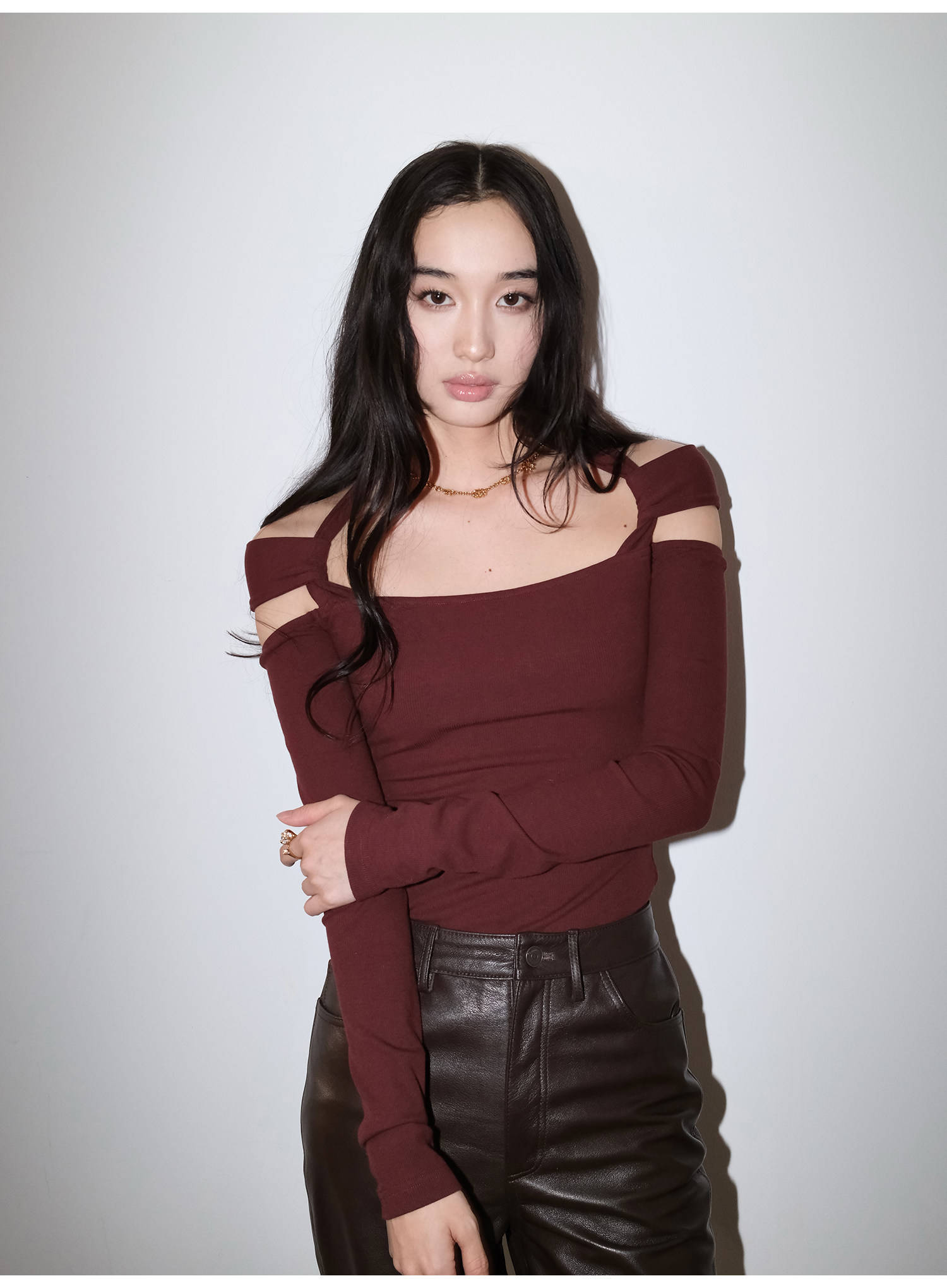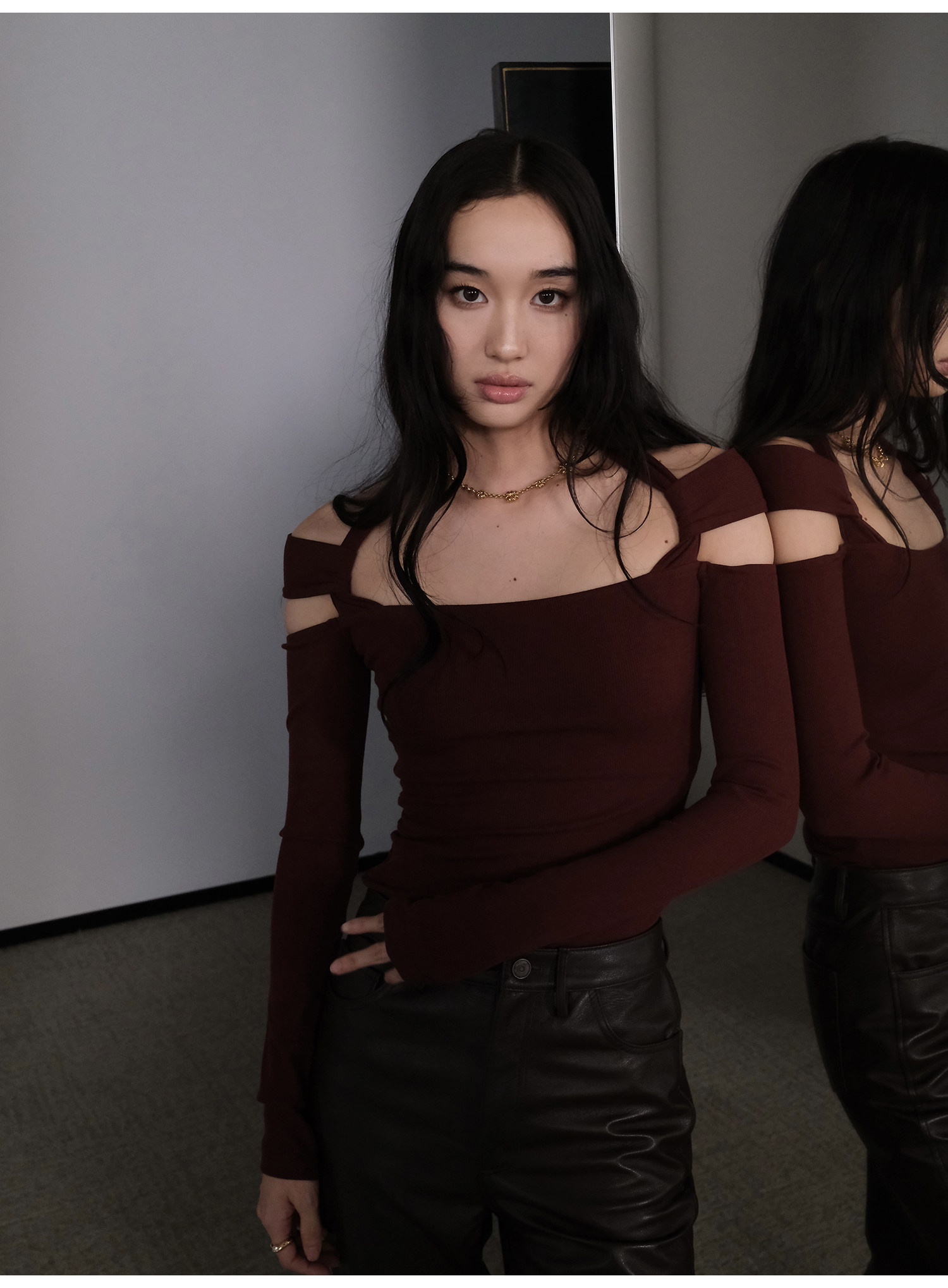 Snt【Elegant Definition】Bordeaux Red/Black Design-Inspired Halter Knit Dress