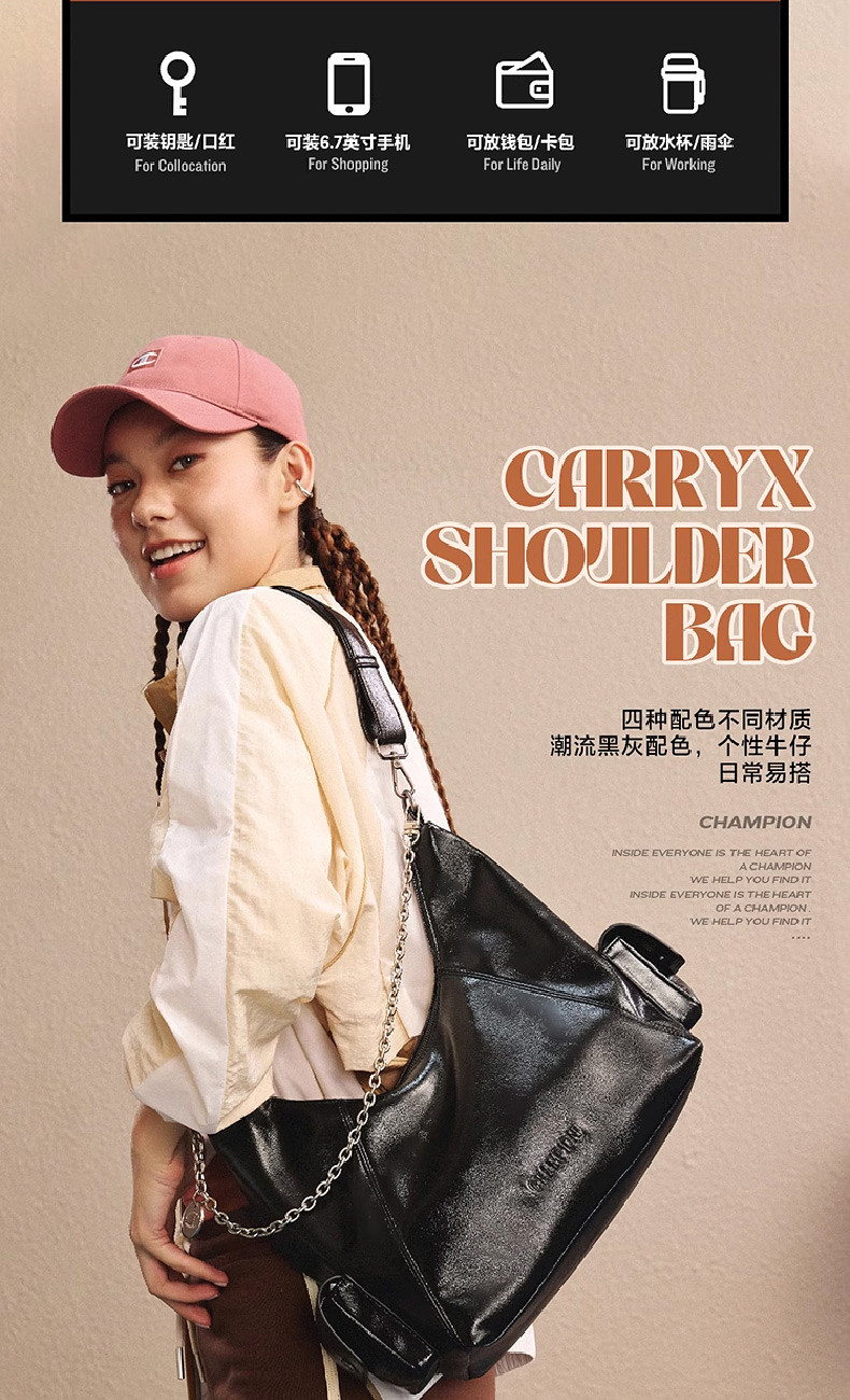 Champion New Shoulder Bag for Women and Men, Couple Crossbody Motorcycle Bag, Casual Fashion Retro Trend