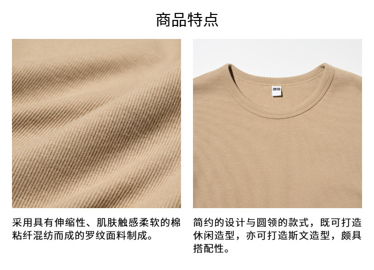 Uniqlo Women's Soft Ribbed Crew Neck T-Shirt Long Sleeve Solid Color Basic Style 474400 479590 470124