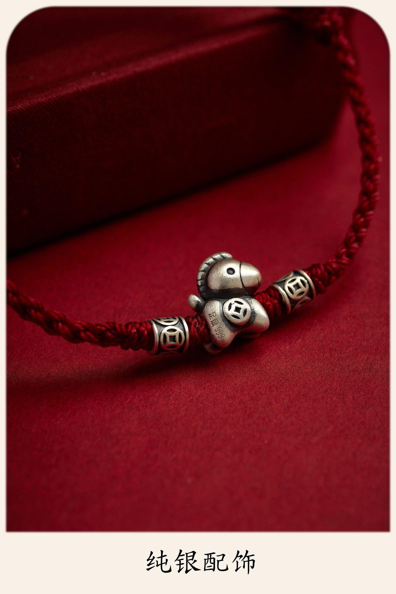 999 Pure Silver Bracelet for Immediate Wealth, Red String Bracelet for Those Born in the Year of the Horse, Attracts Wealth, Safety, and Good Luck, Chinese Style Red String, Vintage