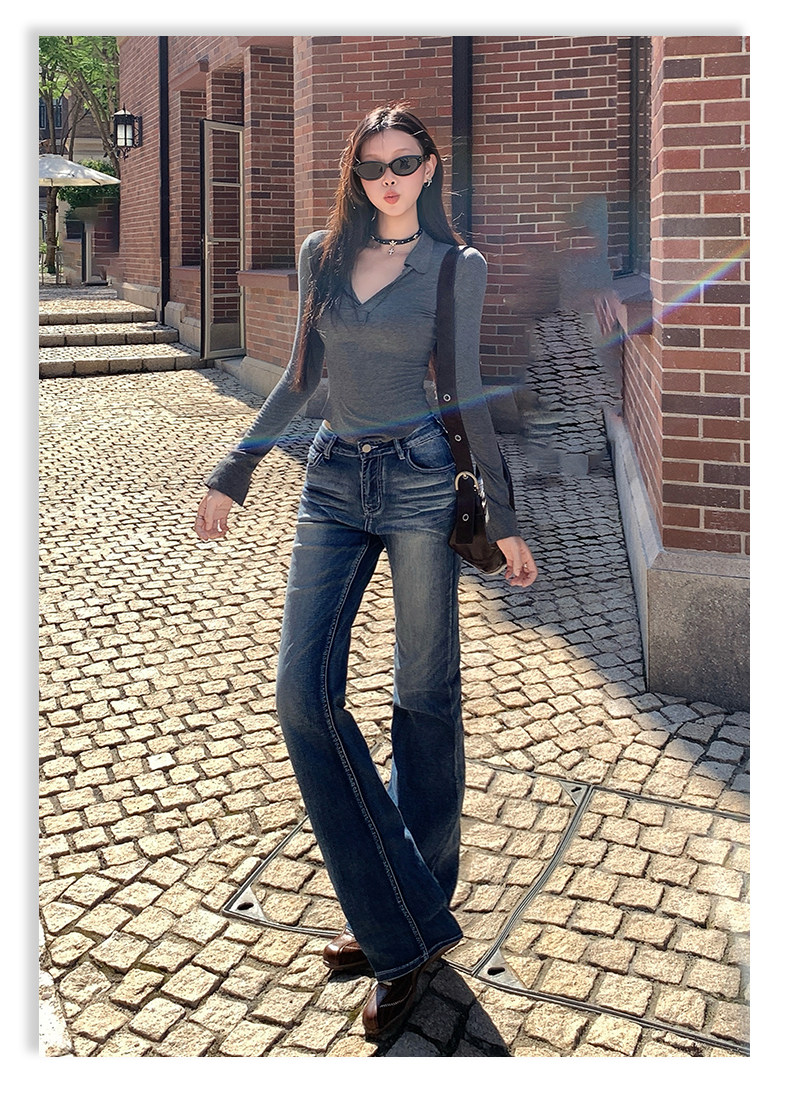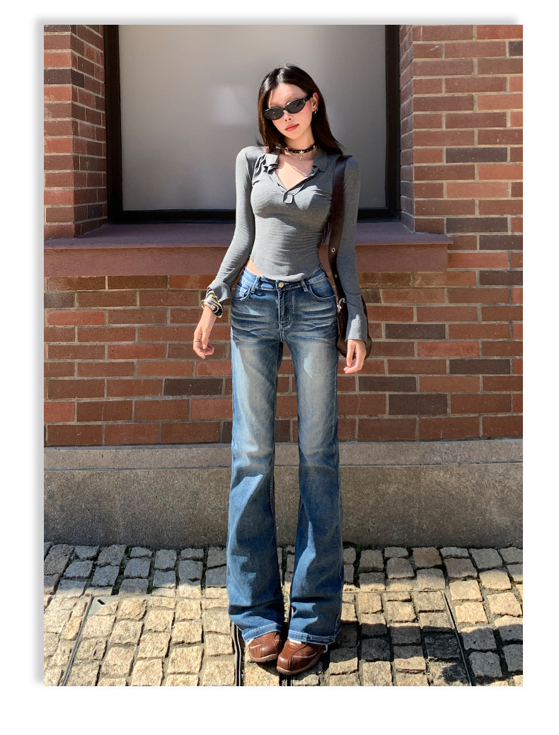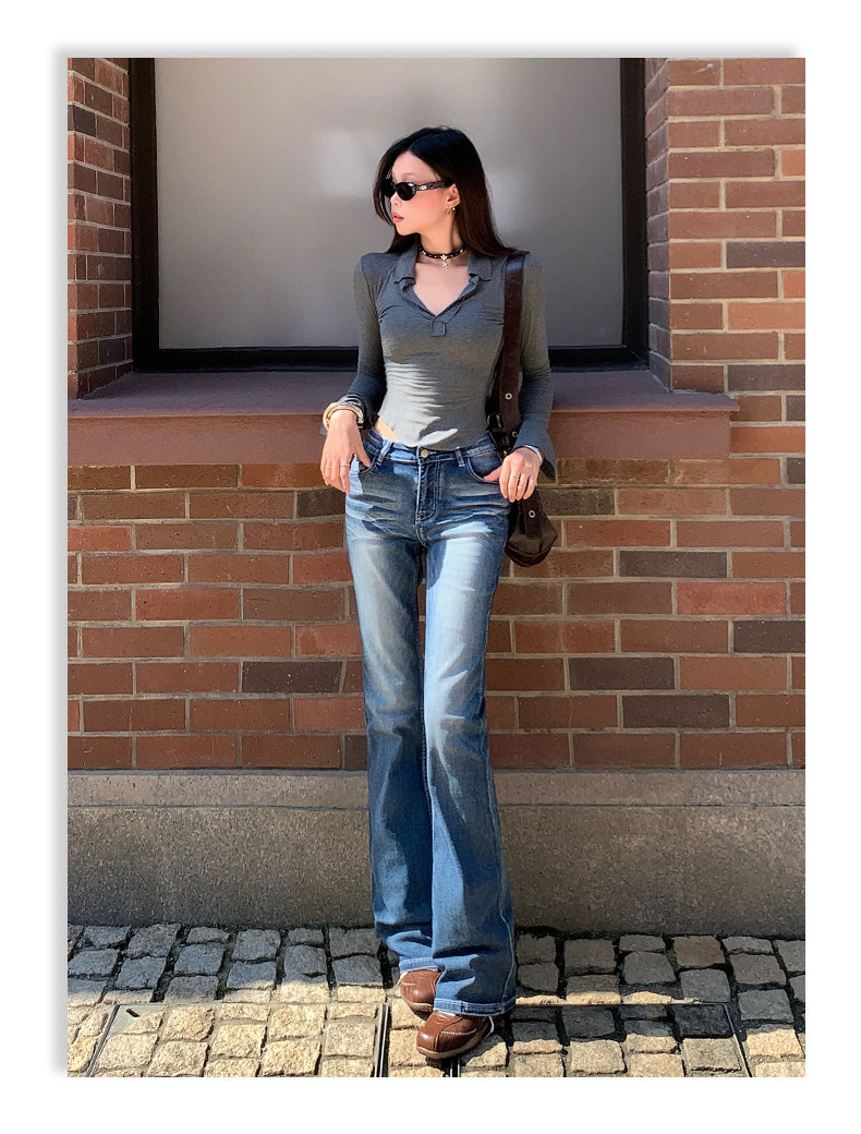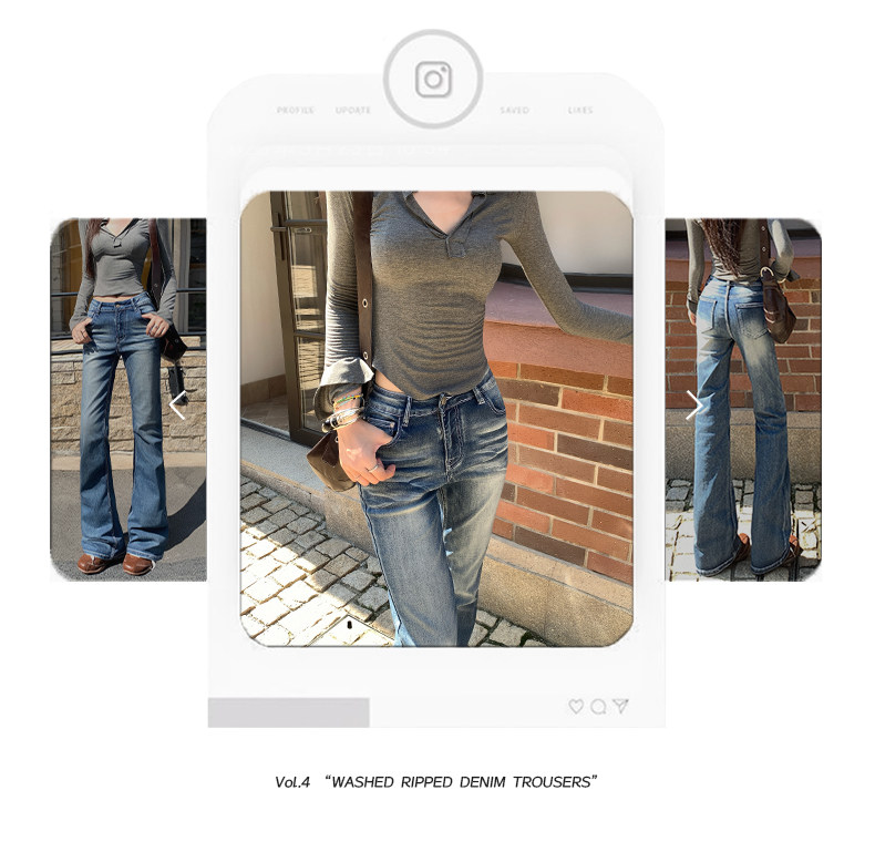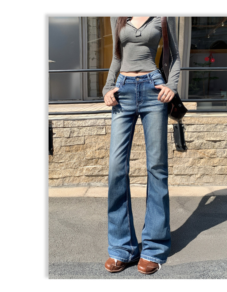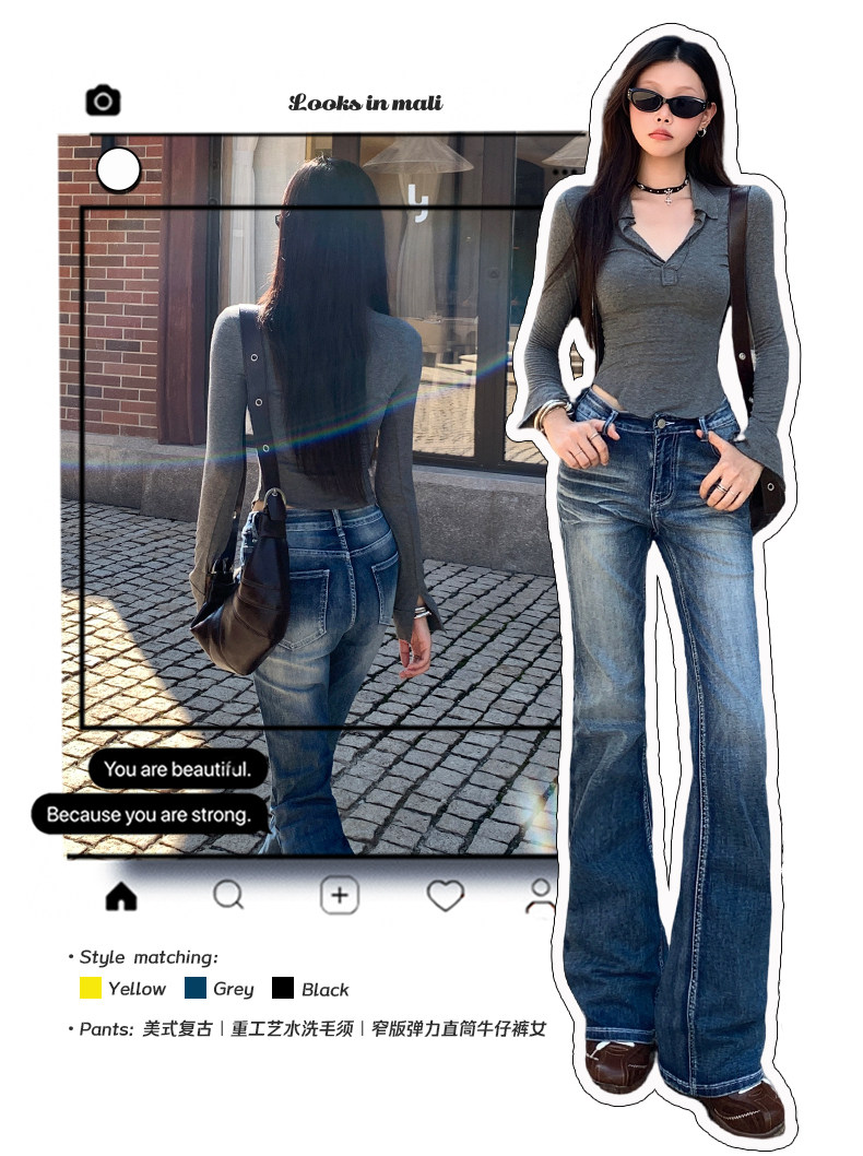 Ningge American Retro Heavy-Duty Washed Straight-Leg Jeans for Women, Autumn 2025 New Style, Distressed Stretch Low-Waist Pants