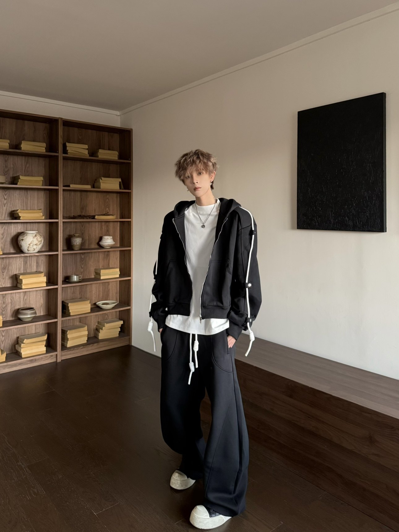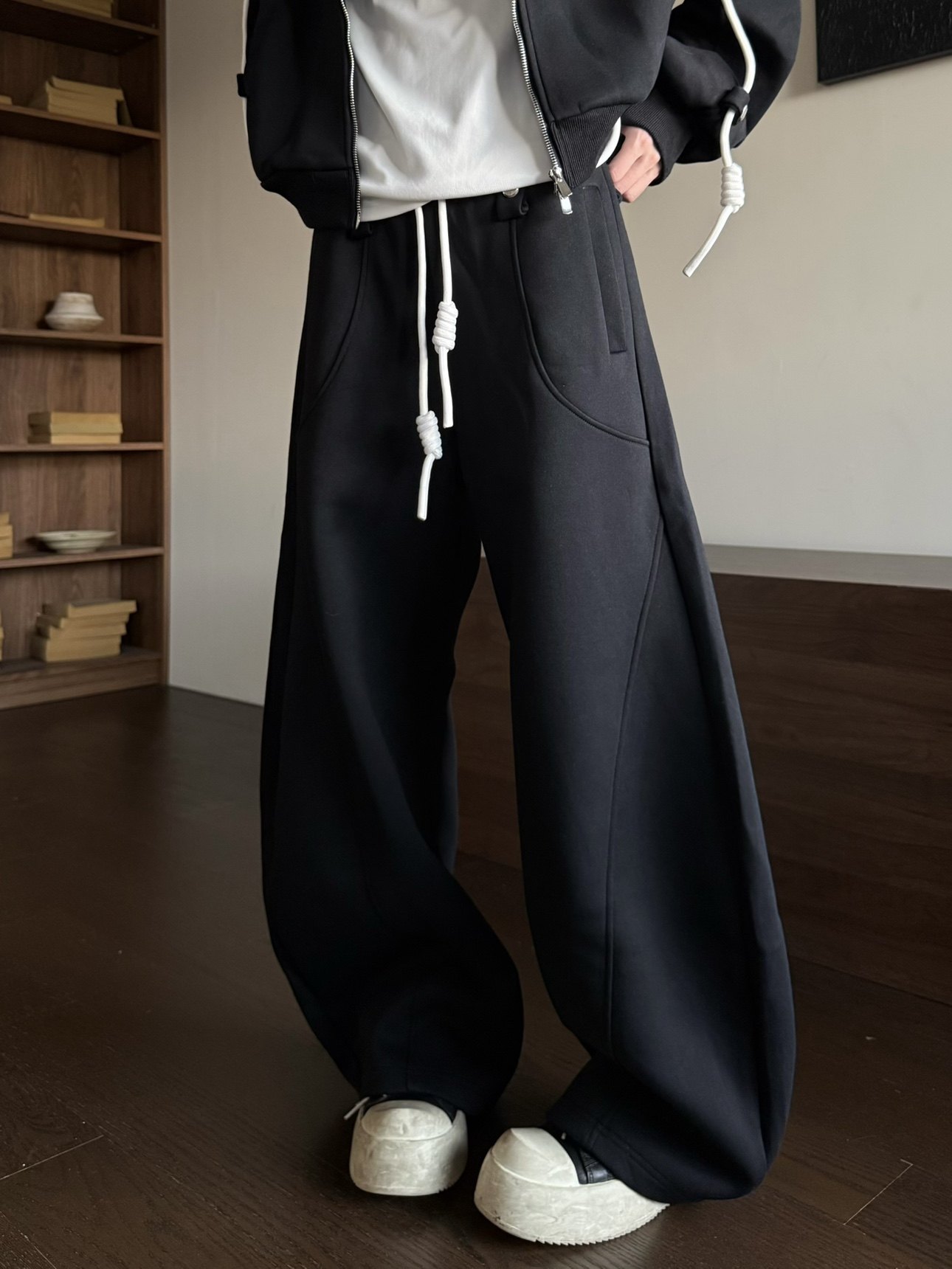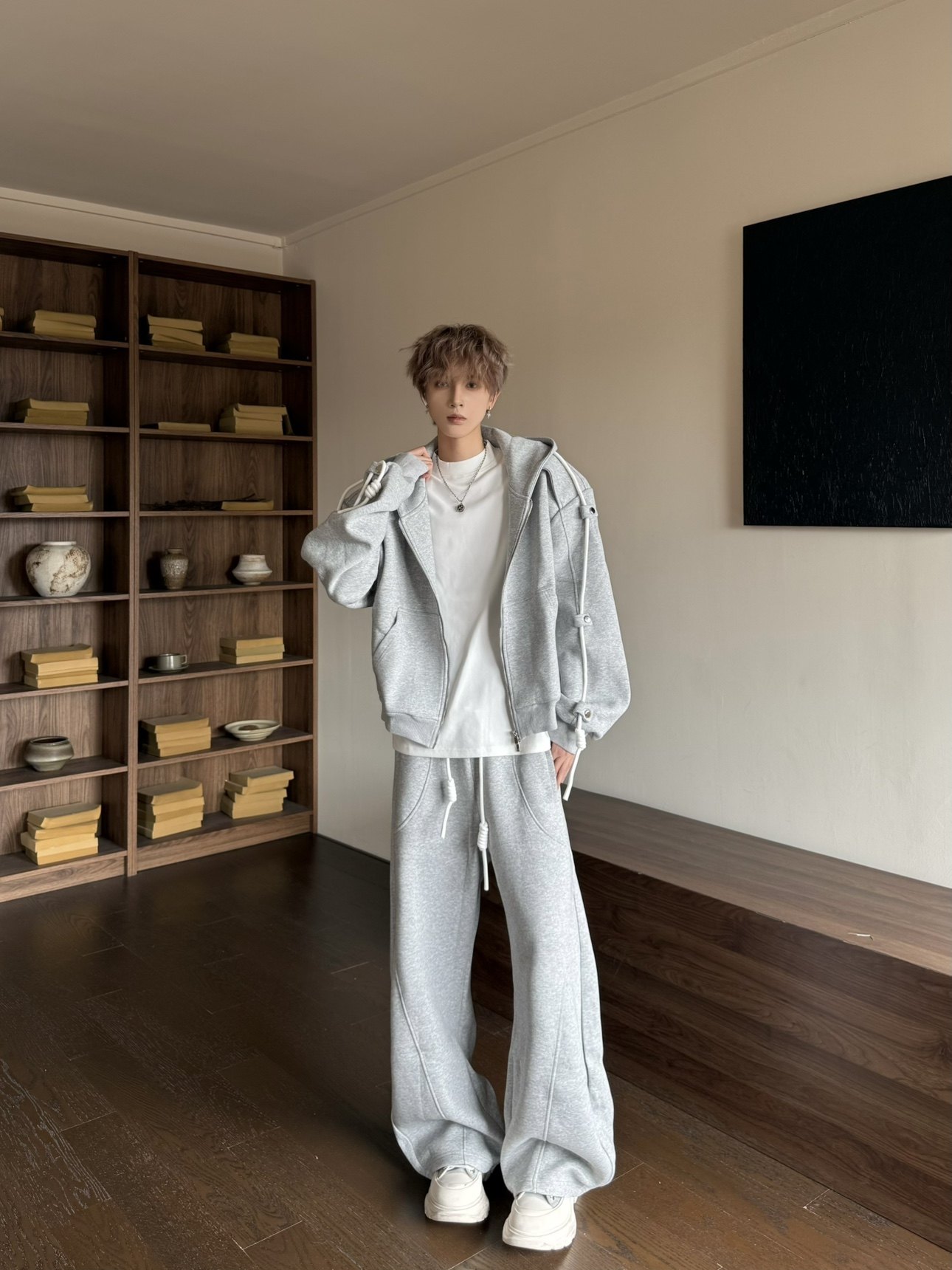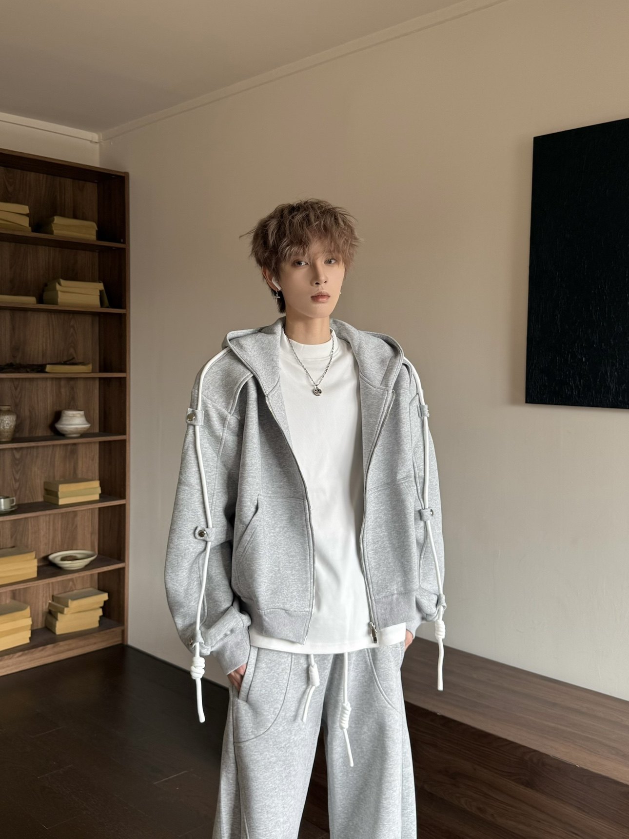 Another Day X Hooded Drawstring Sweatshirt Jacket and Casual Pants Set, Loose and Versatile Sporty Two-Piece Set