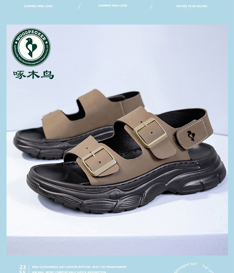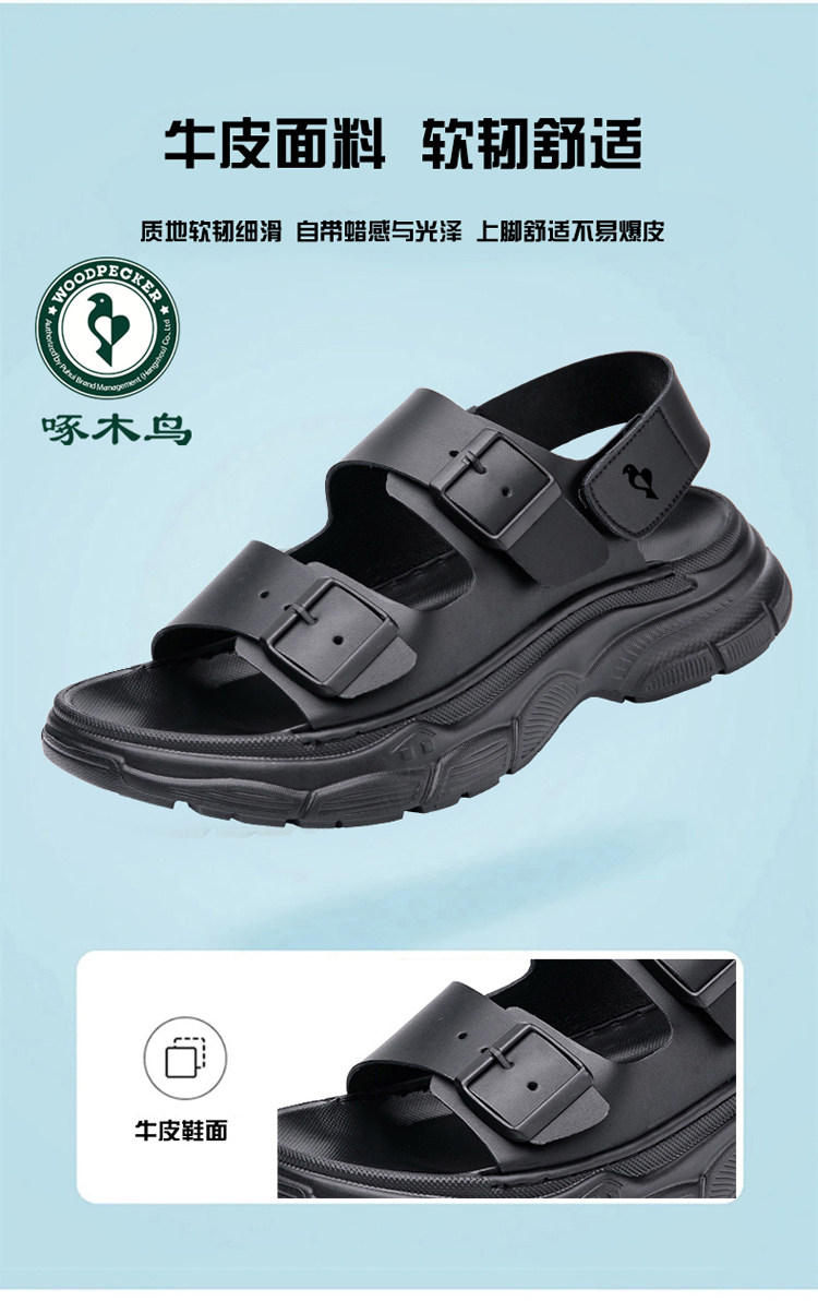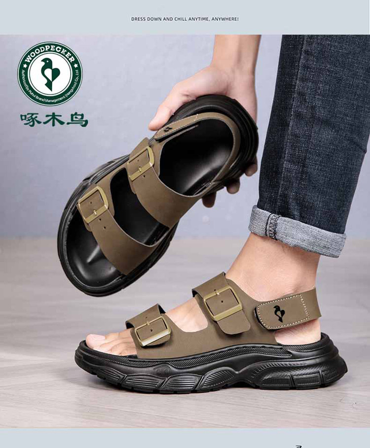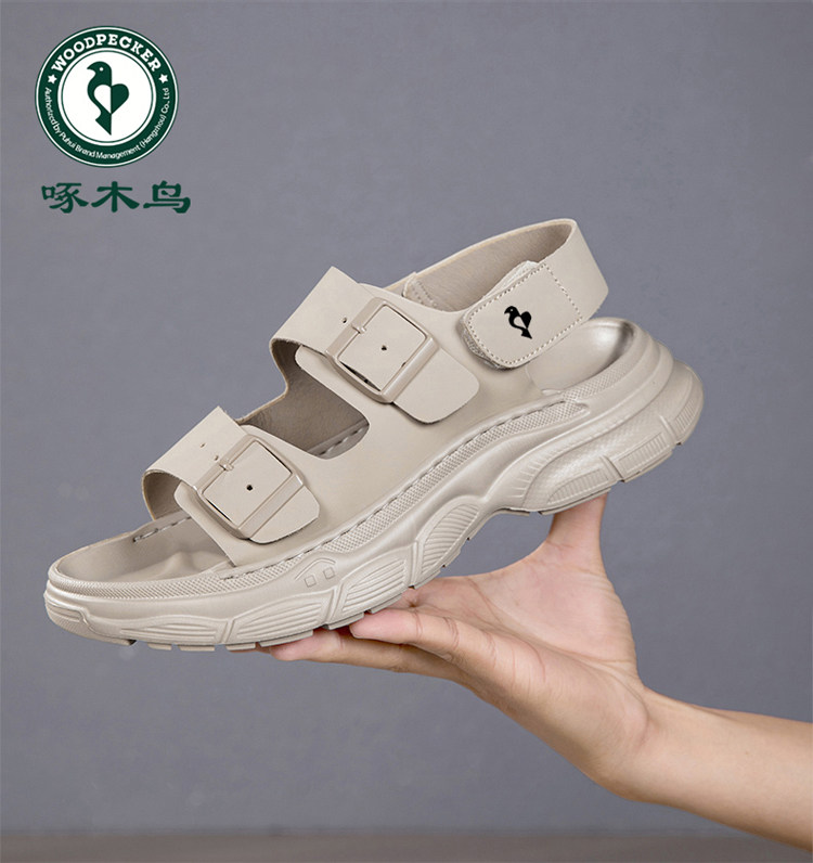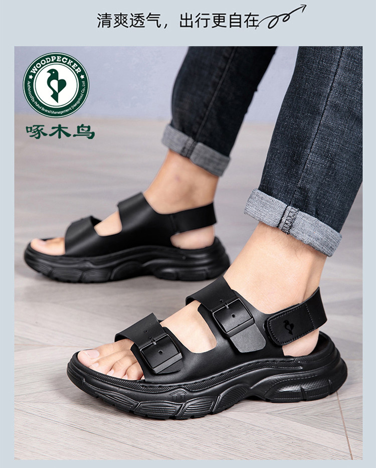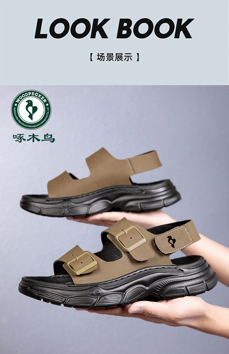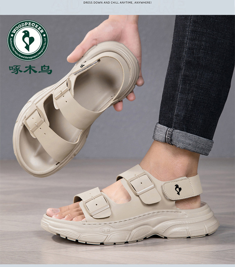 Woodpecker Men's Shoes 2025 Summer New Genuine Leather Breathable Sandals Thick-Soled Beach Shoes Casual Versatile Sandals for Men