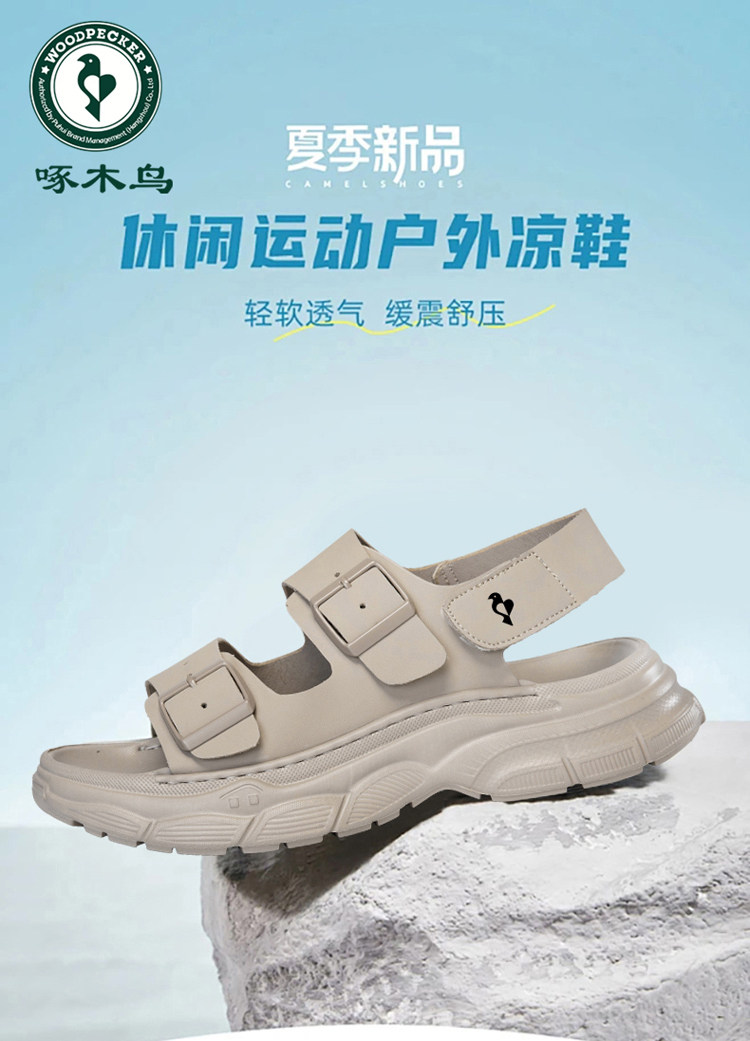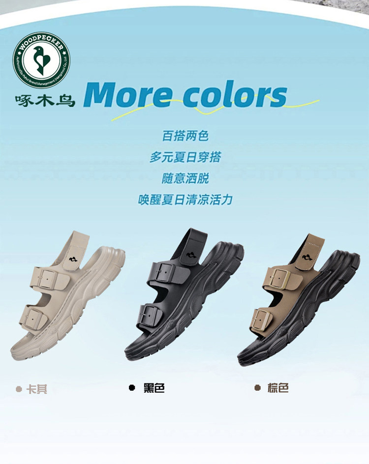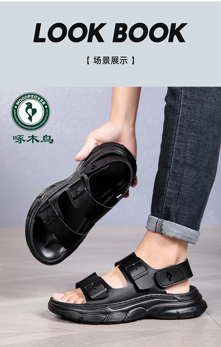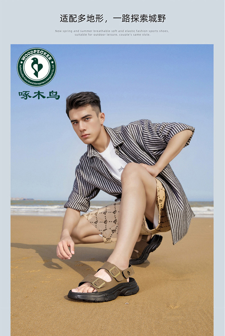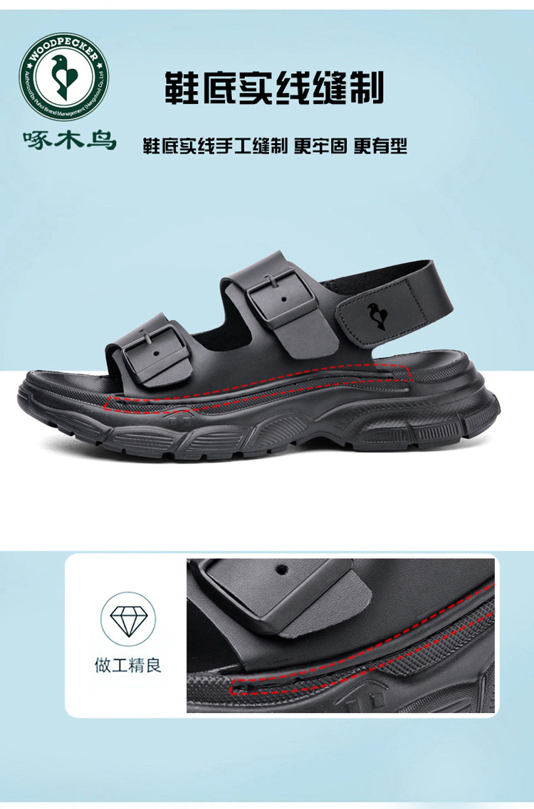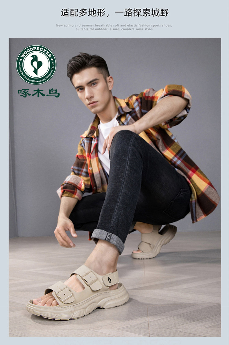 Woodpecker Men's Shoes 2025 Summer New Genuine Leather Breathable Sandals Thick-Soled Beach Shoes Casual Versatile Sandals for Men