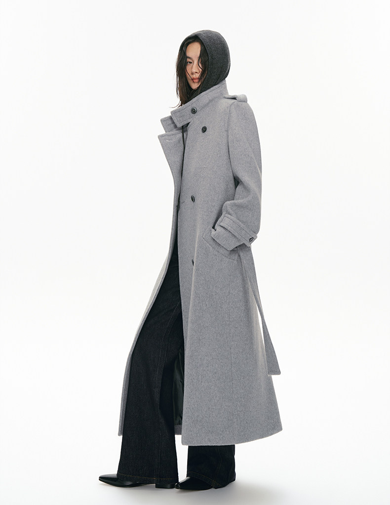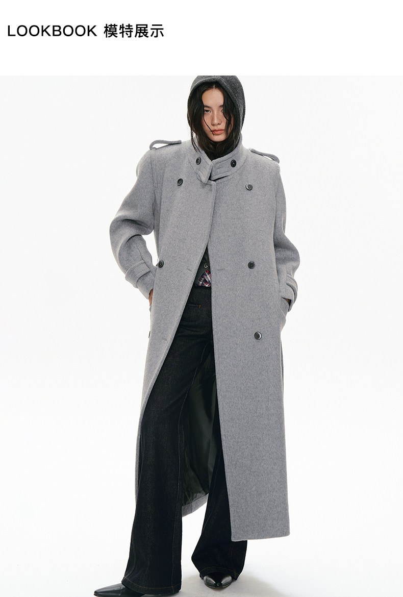 Fn Clean Explain "Full Aura Mode" 100% Merino Wool Regular Shoulder Silhouette Elegant Long Coat