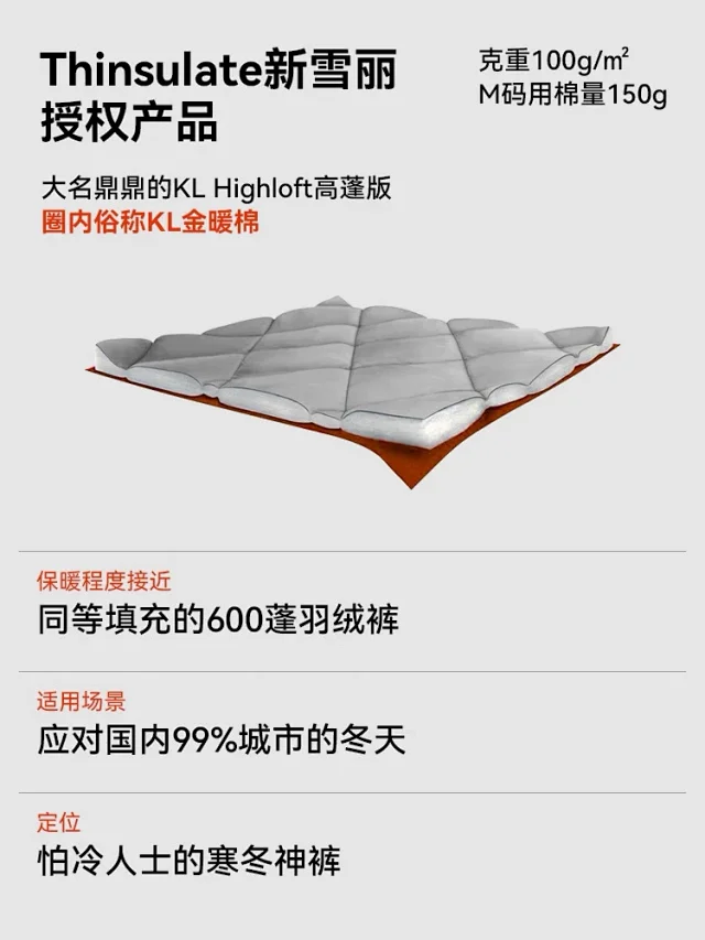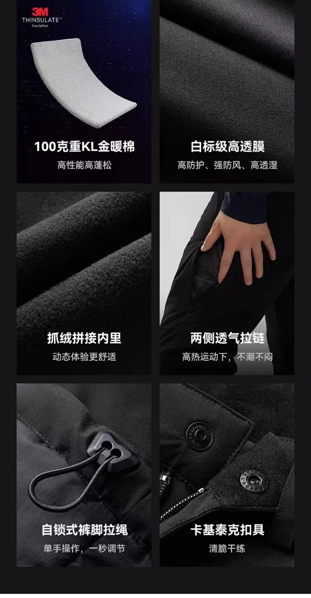 Thinsulate Kl Gold Warm Cotton 100g Thermal Pants Men's Winter Outdoor Windproof Warm Commuting Trousers