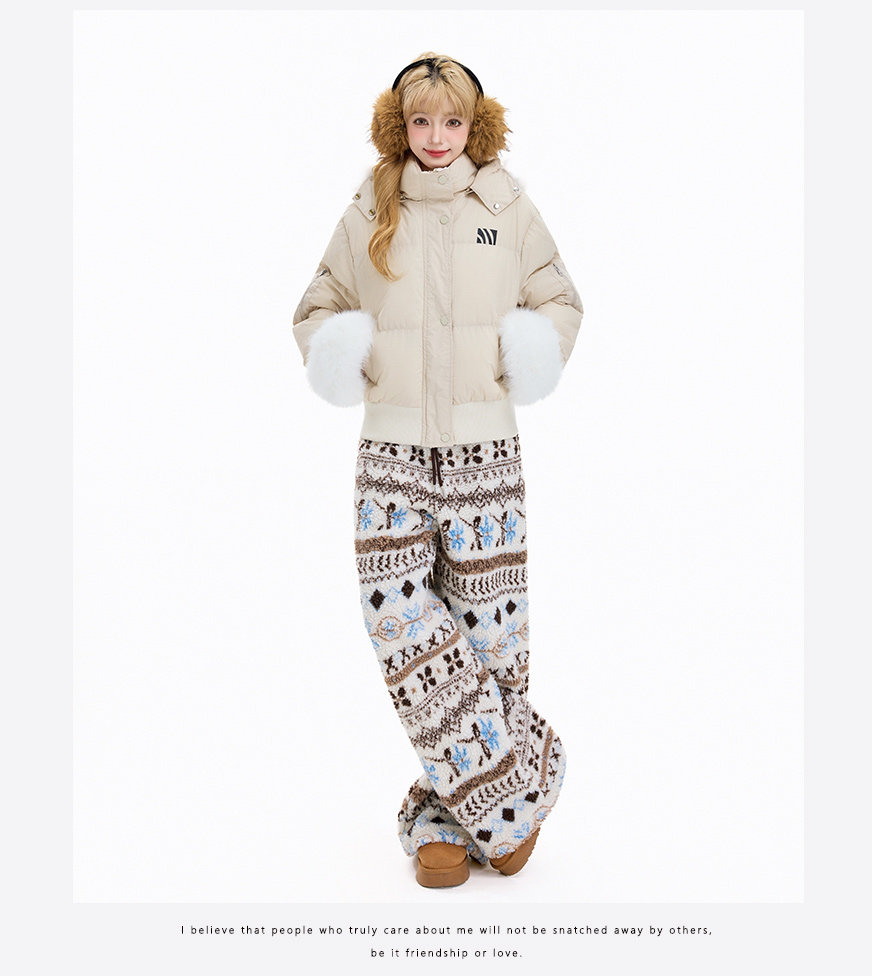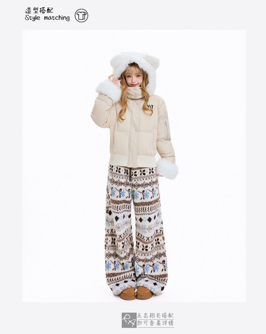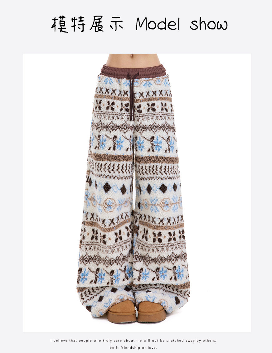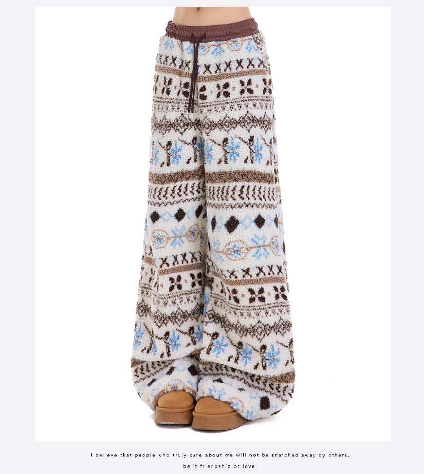 Rayohopp Retro Fair Isle Lamb Wool Wide-Leg Cotton Pants for Women, Winter Thickened Warm Loose Casual Long Pants Trendy