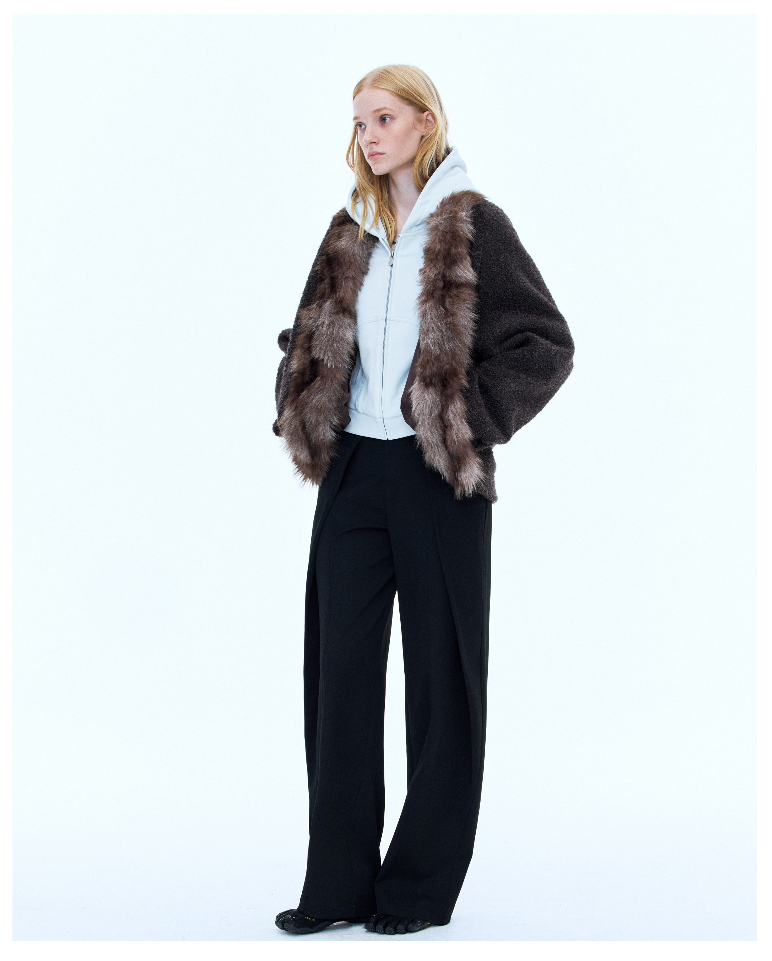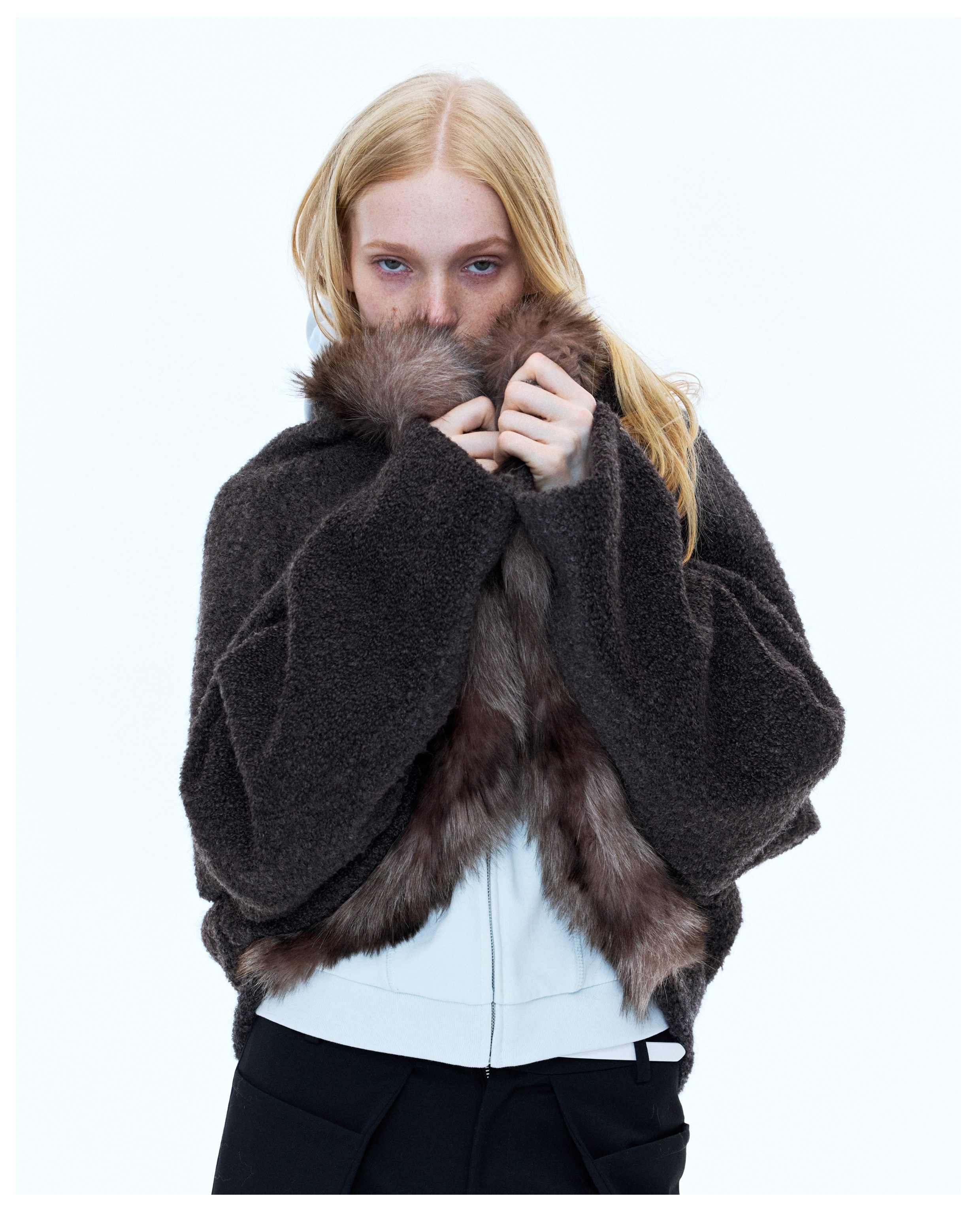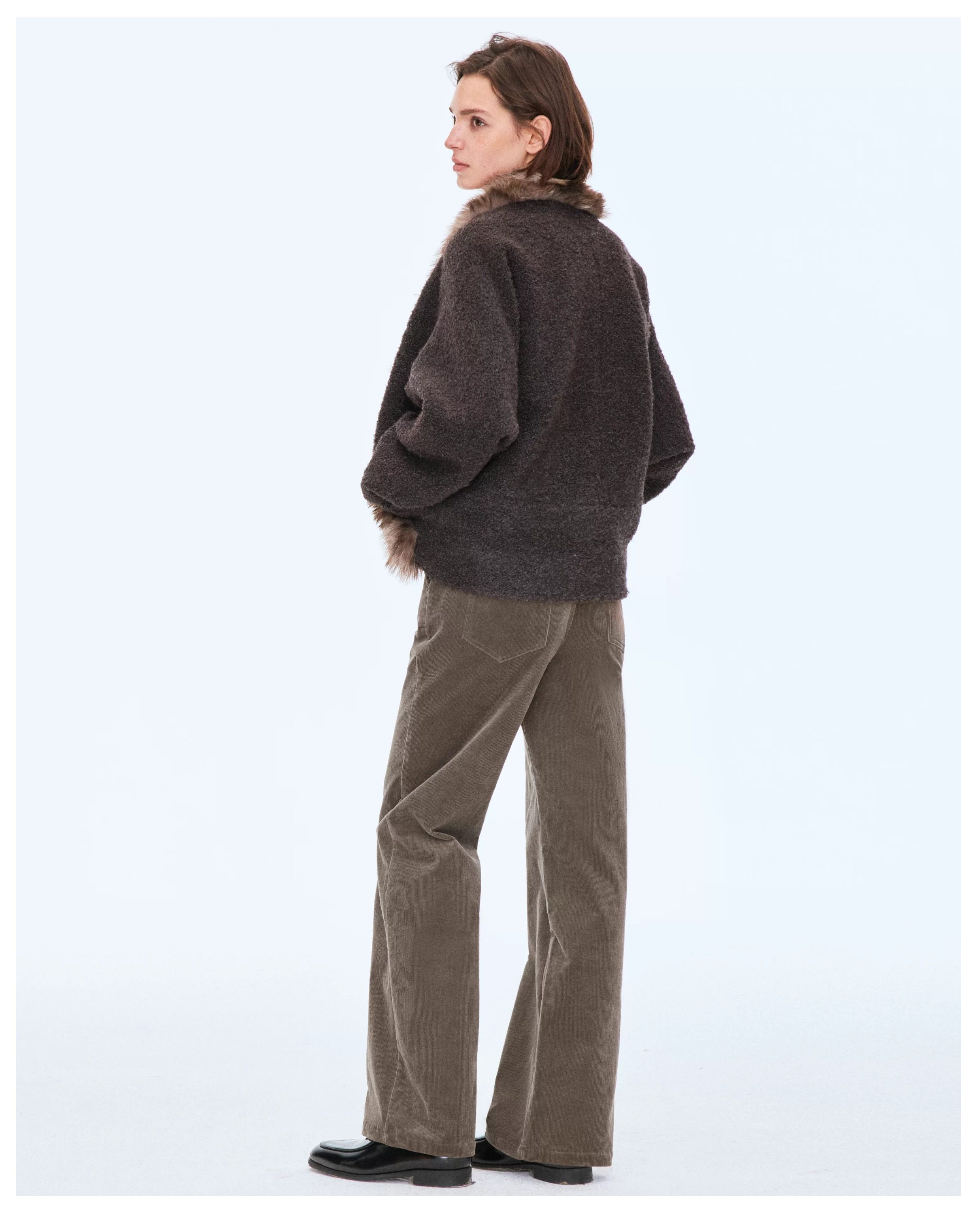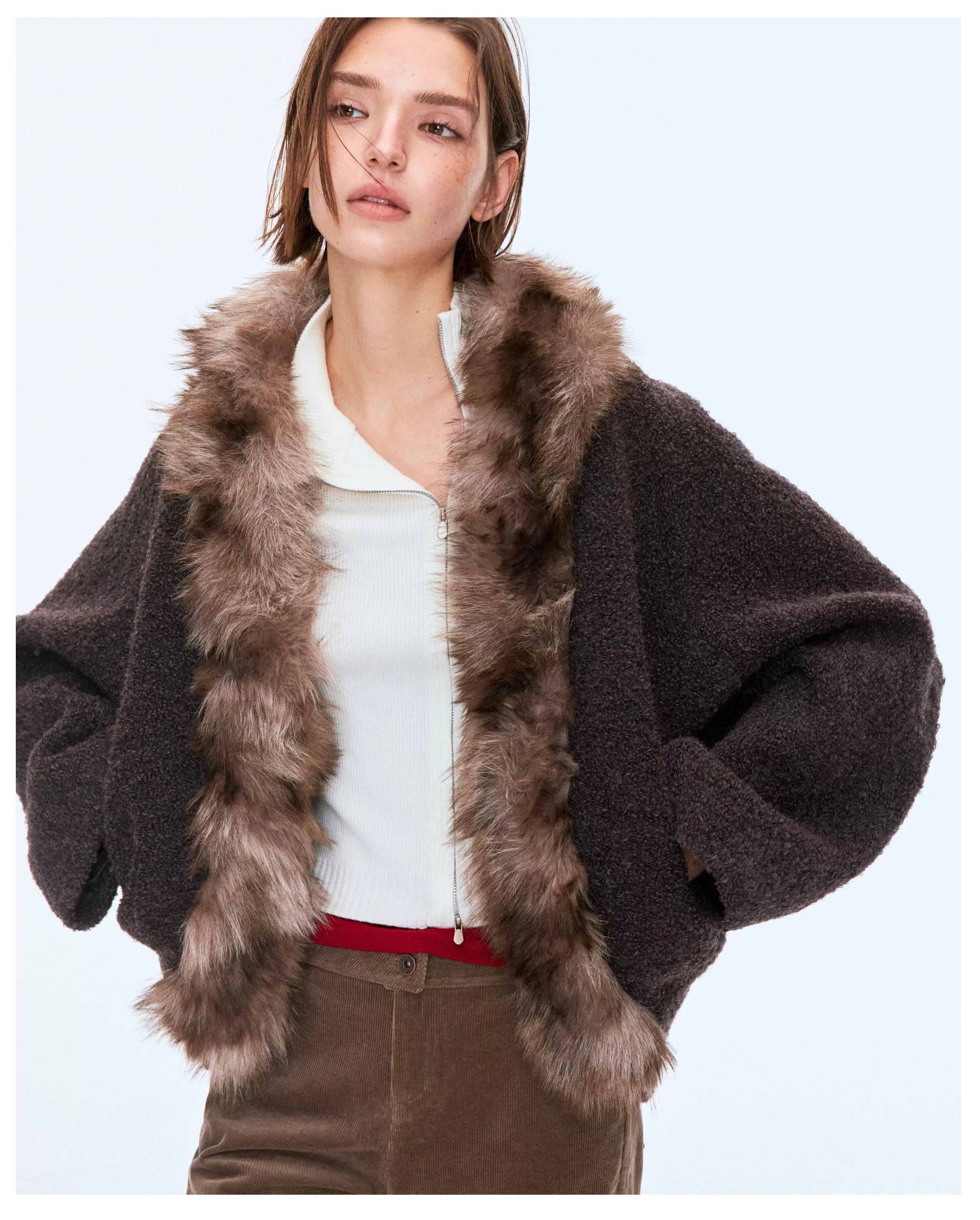 Runway Ticket Zhou Jieqiong's Same Style Retro Batwing Sleeve Woolen Coat with Fur Collar Winter Top
