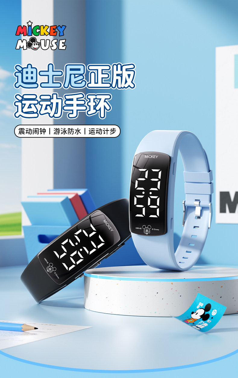 Disney Student Sports Bracelet Watch Men's Junior High School Special Only Watch Time Swimming Waterproof Smart Digital Watch