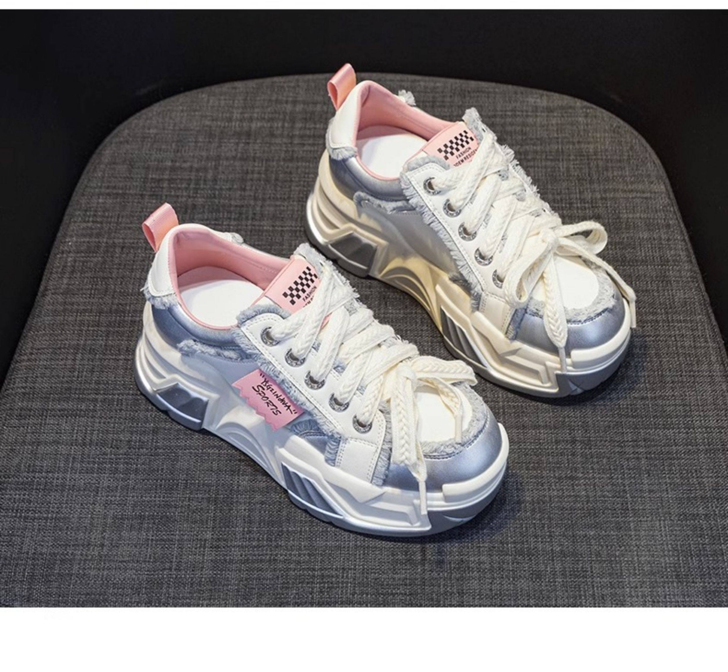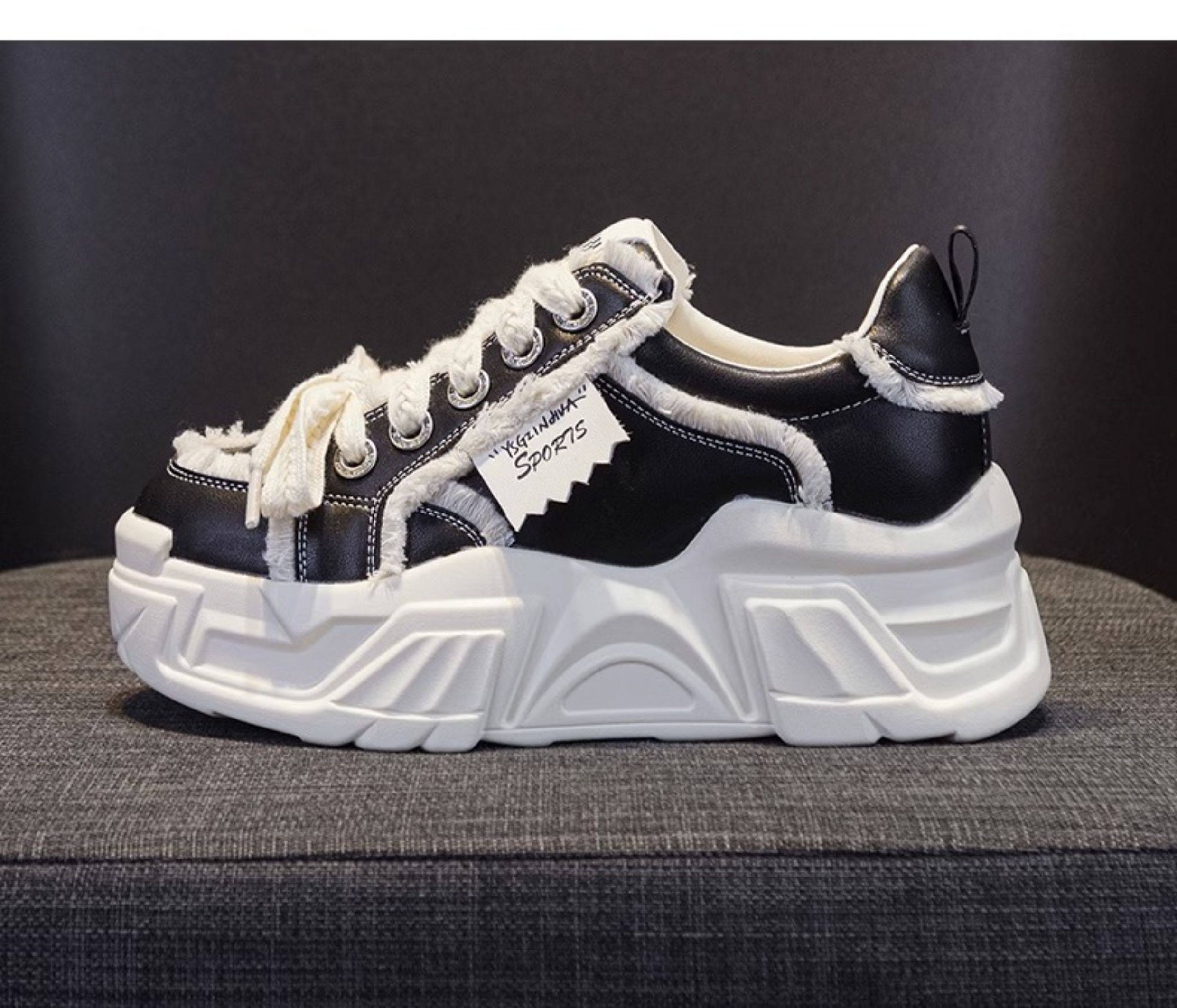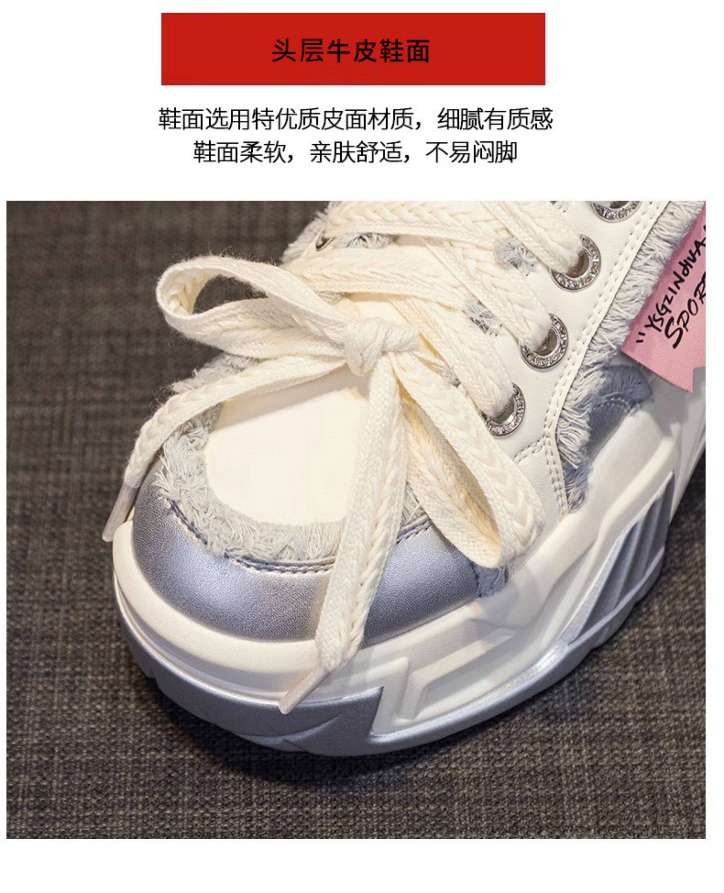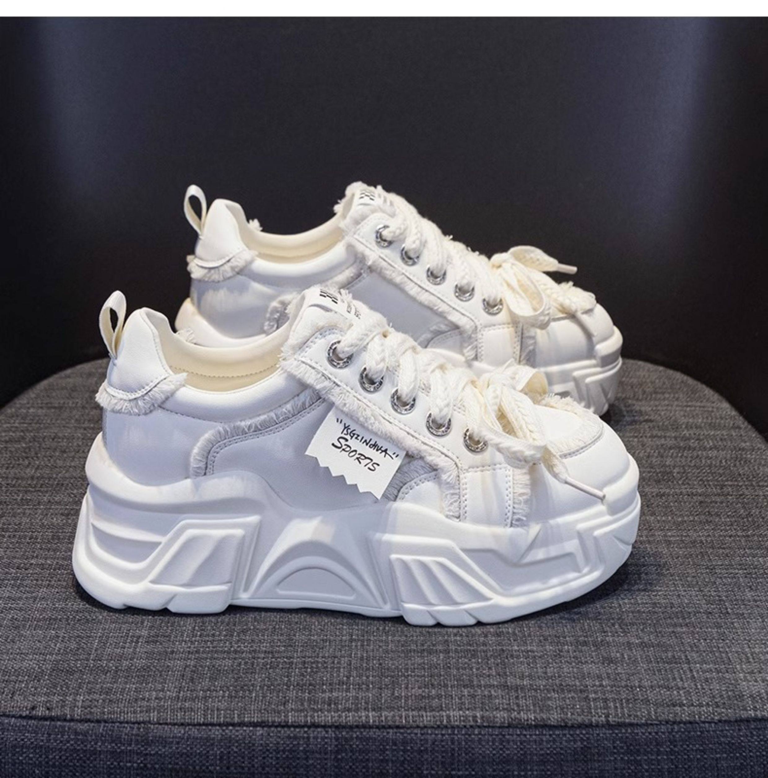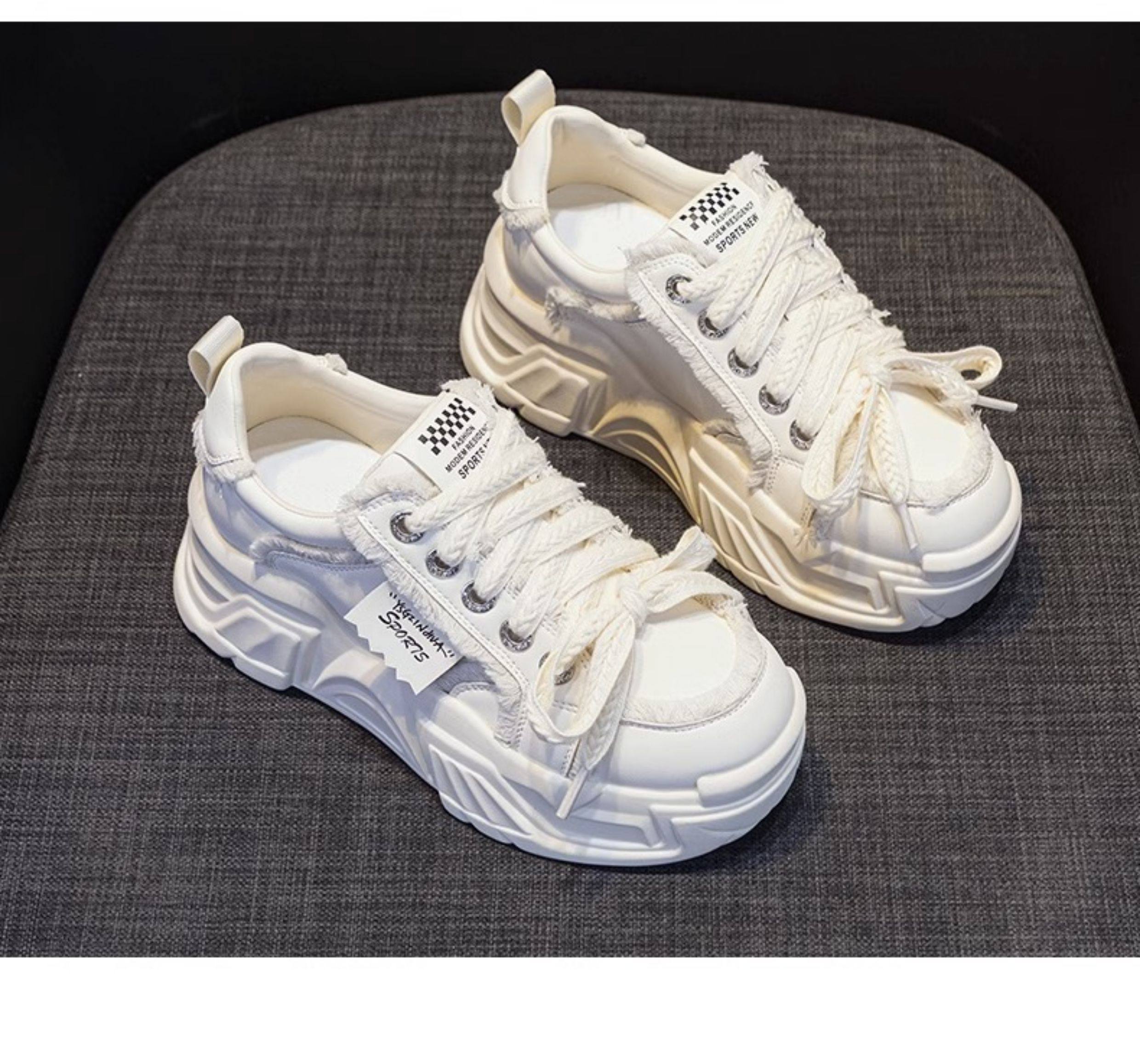 Hong Kong Genuine Leather Height-Increasing Dad Shoes for Women 2025 Spring and Autumn New Style Thick-Soled Platform Casual Sports White Shoes