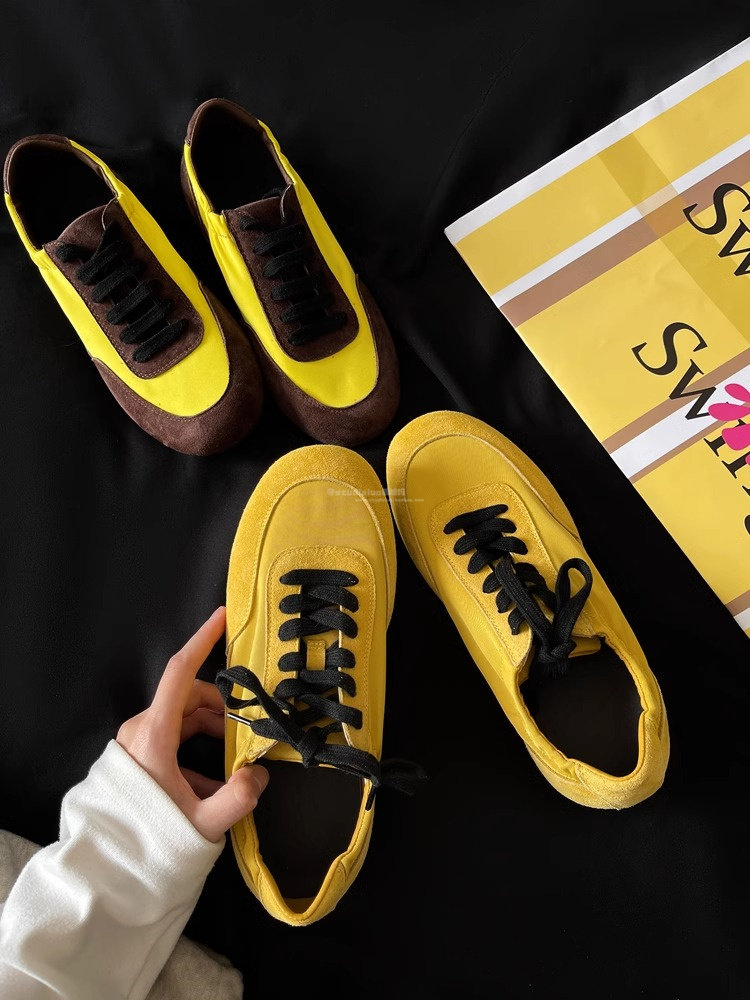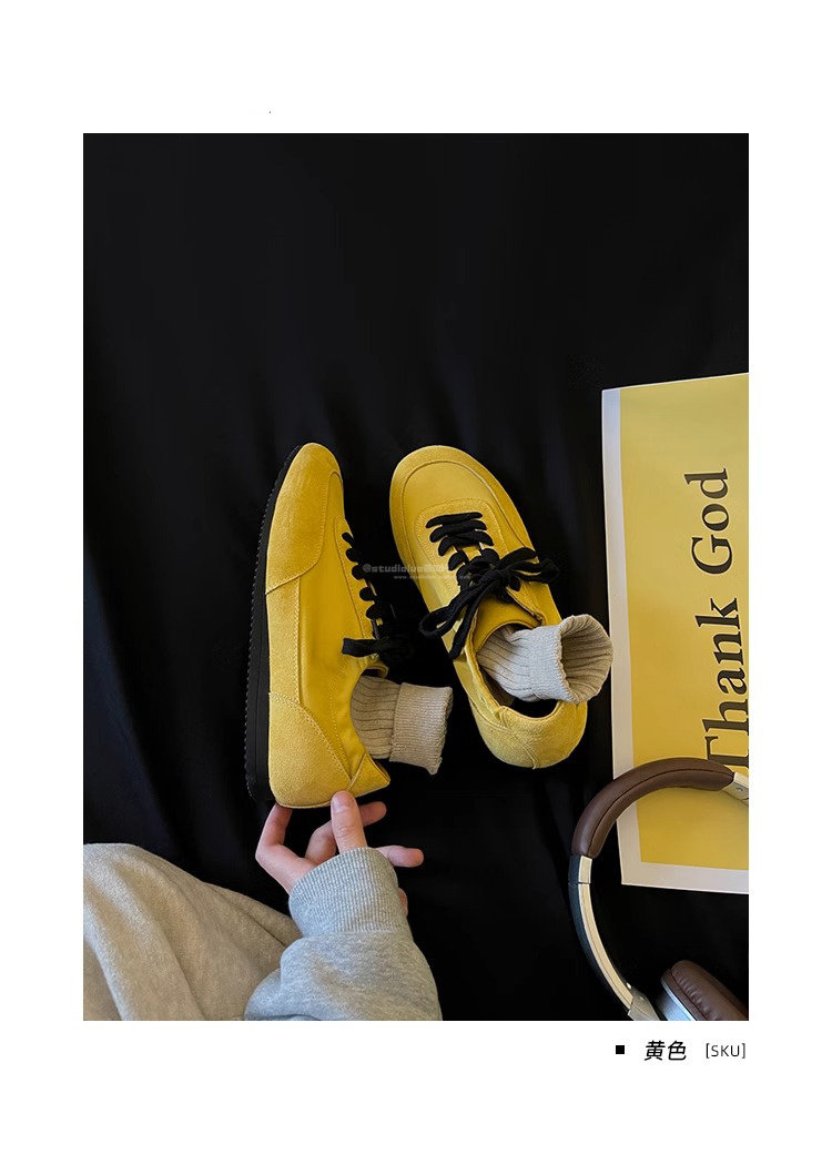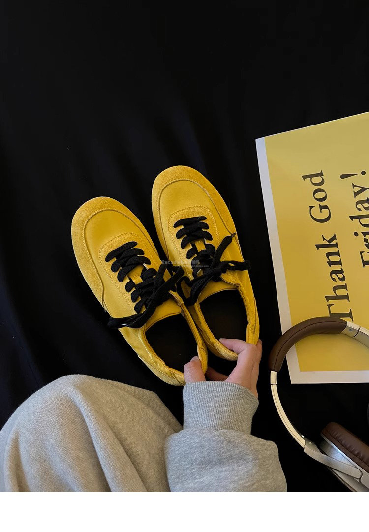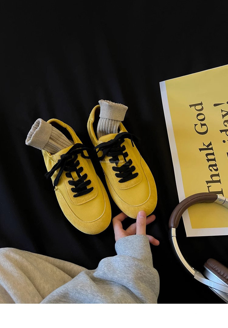 Hong Kong Genuine Leather Yellow Moral Training Shoes for Women 2025 Spring and Autumn New Ultra-Soft Fashionable Versatile Lace-Up Sports Casual Shoes