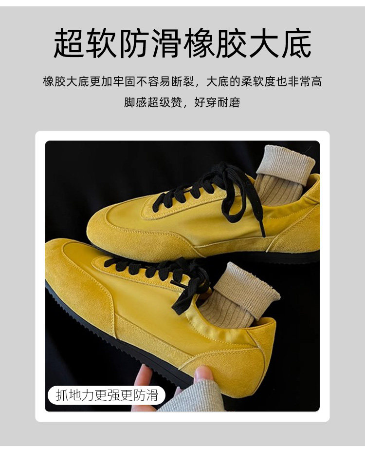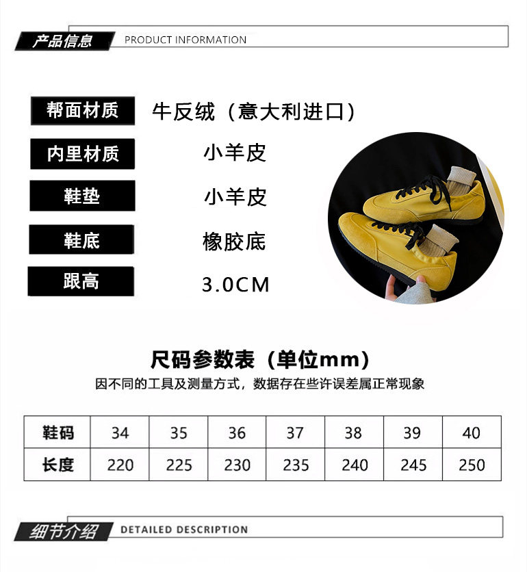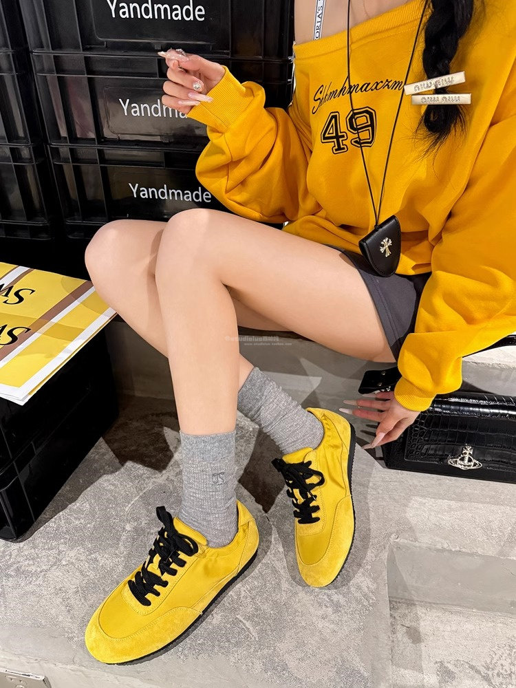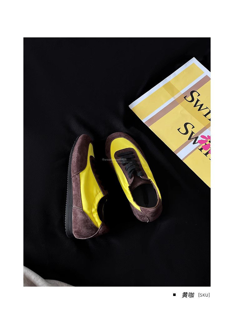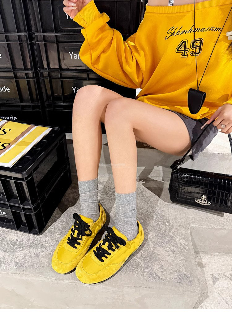Hong Kong Genuine Leather Yellow Moral Training Shoes for Women 2025 Spring and Autumn New Ultra-Soft Fashionable Versatile Lace-Up Sports Casual Shoes