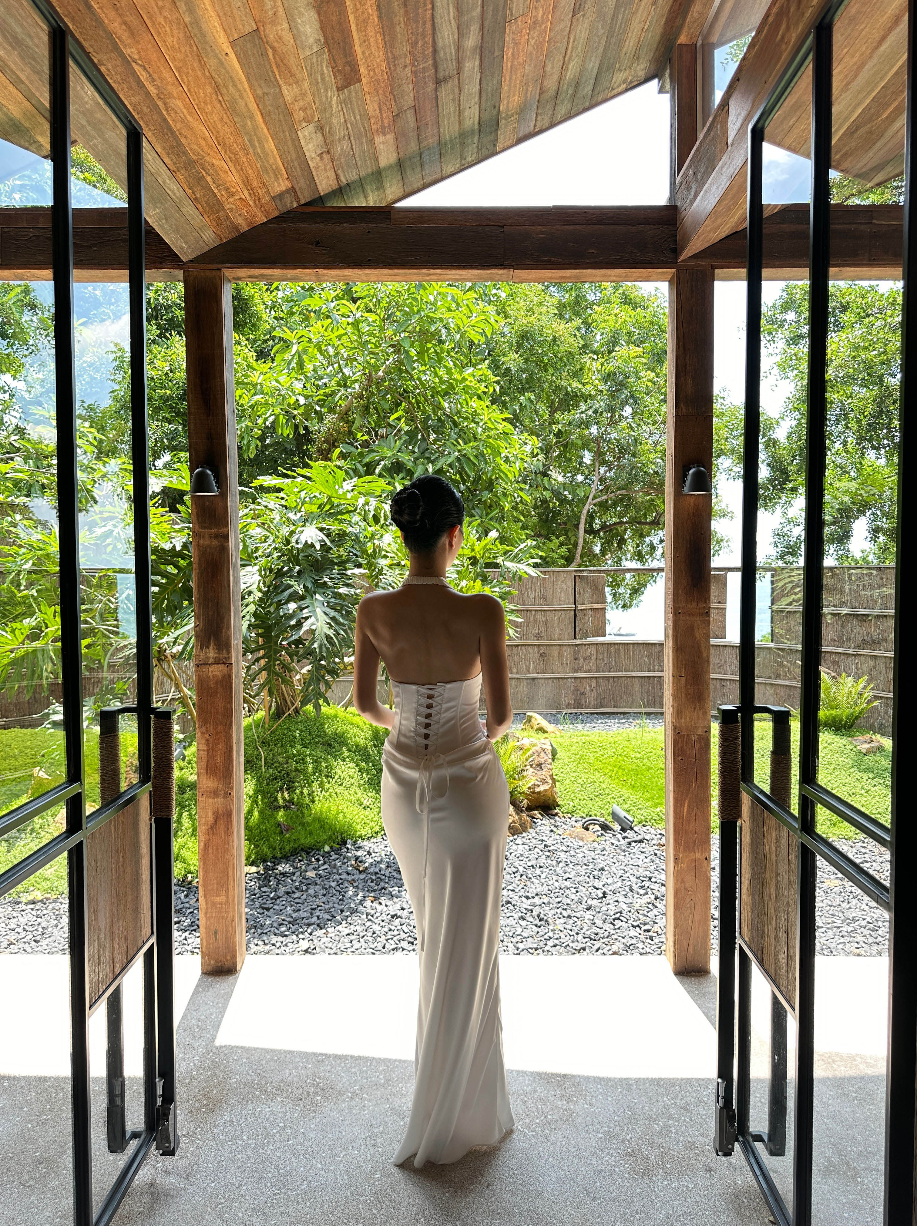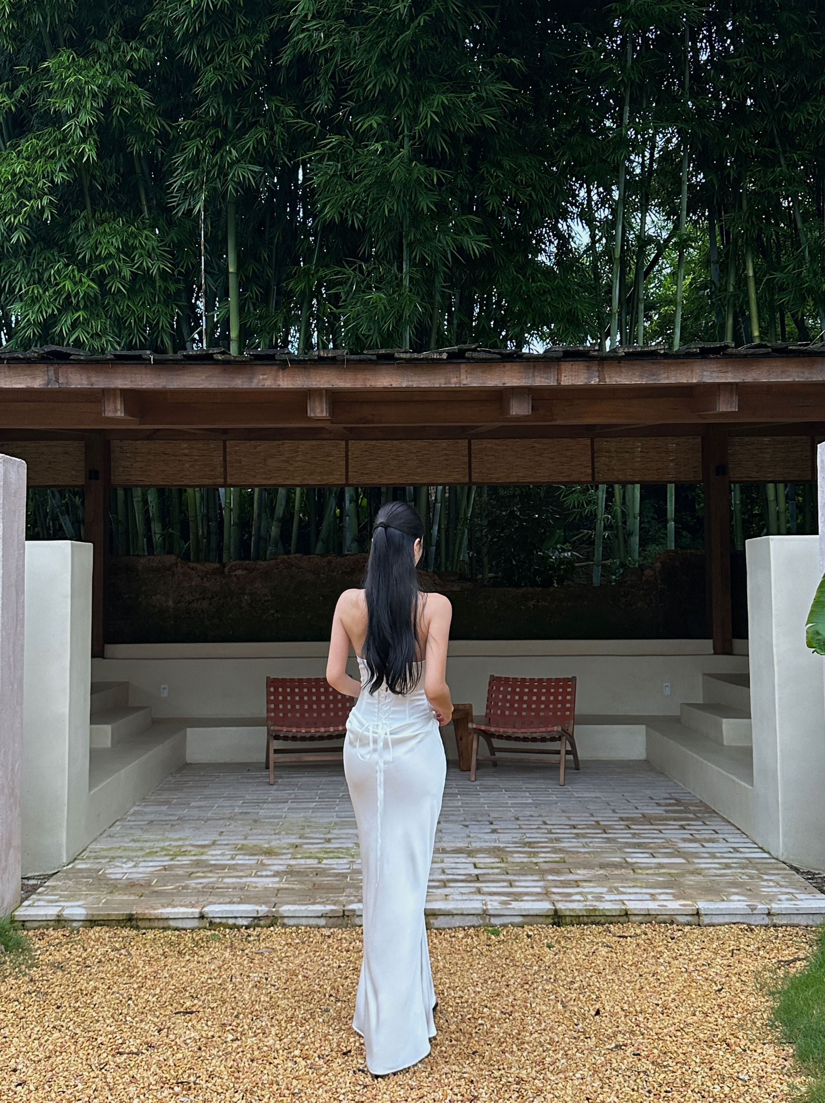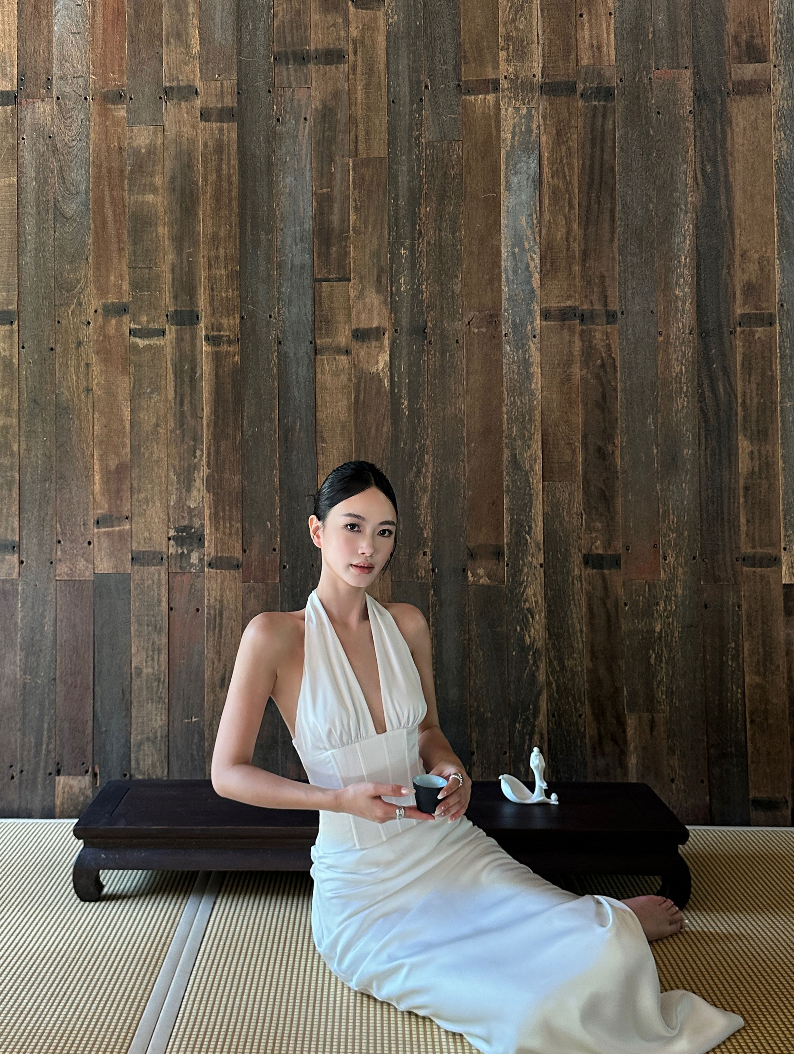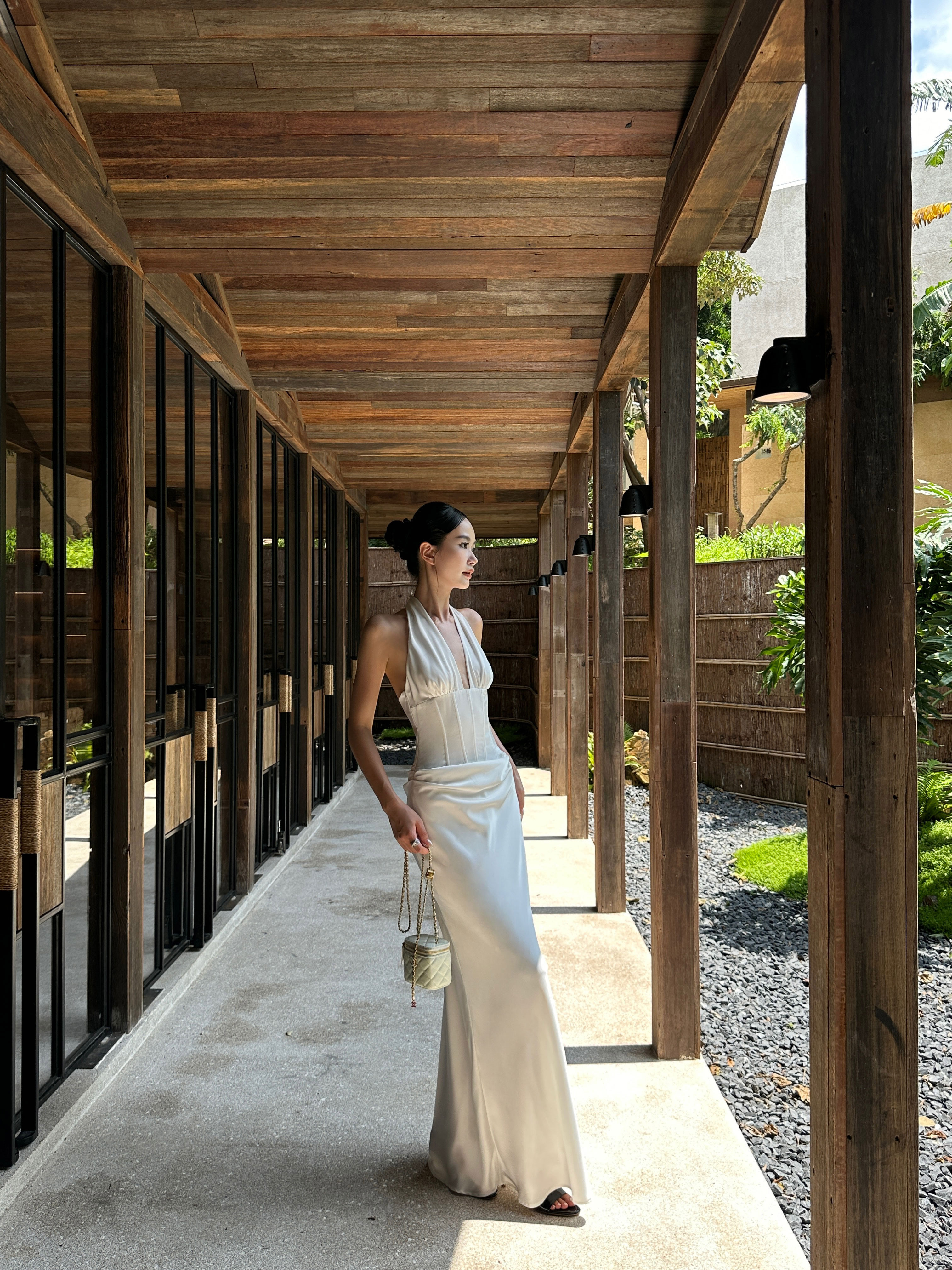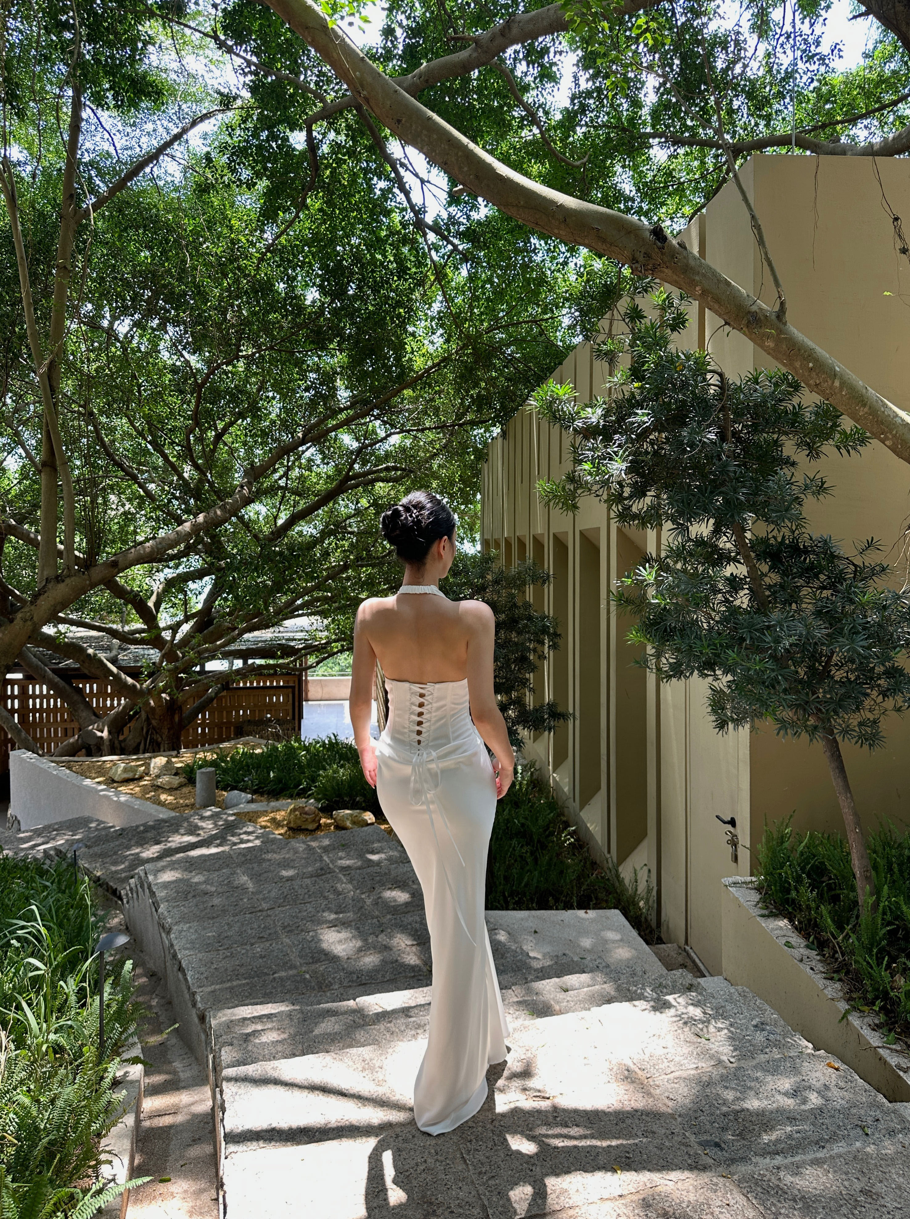 Venuie French-Style White Halter Neck Dress with V-Neck, Fishbone Satin, Unique Design, High-End Feel, Backless Long Dress