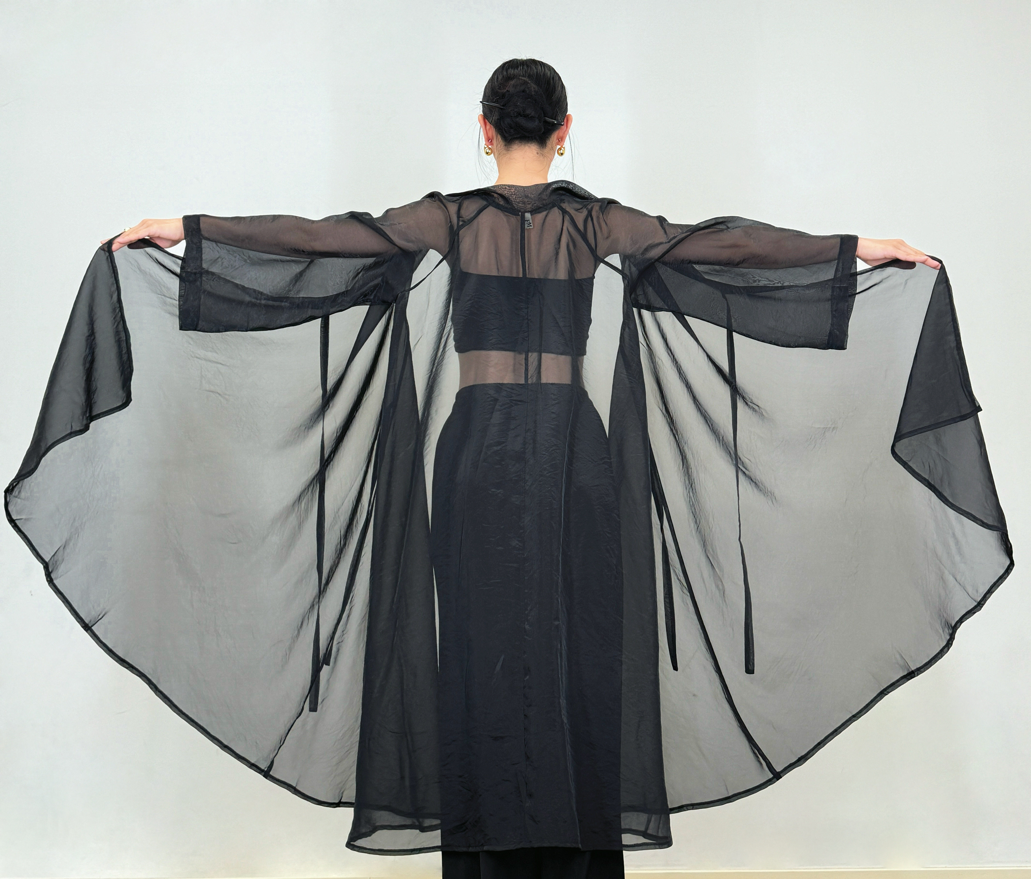 White Wide-Sleeved Raglan Sleeves, Large Hem Cardigan, Classical Dance Gauze Dress