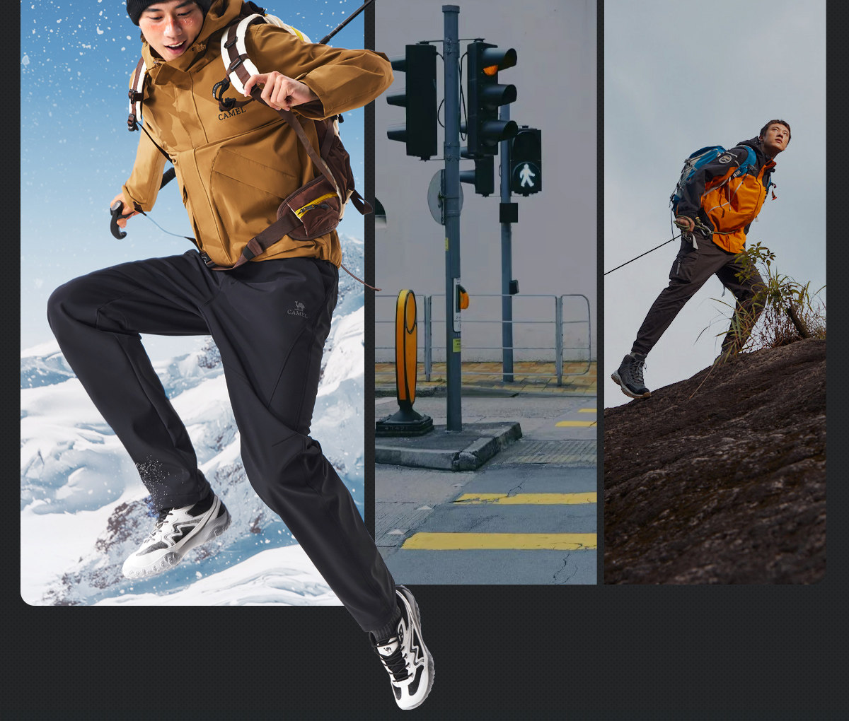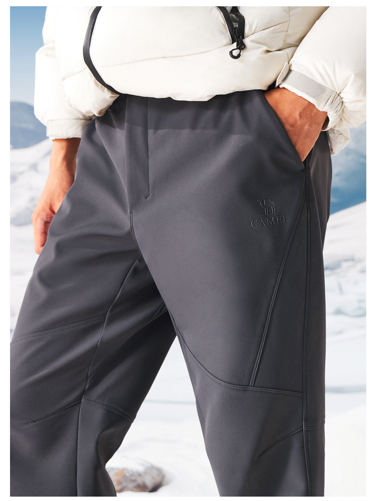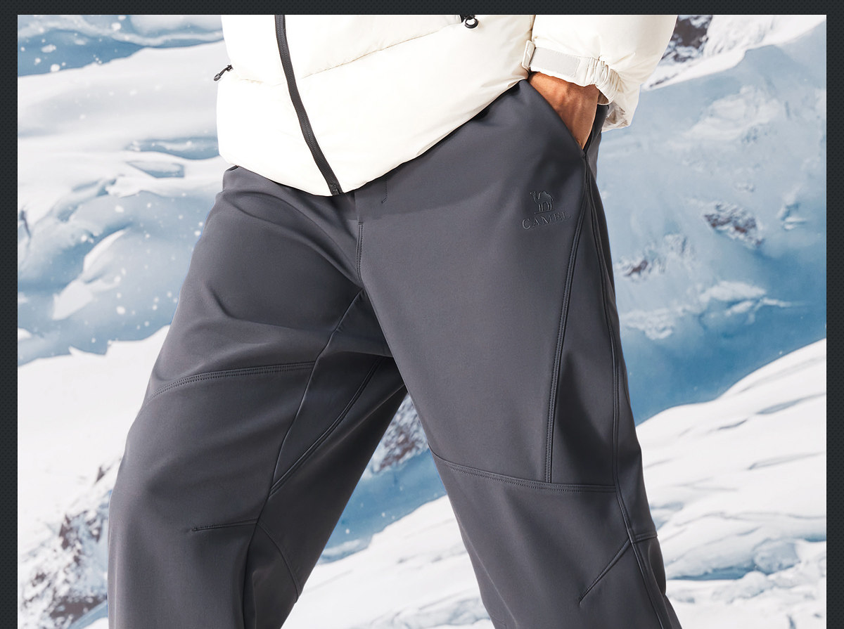 Camel Men's Pants Winter 2025 Casual Pants Men's Fleece-Lined Thickened Warm Outdoor Hiking Softshell Long Pants