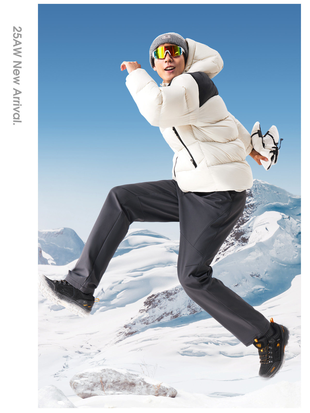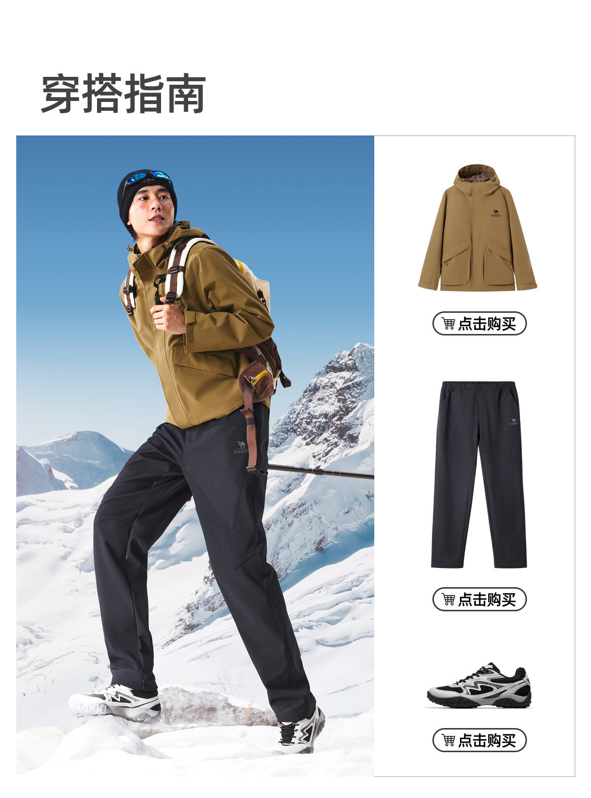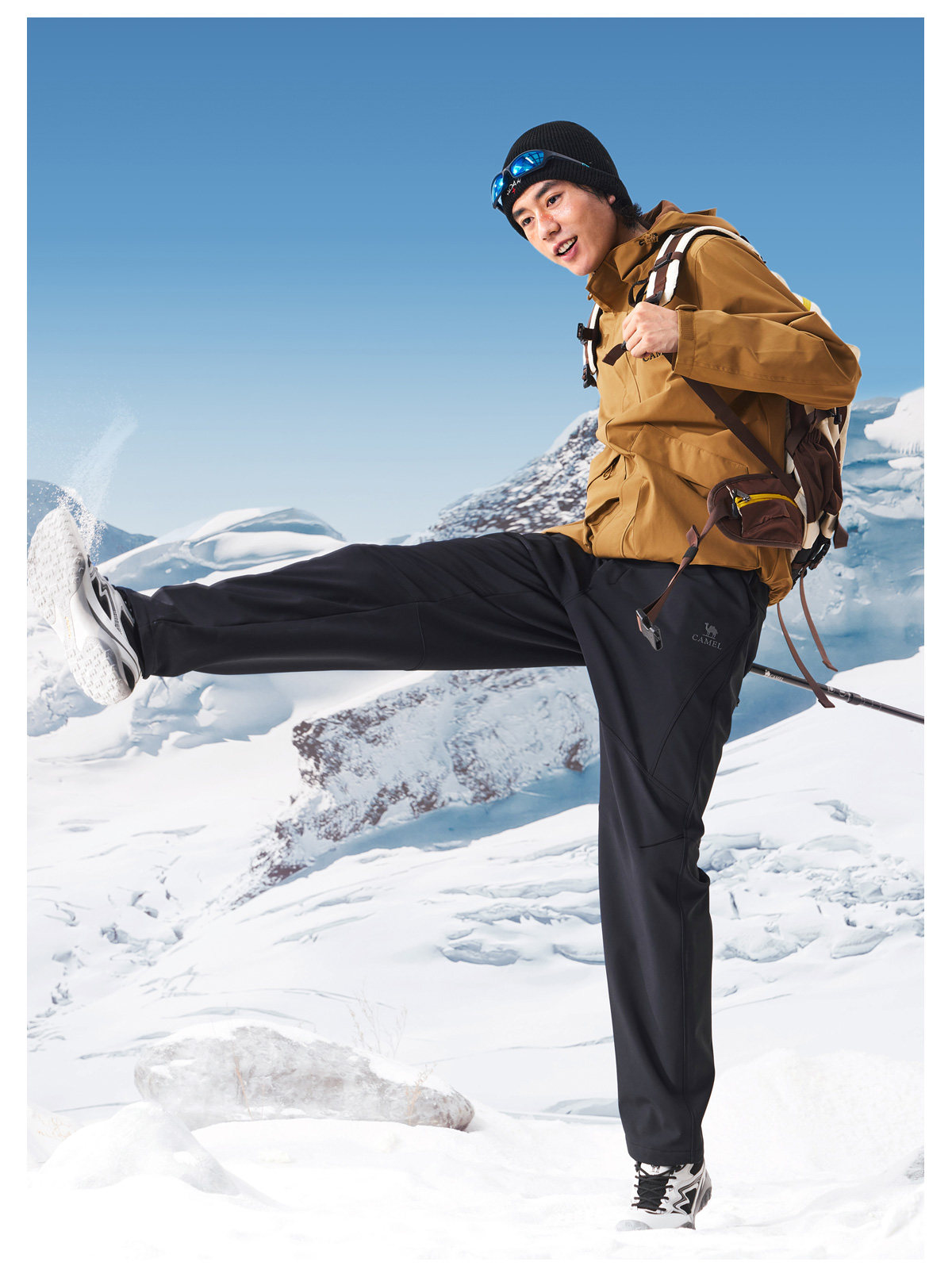 Camel Men's Pants Winter 2025 Casual Pants Men's Fleece-Lined Thickened Warm Outdoor Hiking Softshell Long Pants