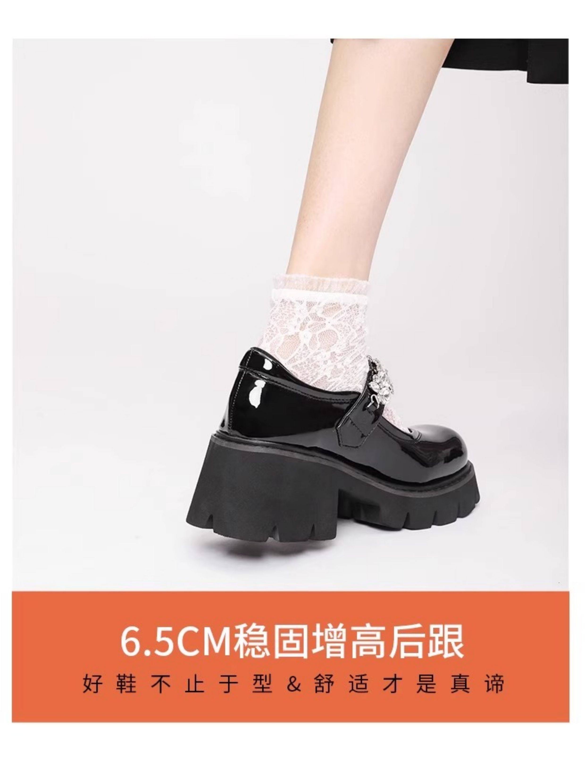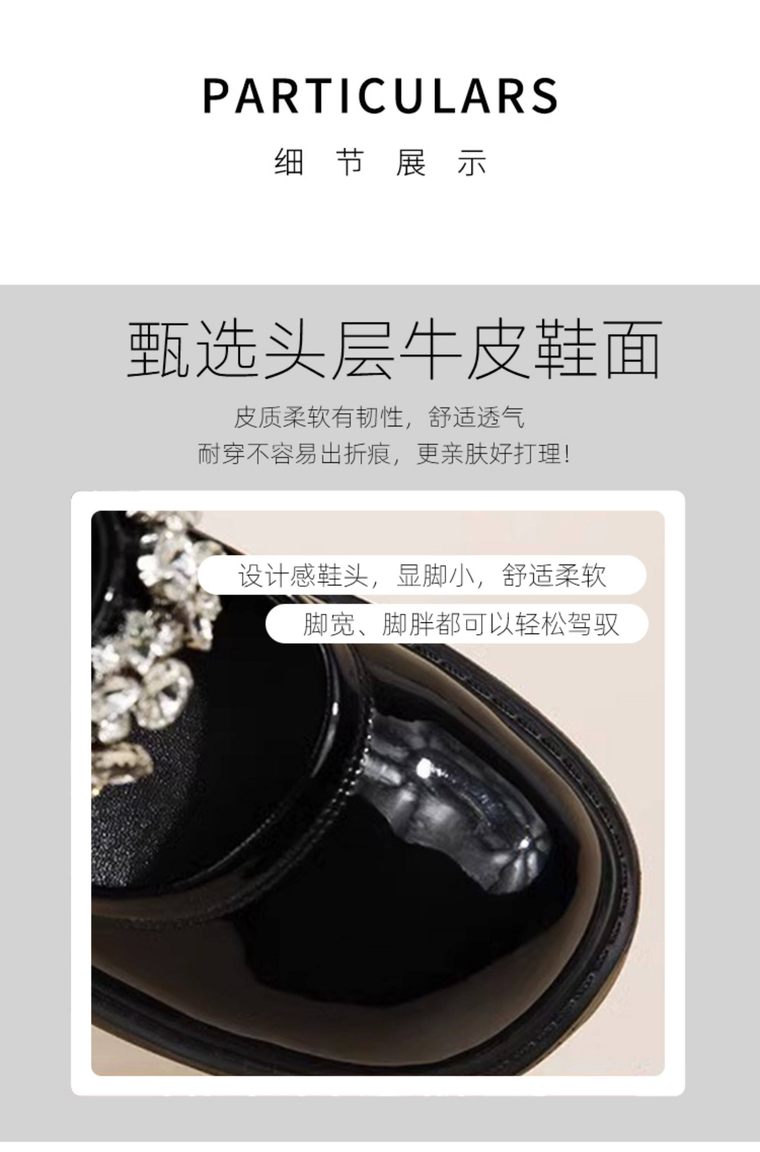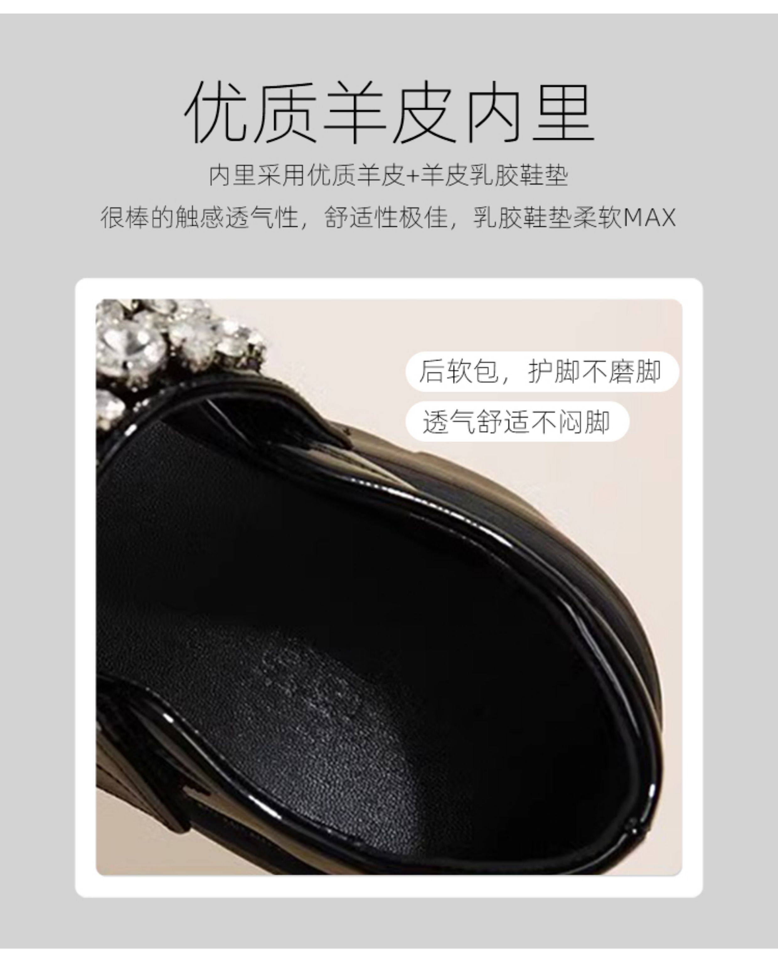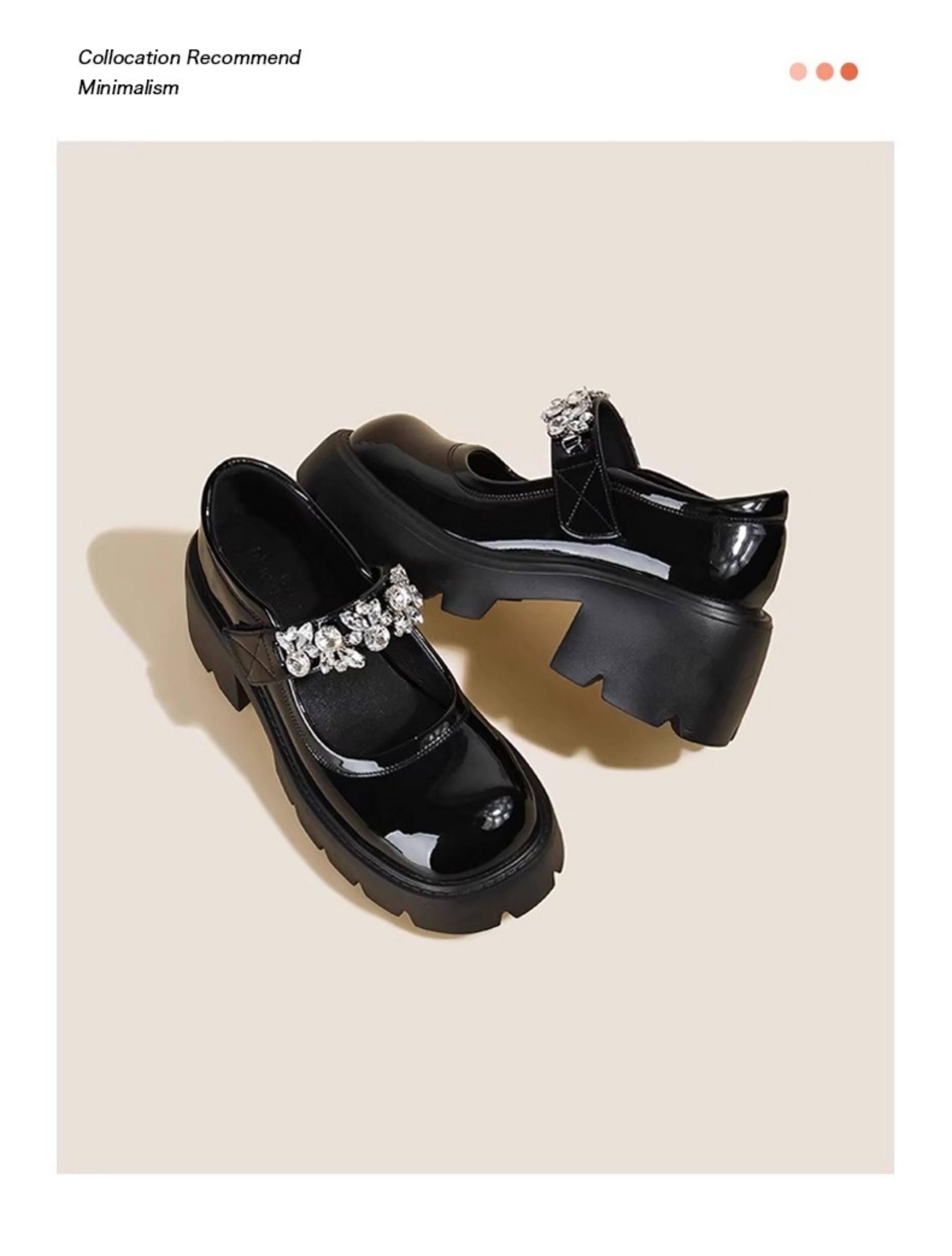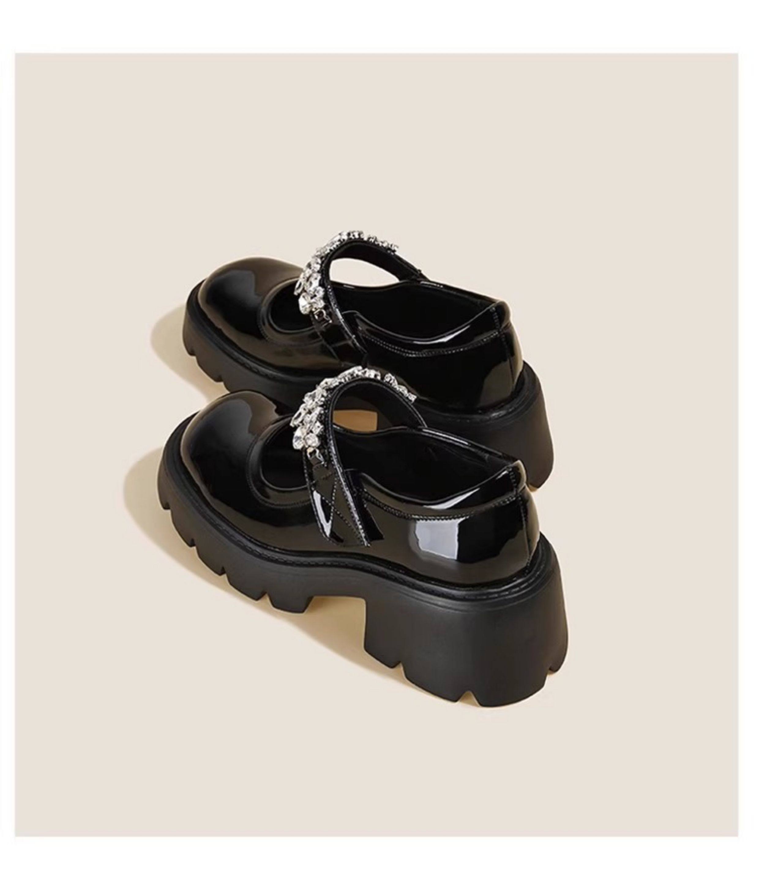 Hong Kong Thick-Soled Mary Jane Women's Shoes 2025 Spring and Autumn New Style Rhinestone Versatile Height-Increasing Small Leather Shoes Chunky Heel Single Shoes Genuine Leather