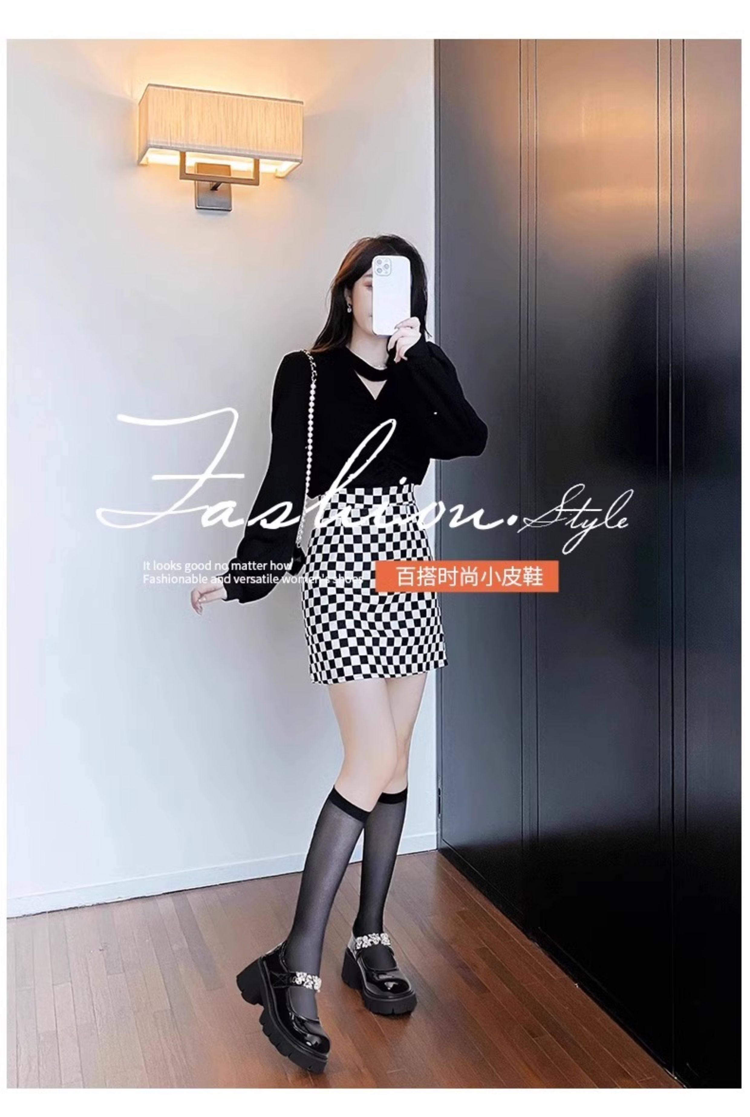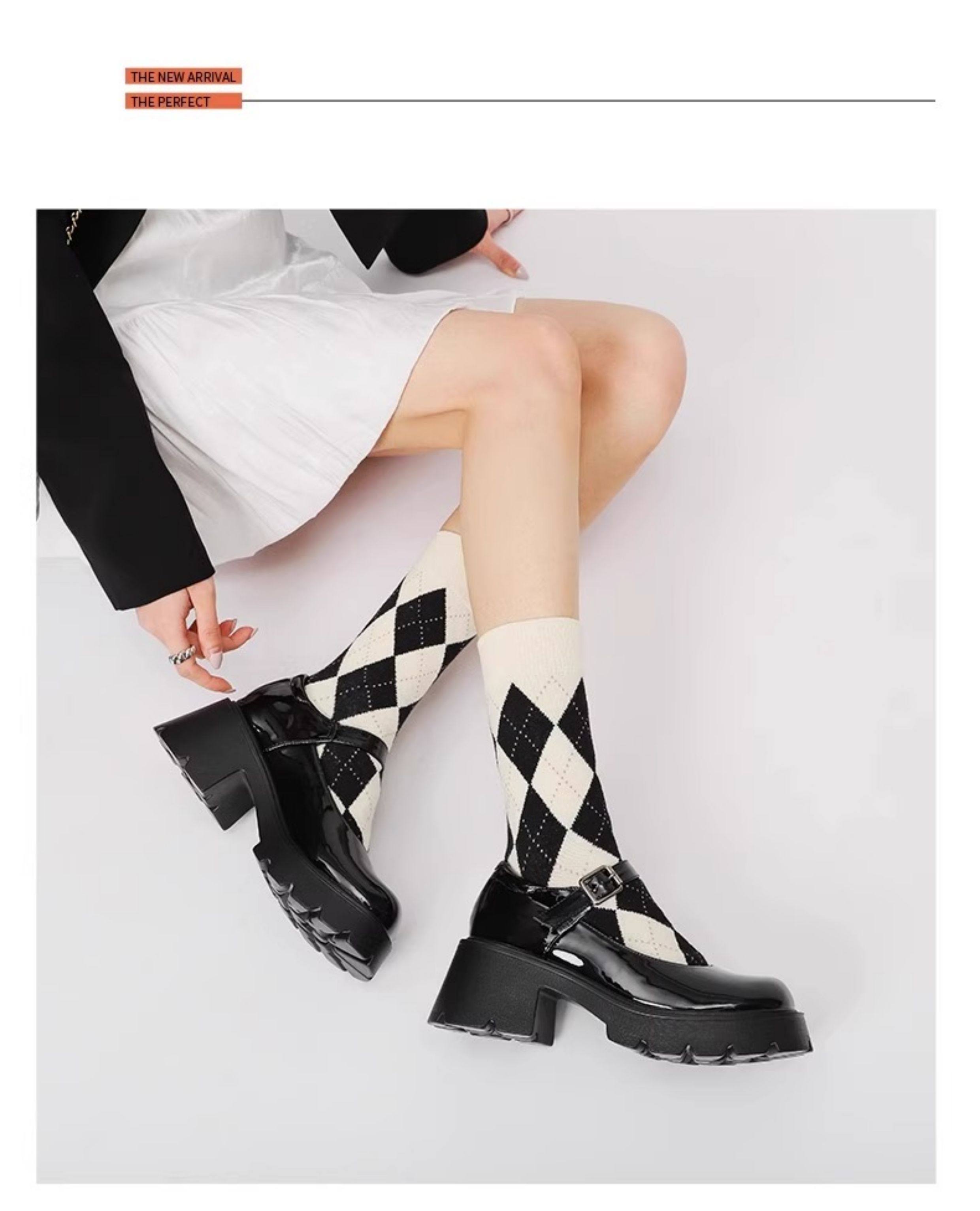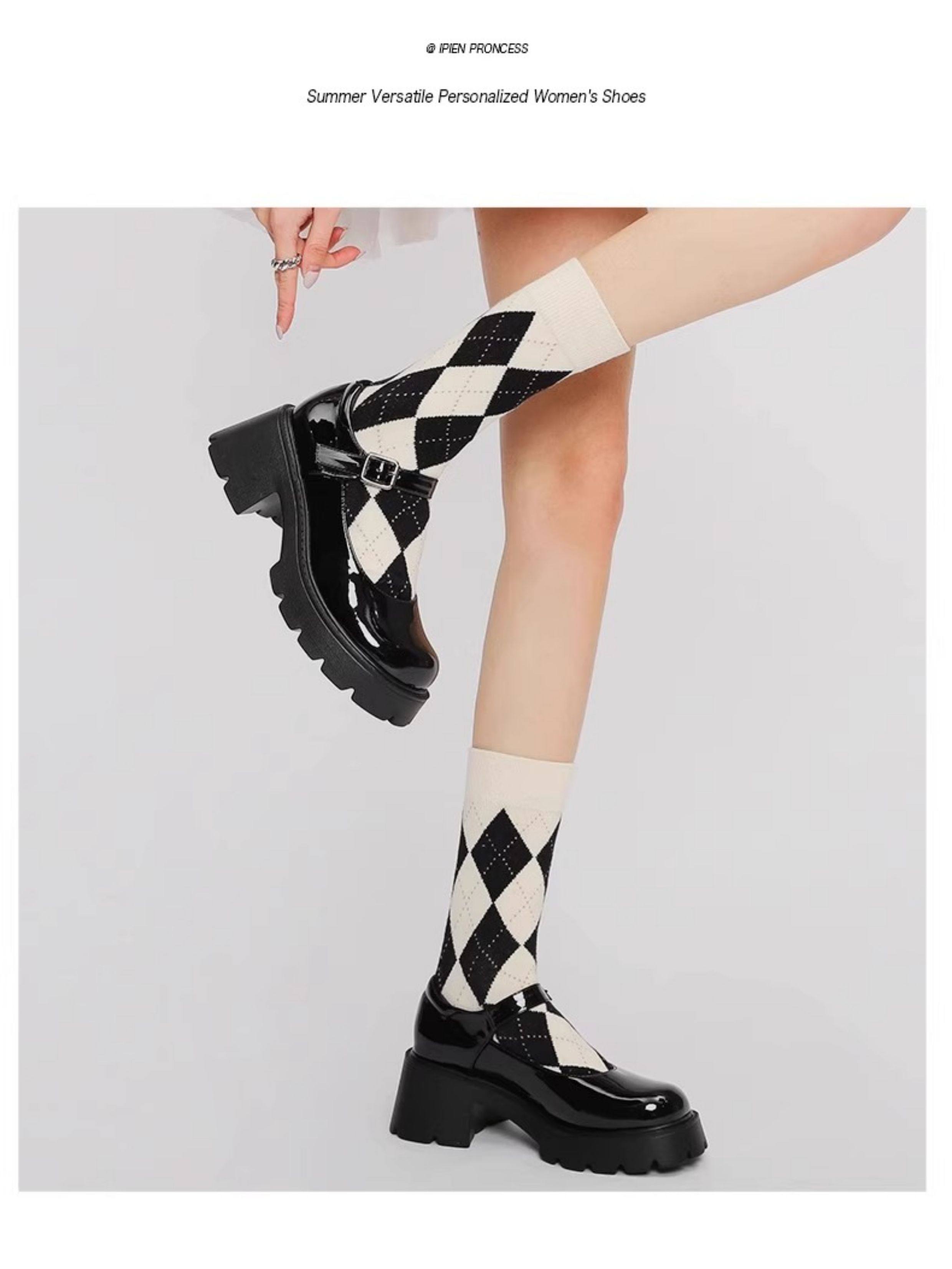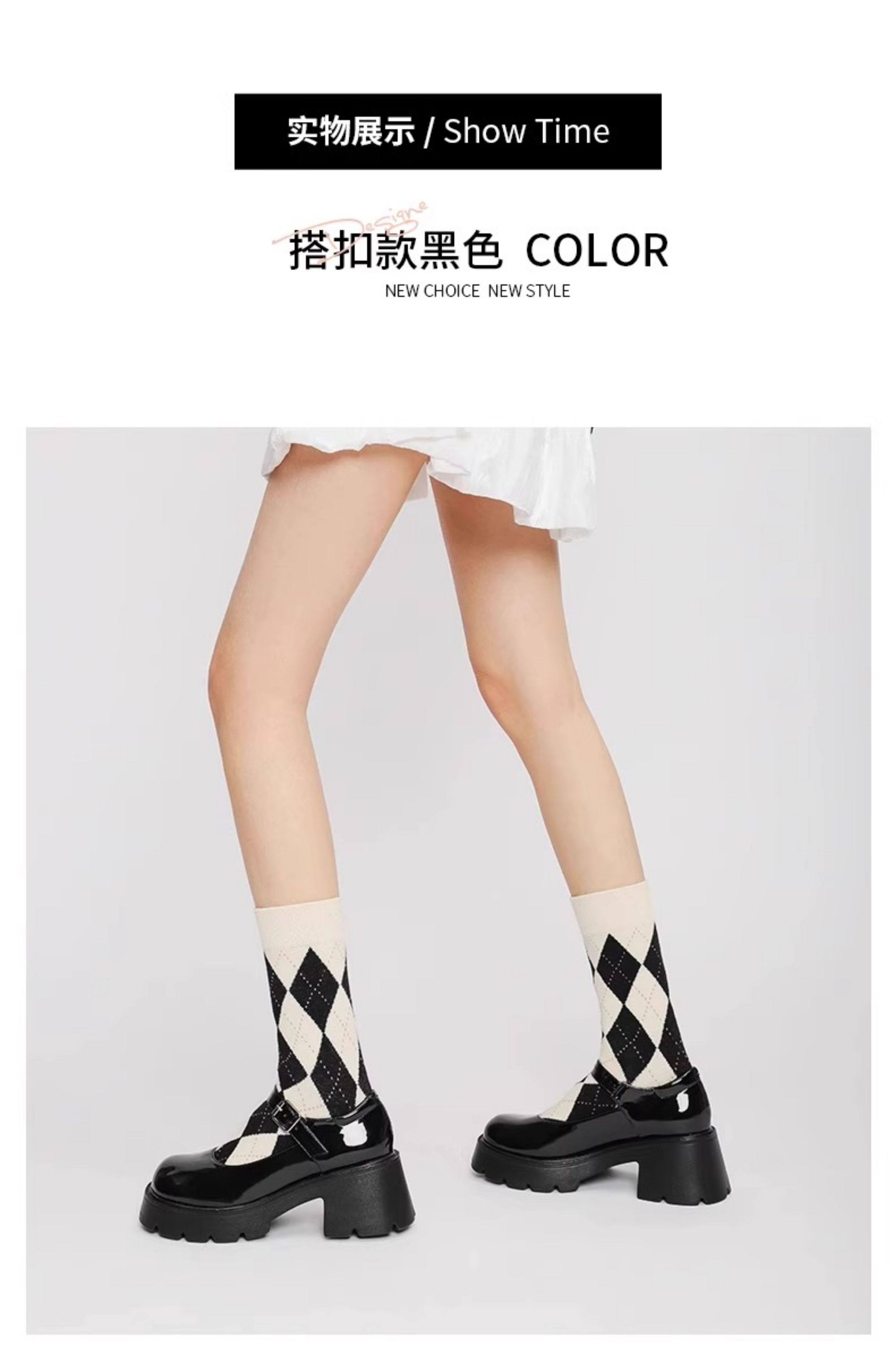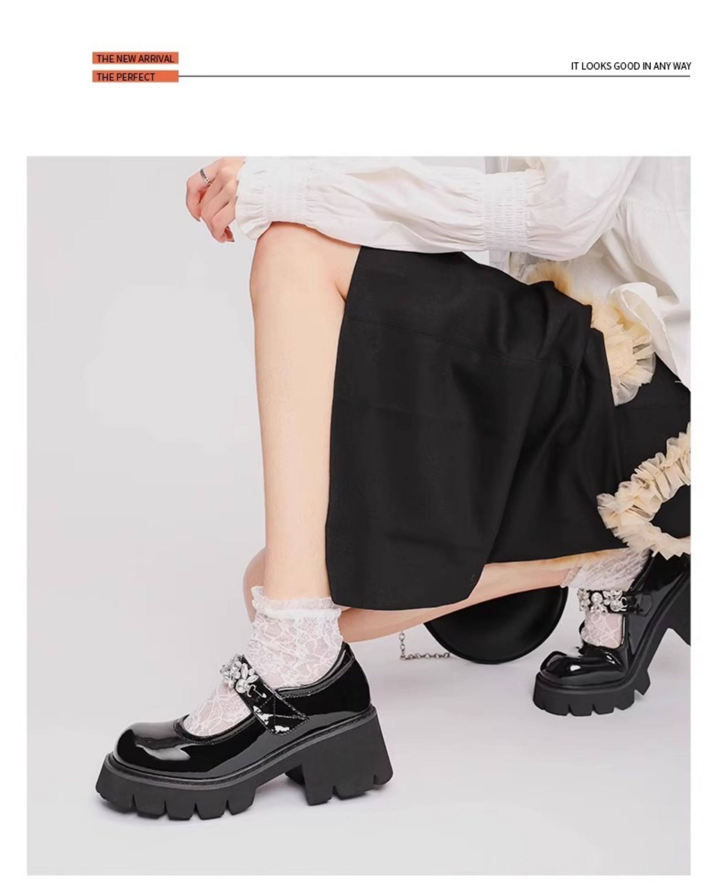 Hong Kong Thick-Soled Mary Jane Women's Shoes 2025 Spring and Autumn New Style Rhinestone Versatile Height-Increasing Small Leather Shoes Chunky Heel Single Shoes Genuine Leather