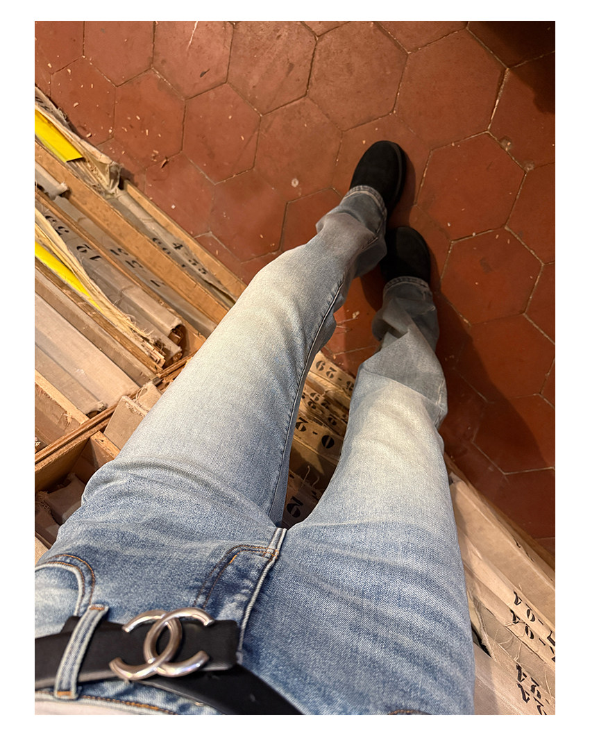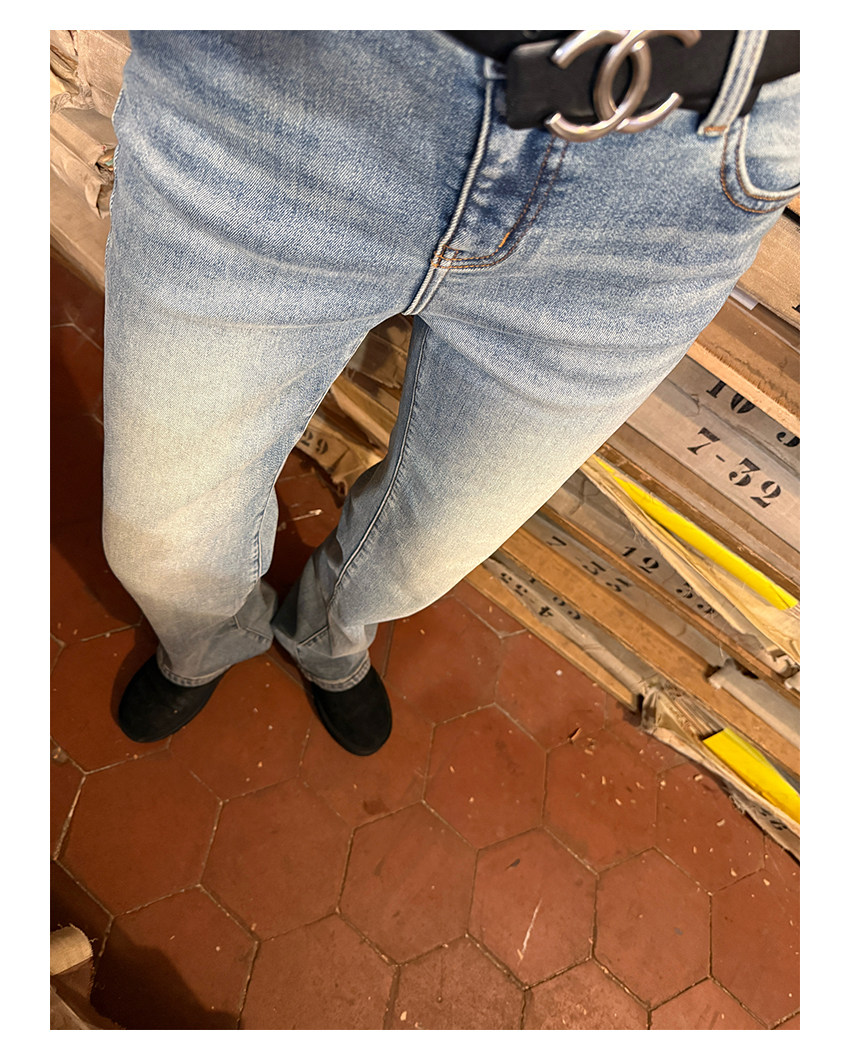 保持窄管裤腿廓形但不贴腿