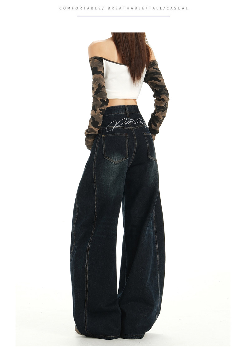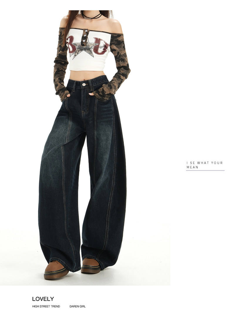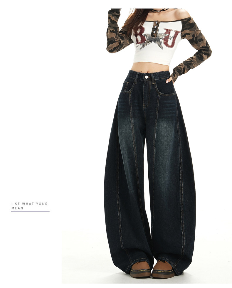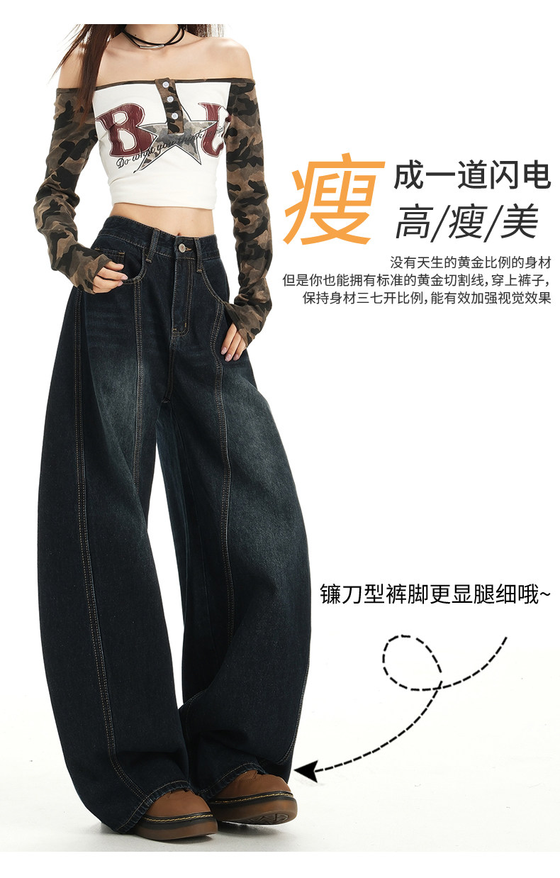American Retro High Street Wide-Leg Jeans for Women 2025 New Design Petite Loose Scimitar Hem Floor-Length Pants