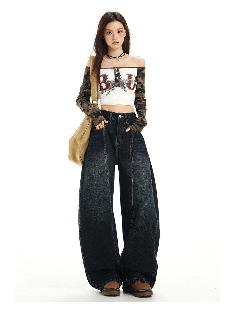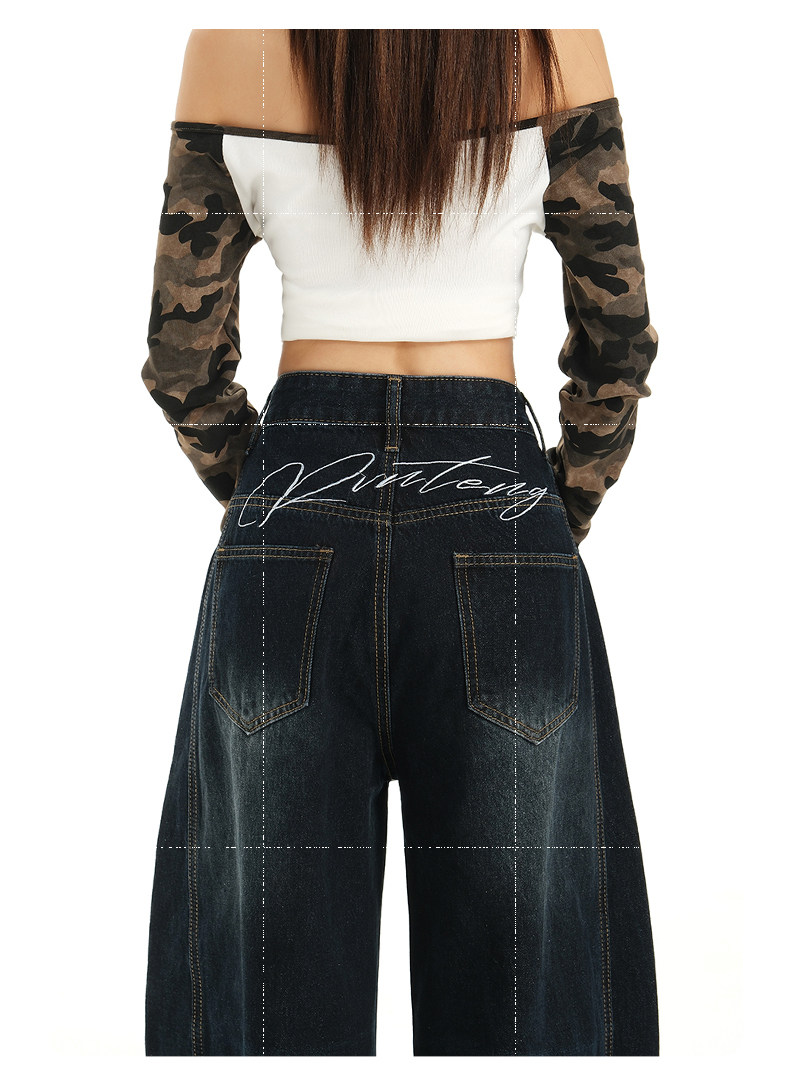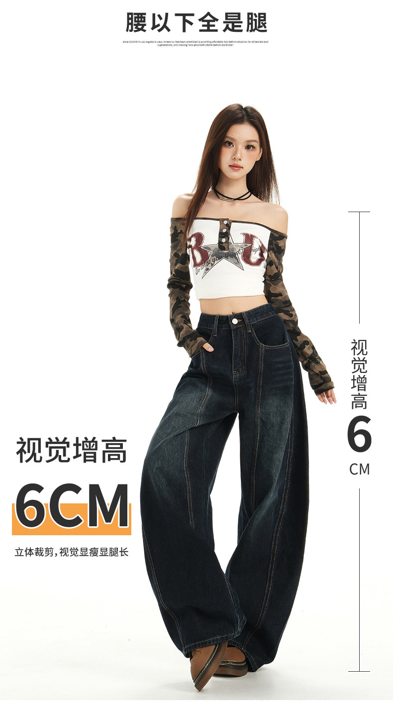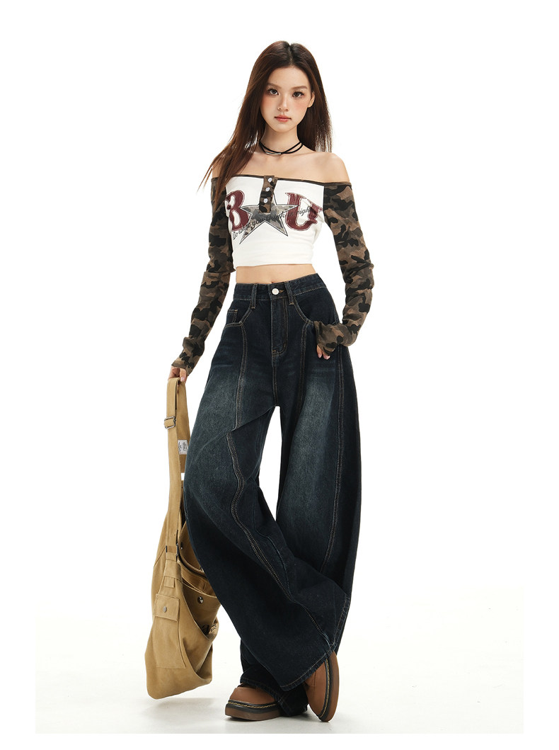 American Retro High Street Wide-Leg Jeans for Women 2025 New Design Petite Loose Scimitar Hem Floor-Length Pants